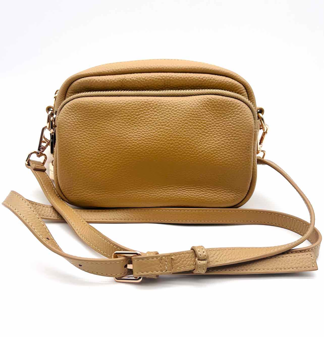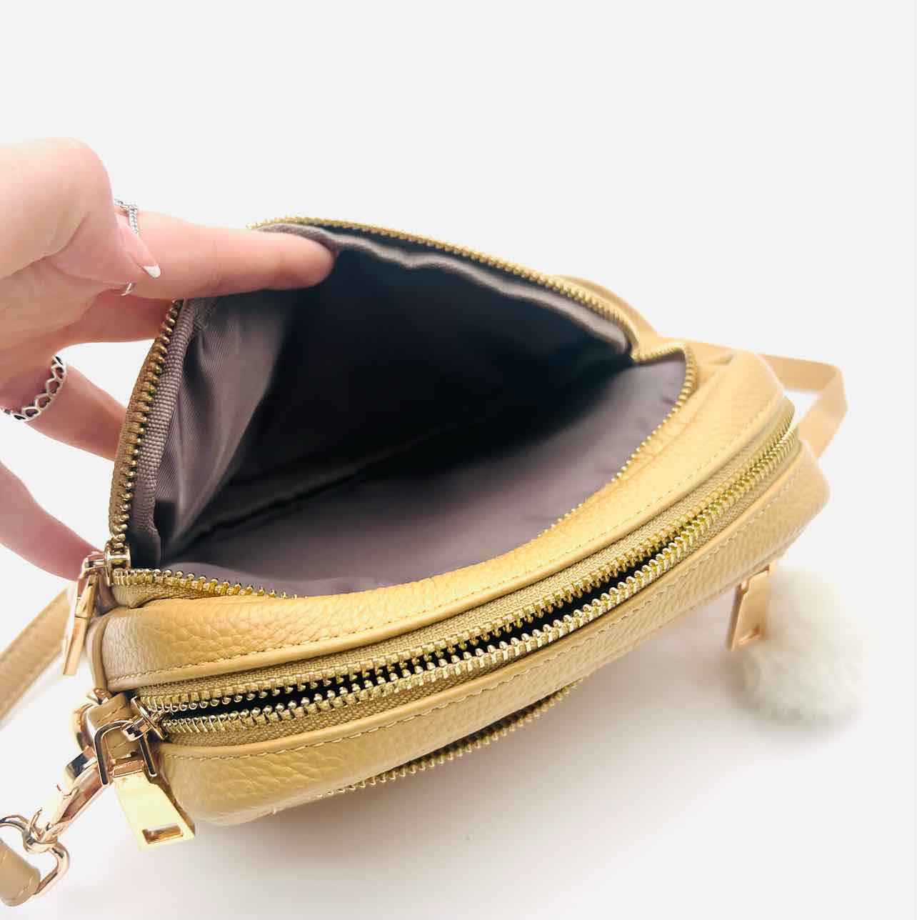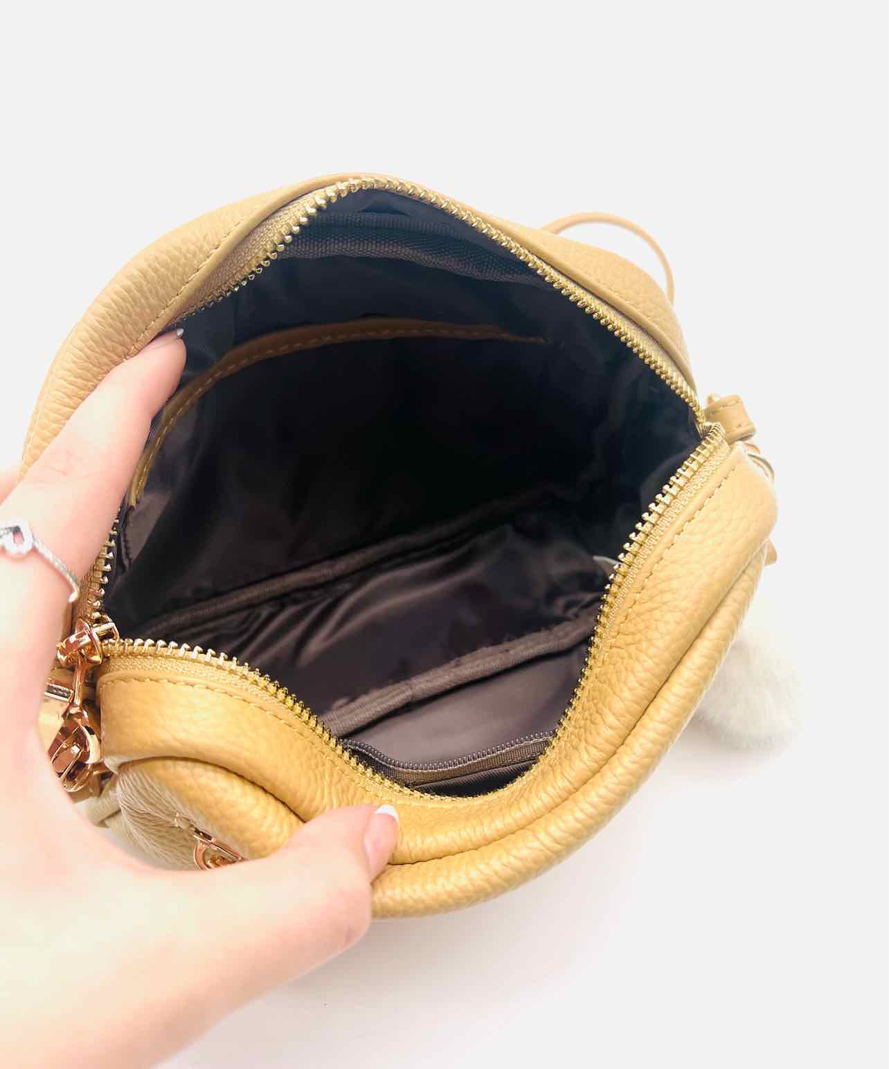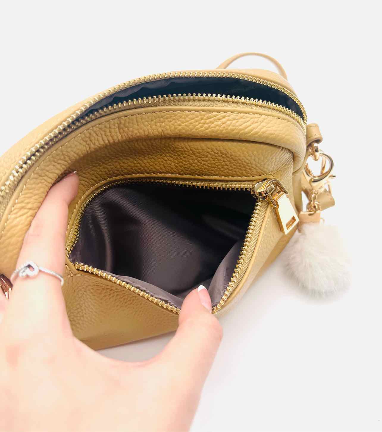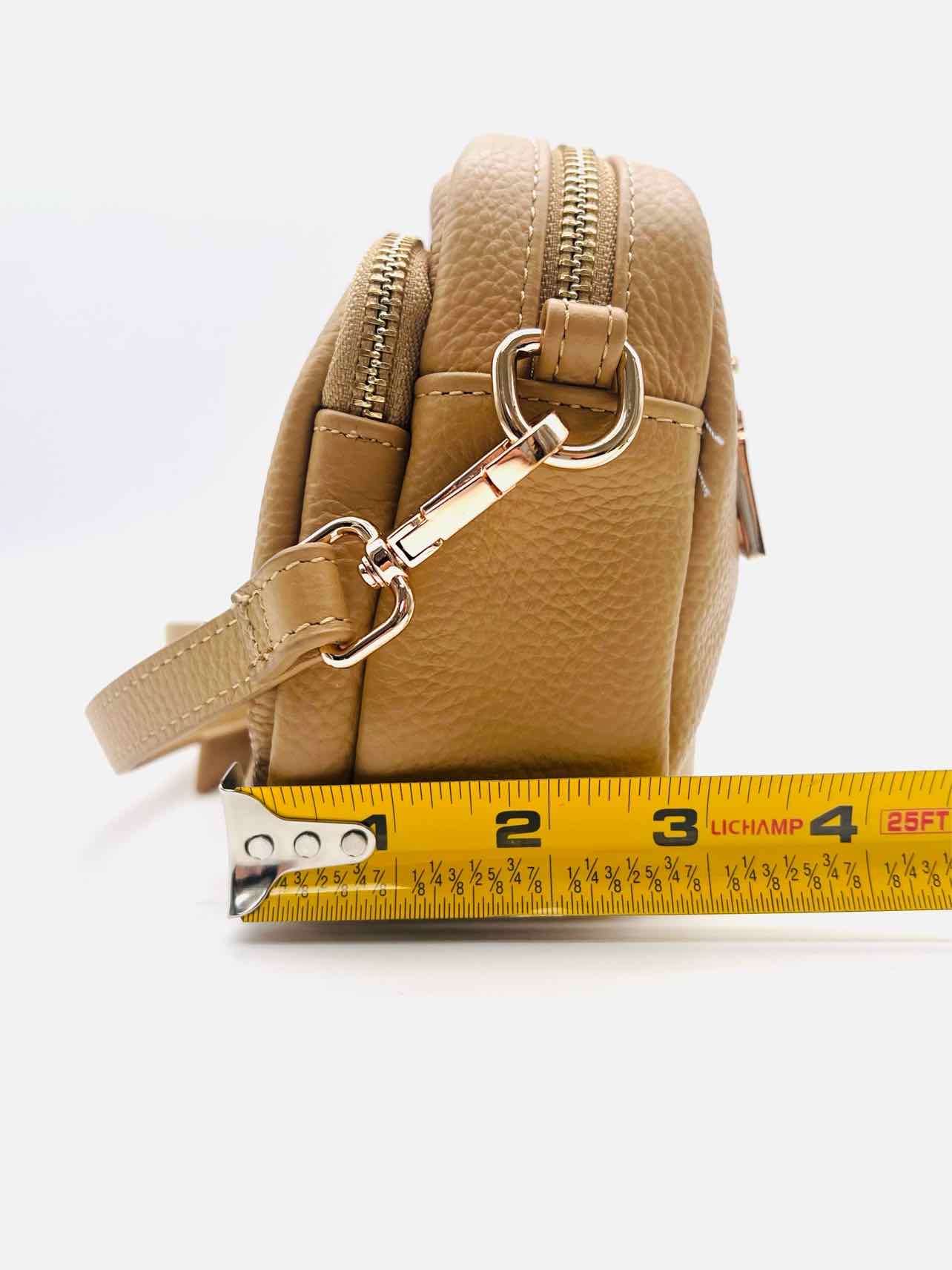 Pom Pom London Tan Pebbled Leather Designer Crossbody Purse