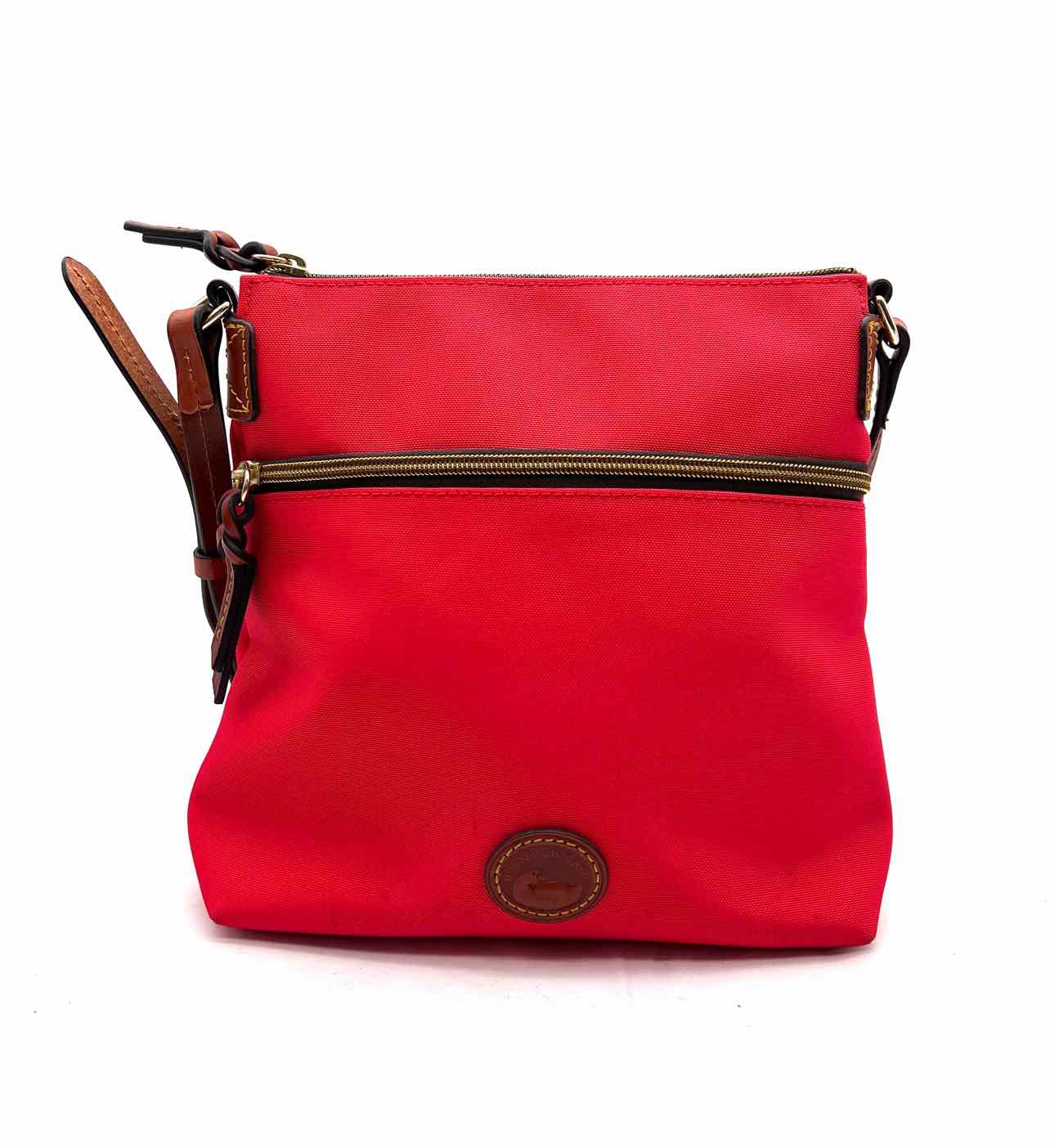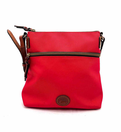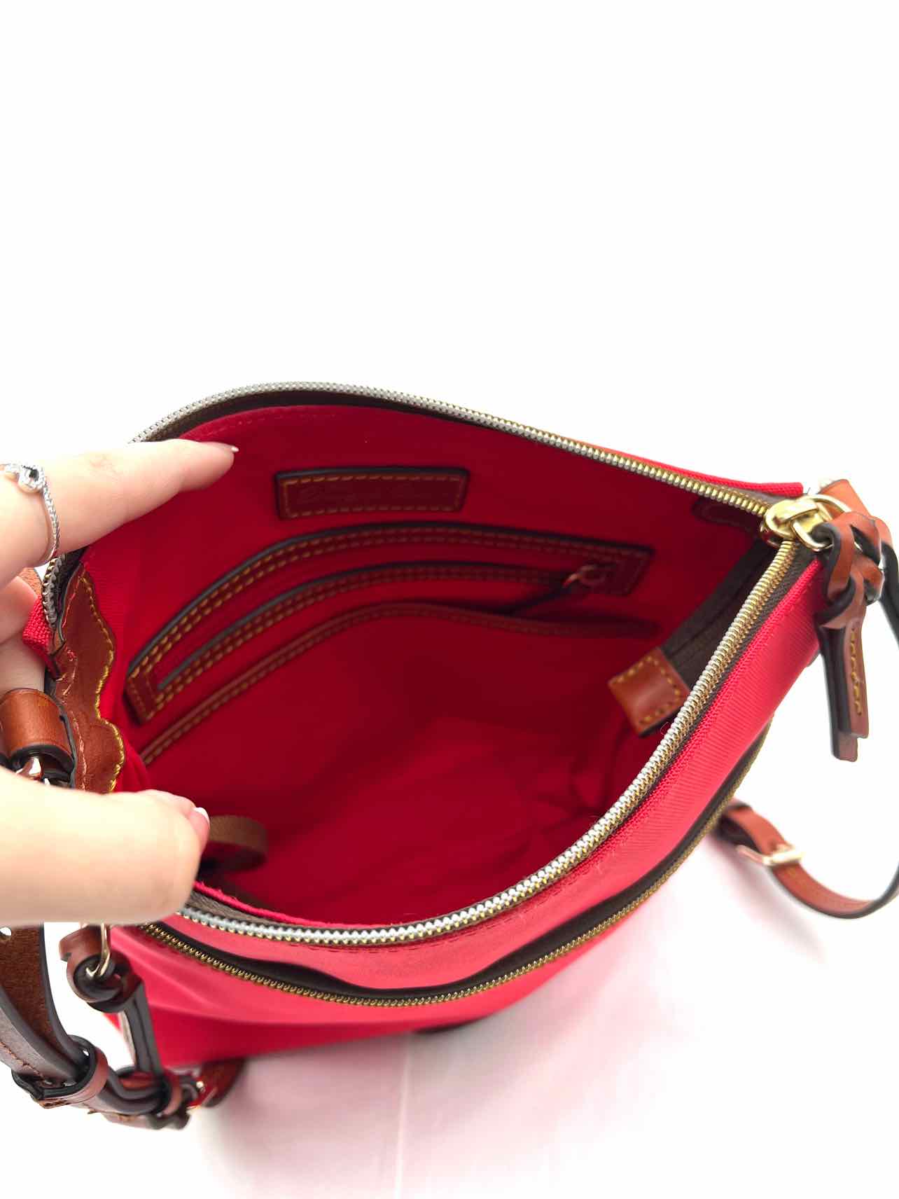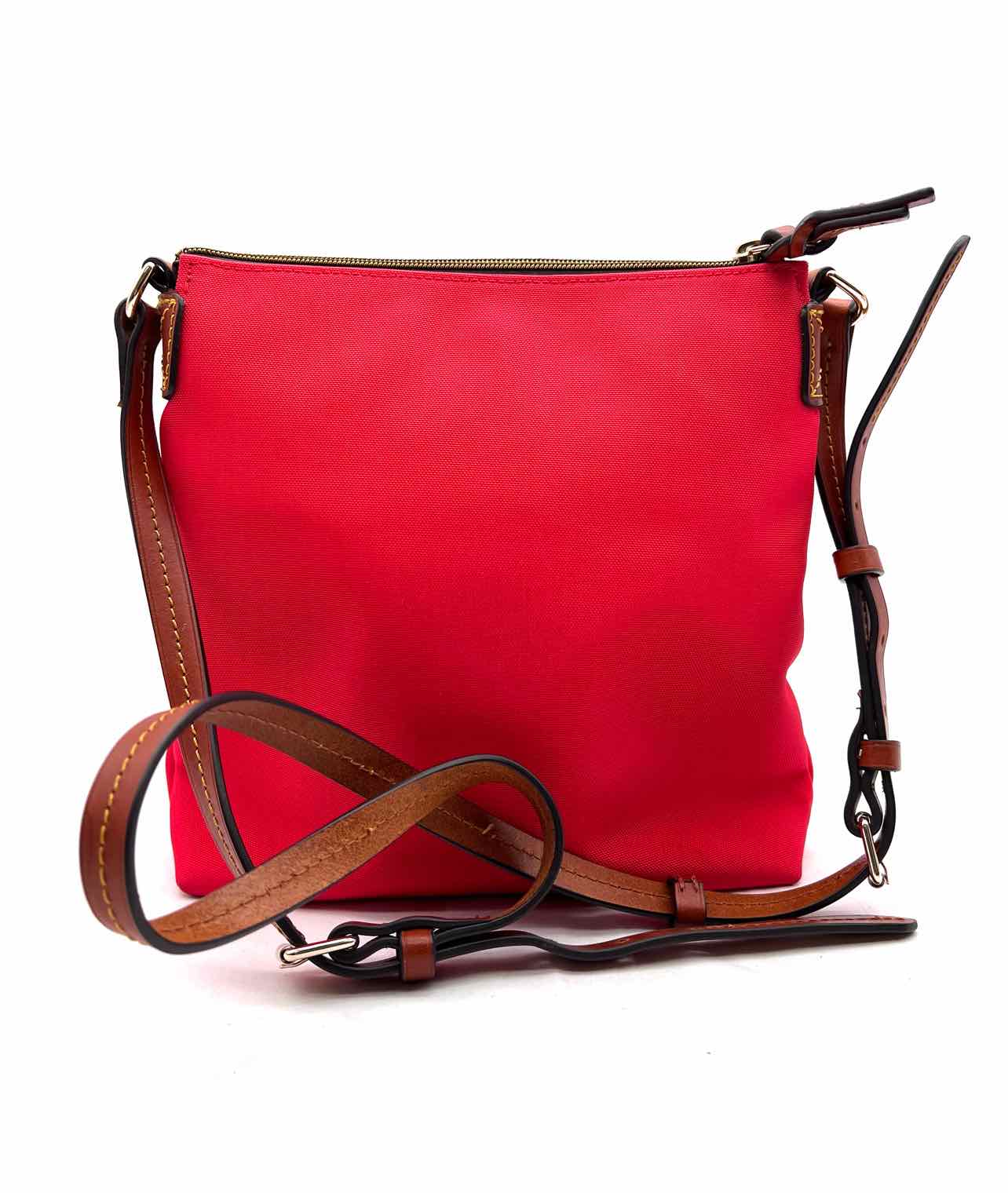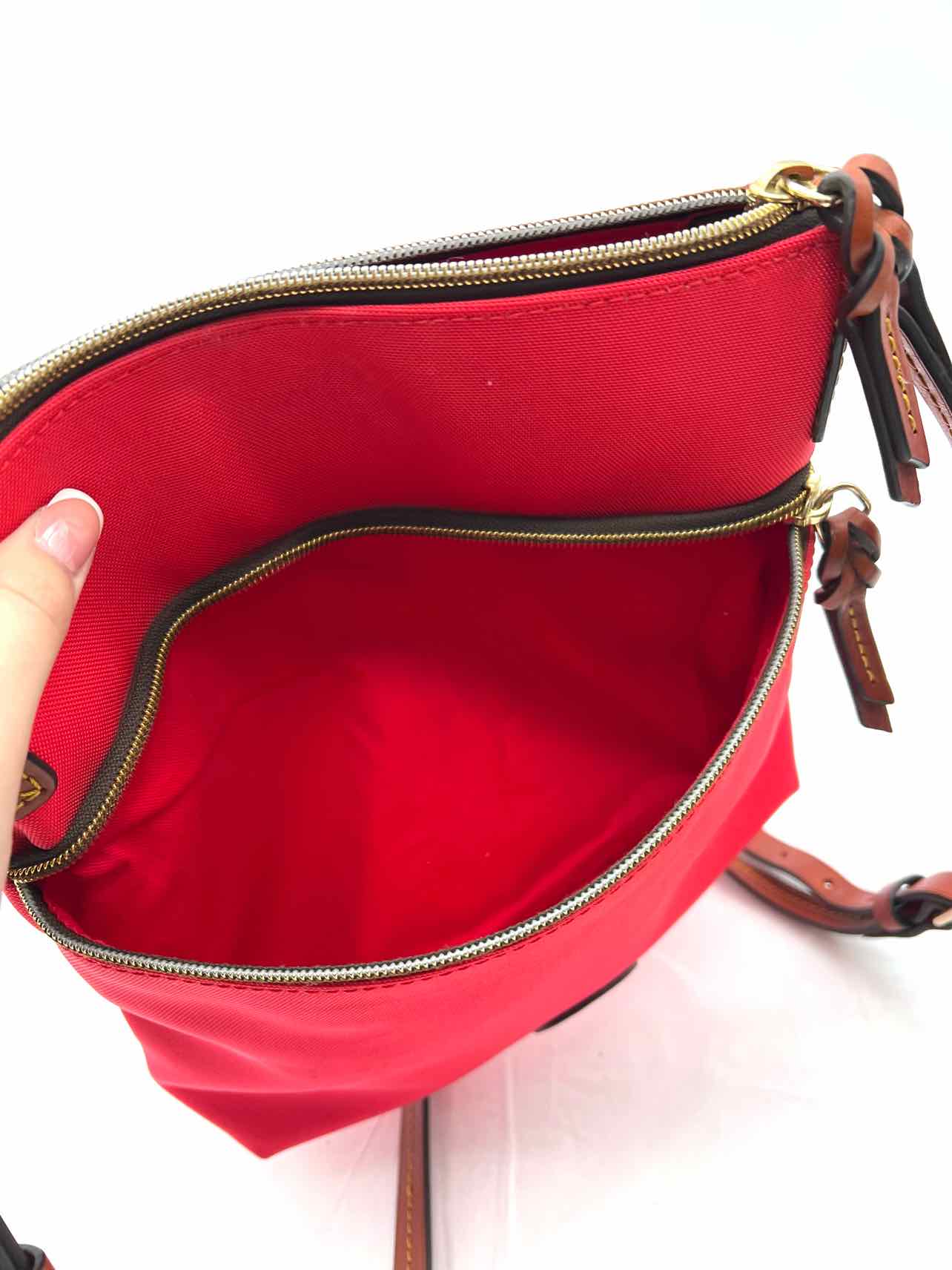 Dooney & Bourke Red/Cognac Nylon Leather Trim Designer Crossbody Purse