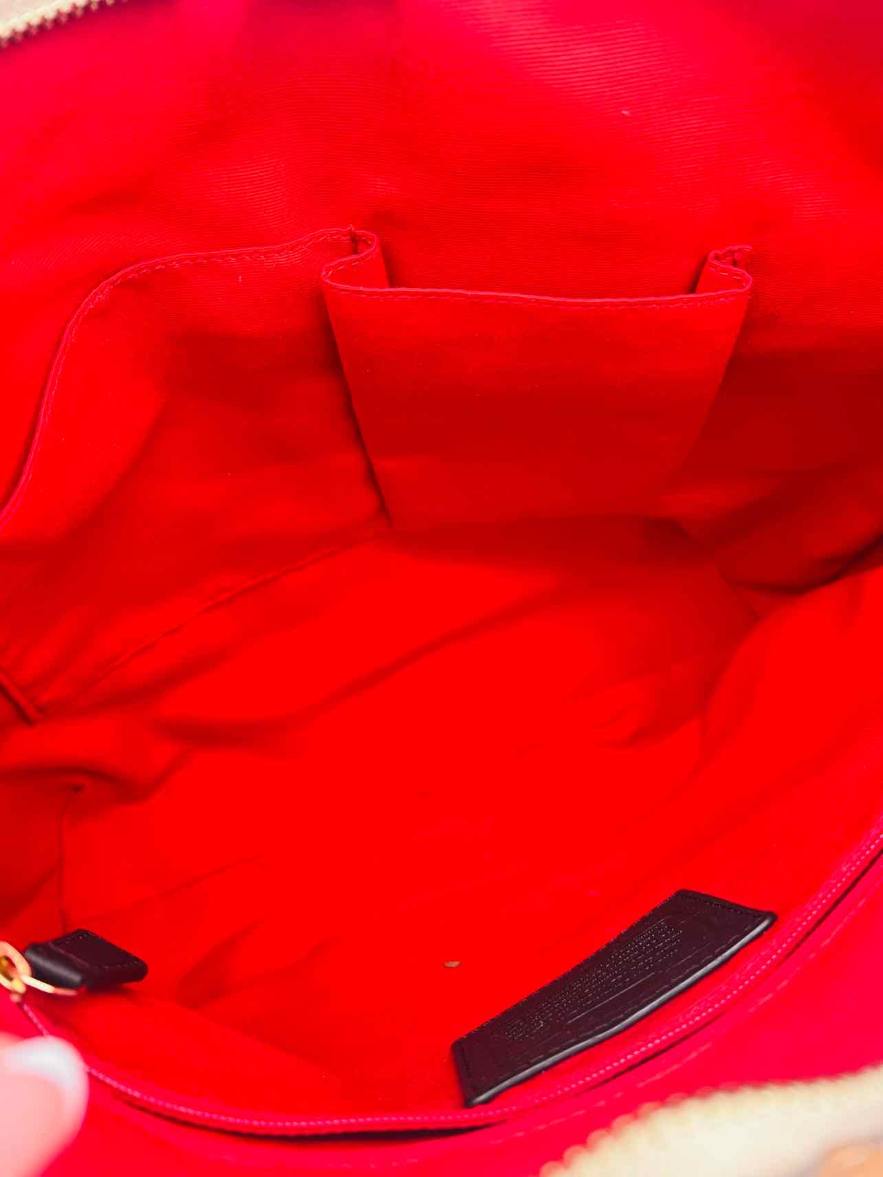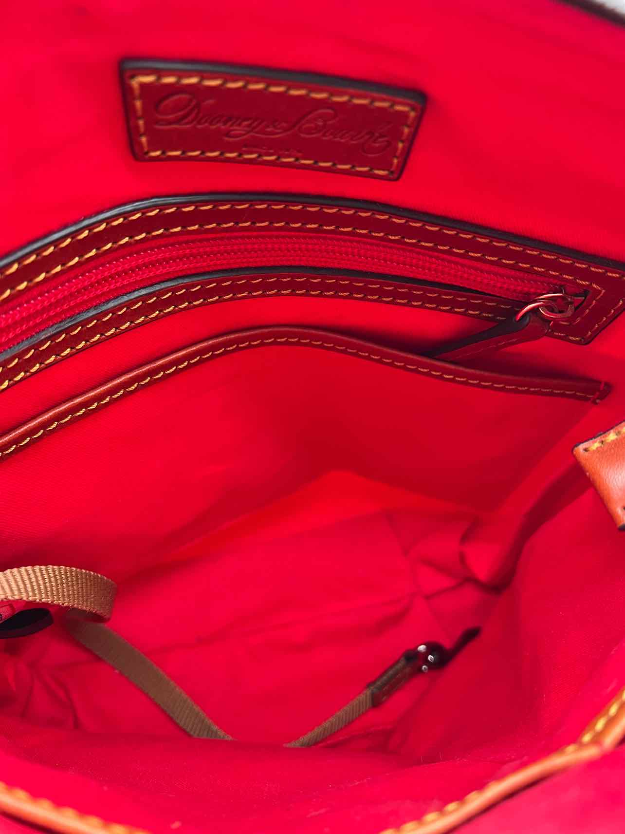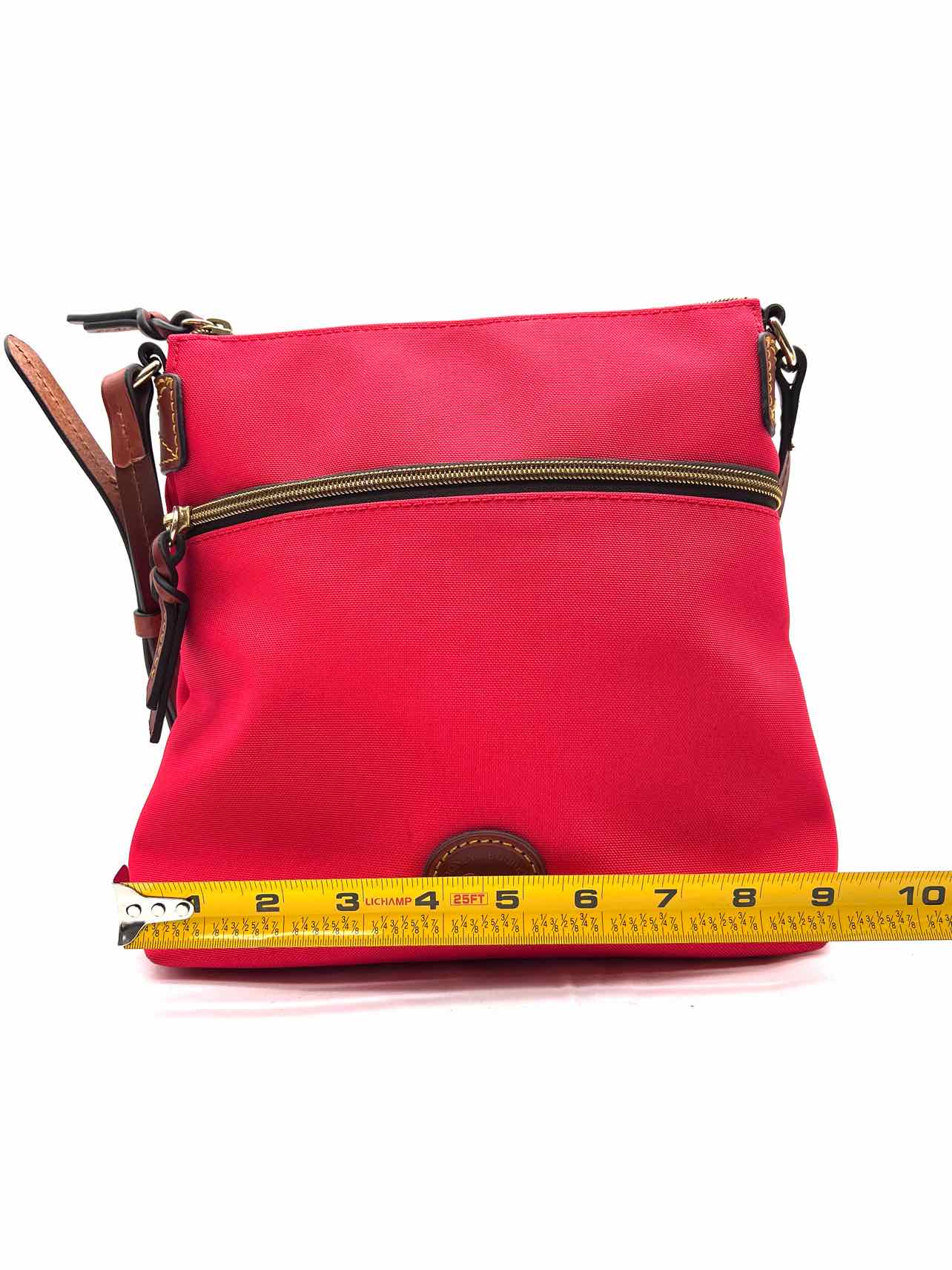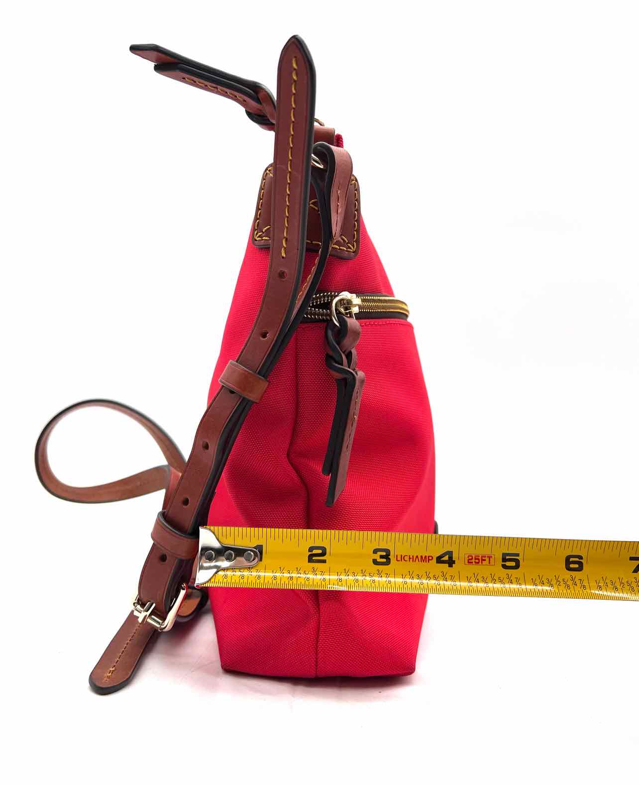 Dooney & Bourke Red/Cognac Nylon Leather Trim Designer Crossbody Purse