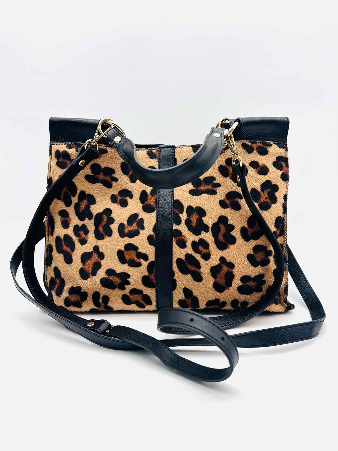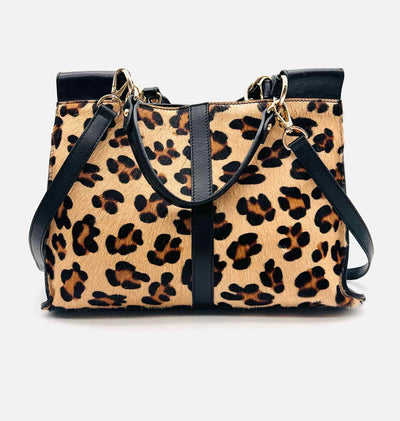 Divina Firenze Tan/Black Animal Print Leather Designer Satchel