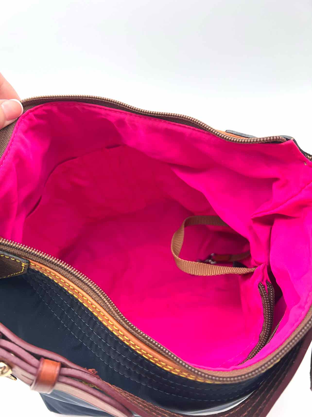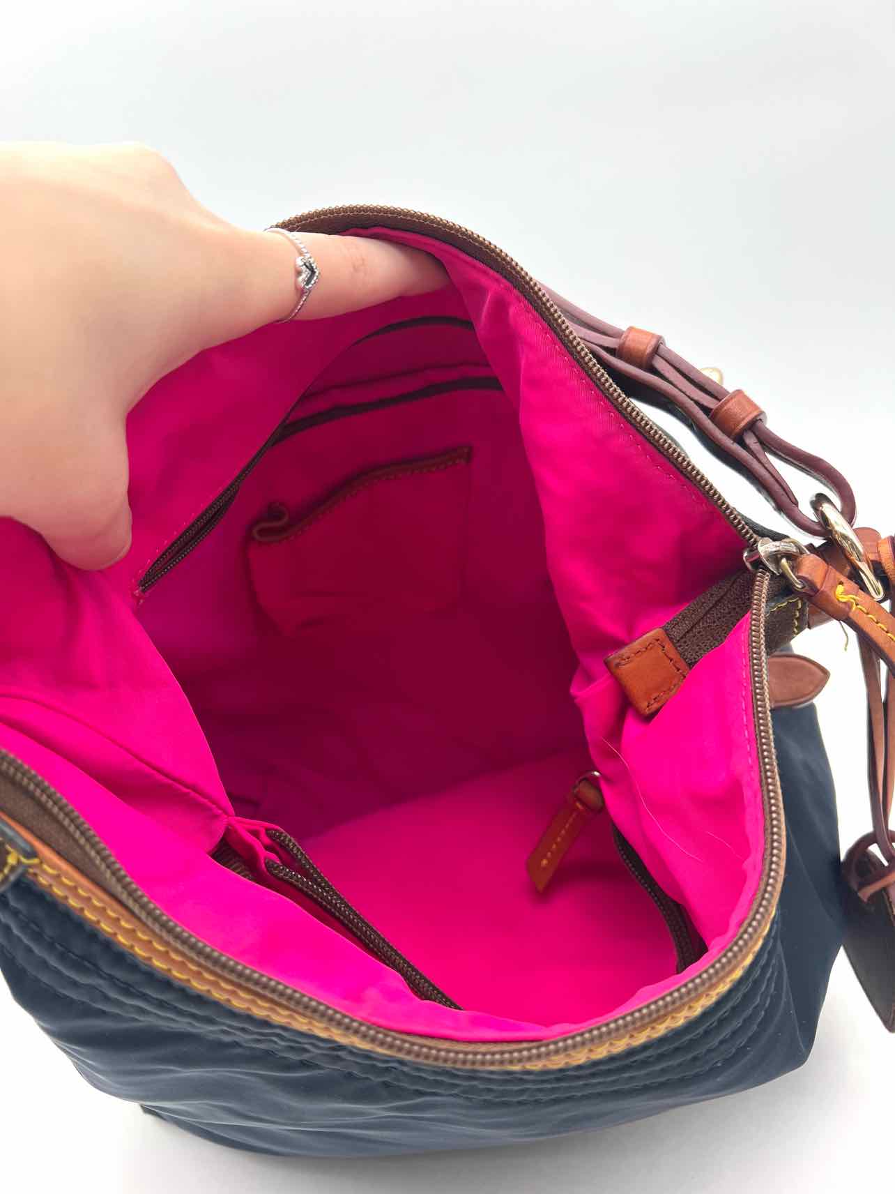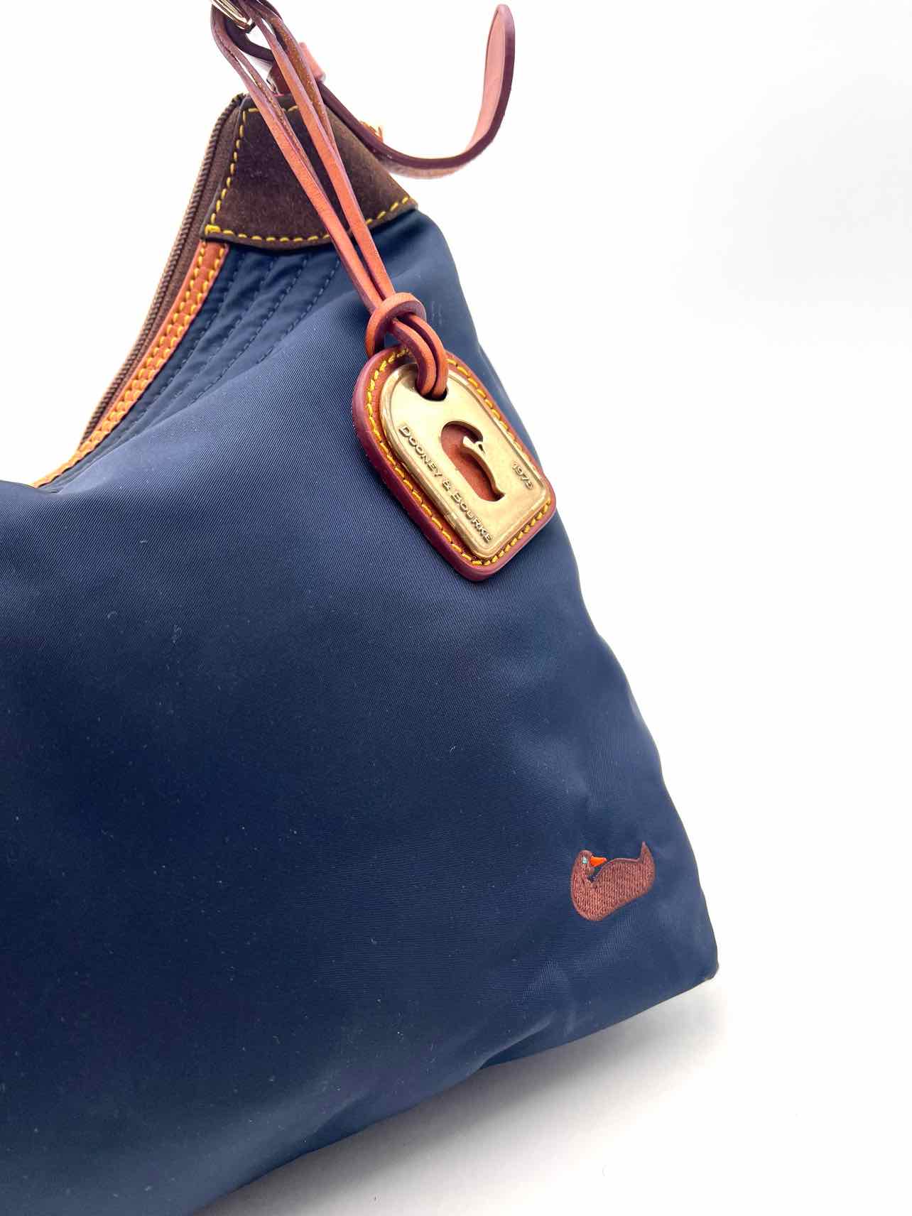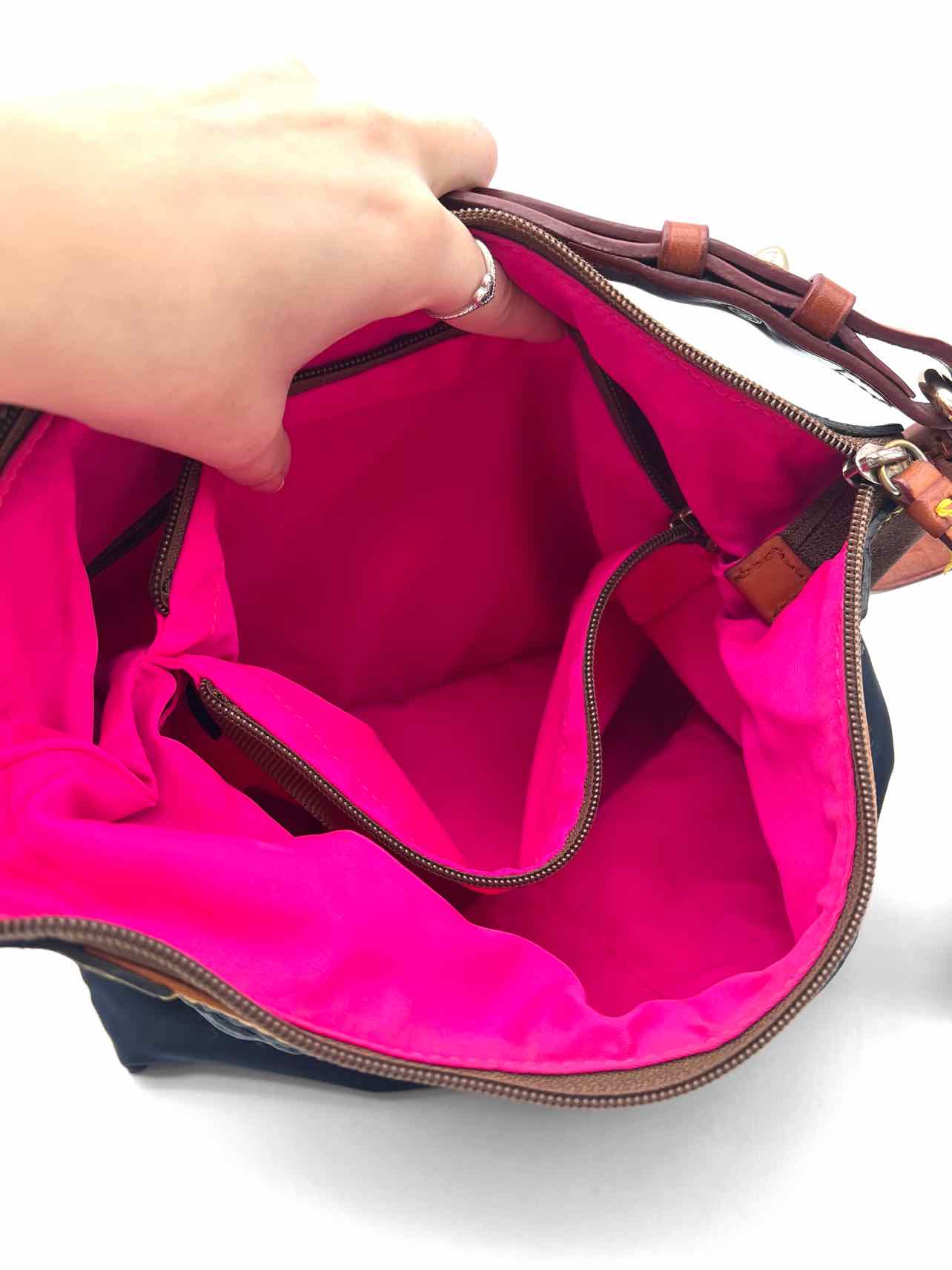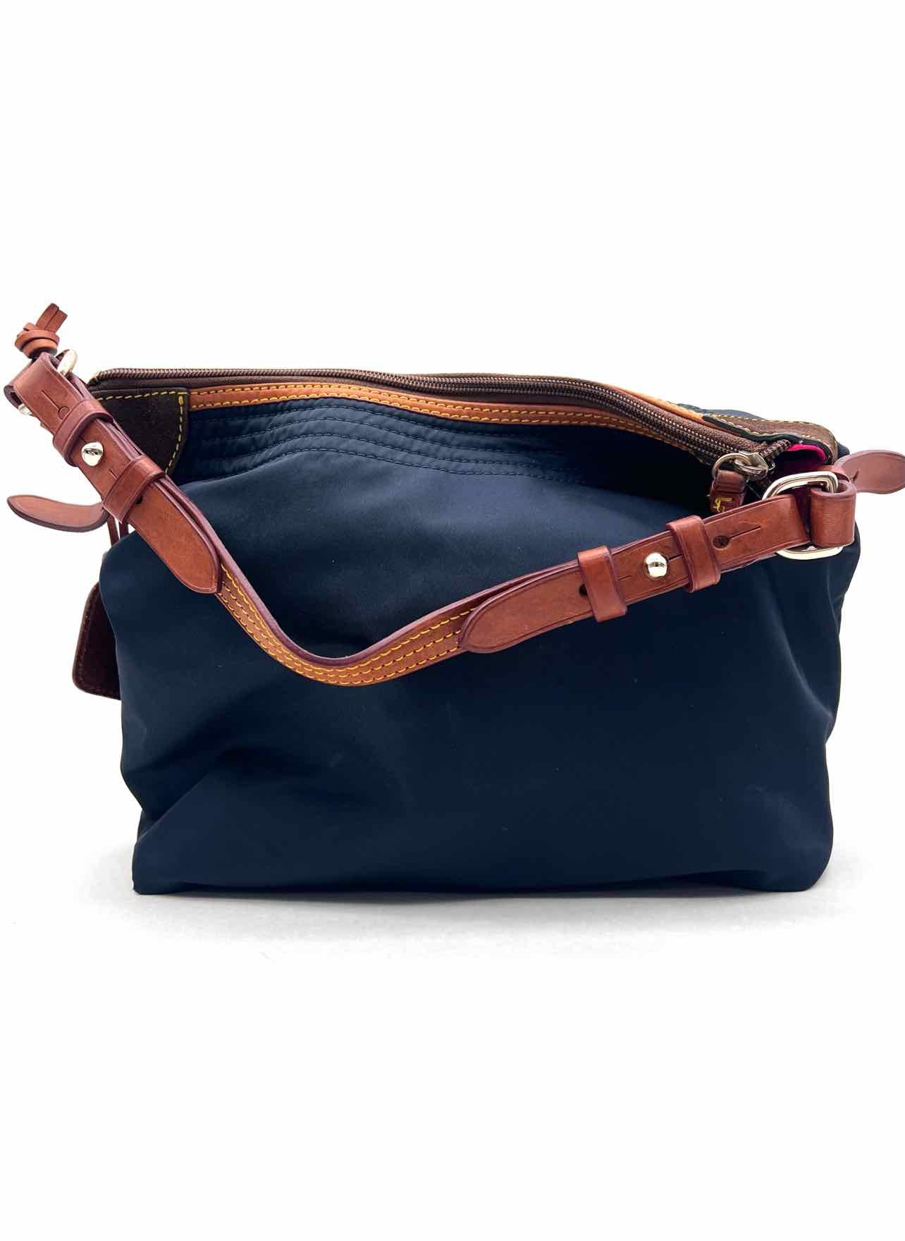 Dooney & Bourke Navy/Brown Shoulder Bag Nylon Leather Trim Designer Purse