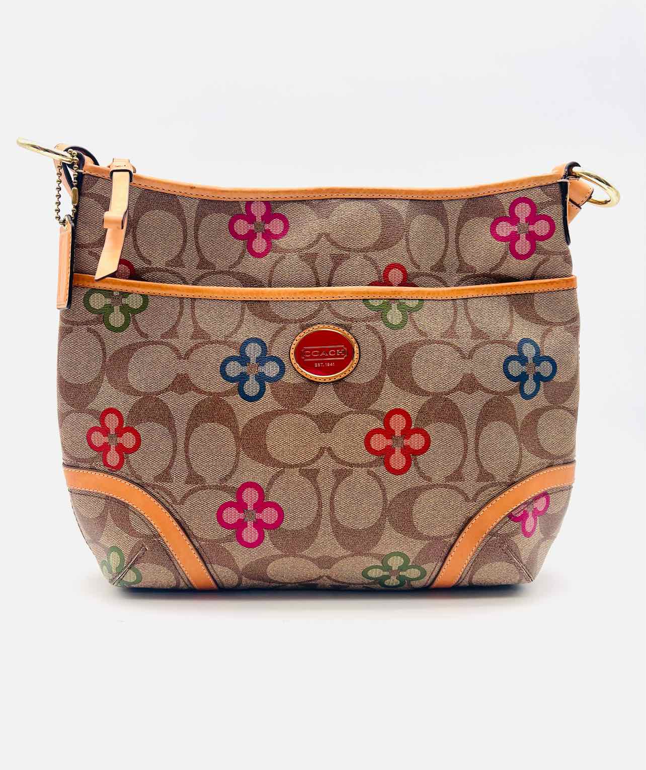 Coach Tan/Multi Shoulder Bag Signature Floral Designer Purse