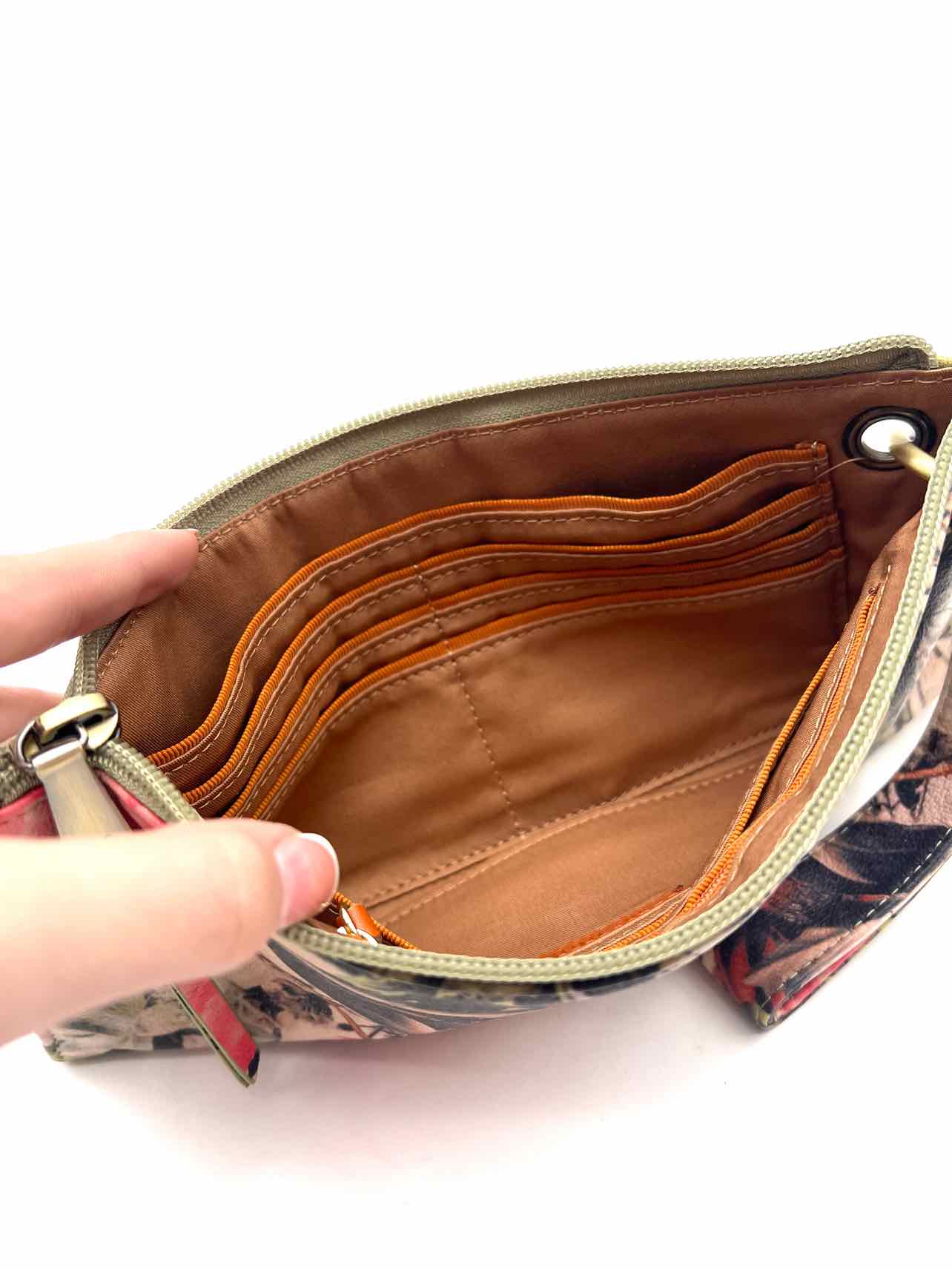 Patricia Nash Tan/Multi Floral Leather Designer Crossbody Purse