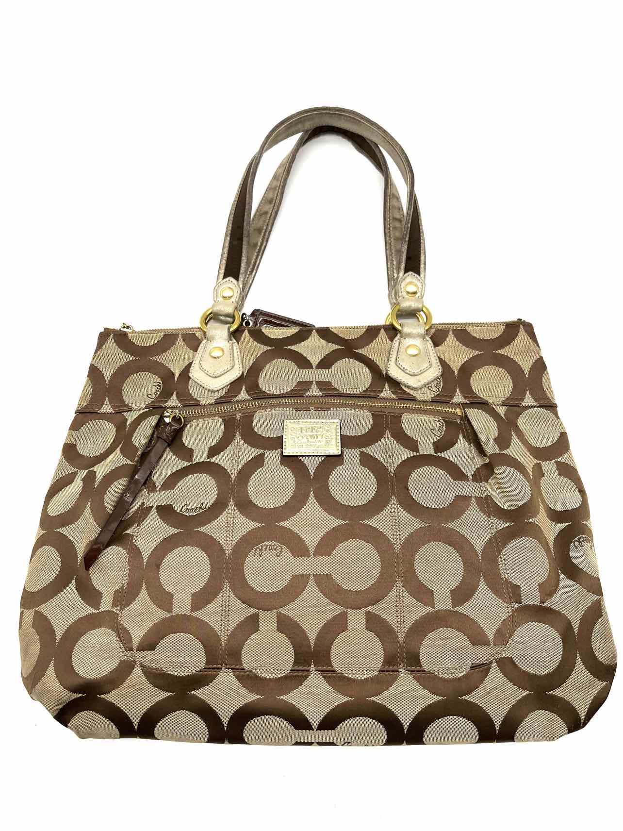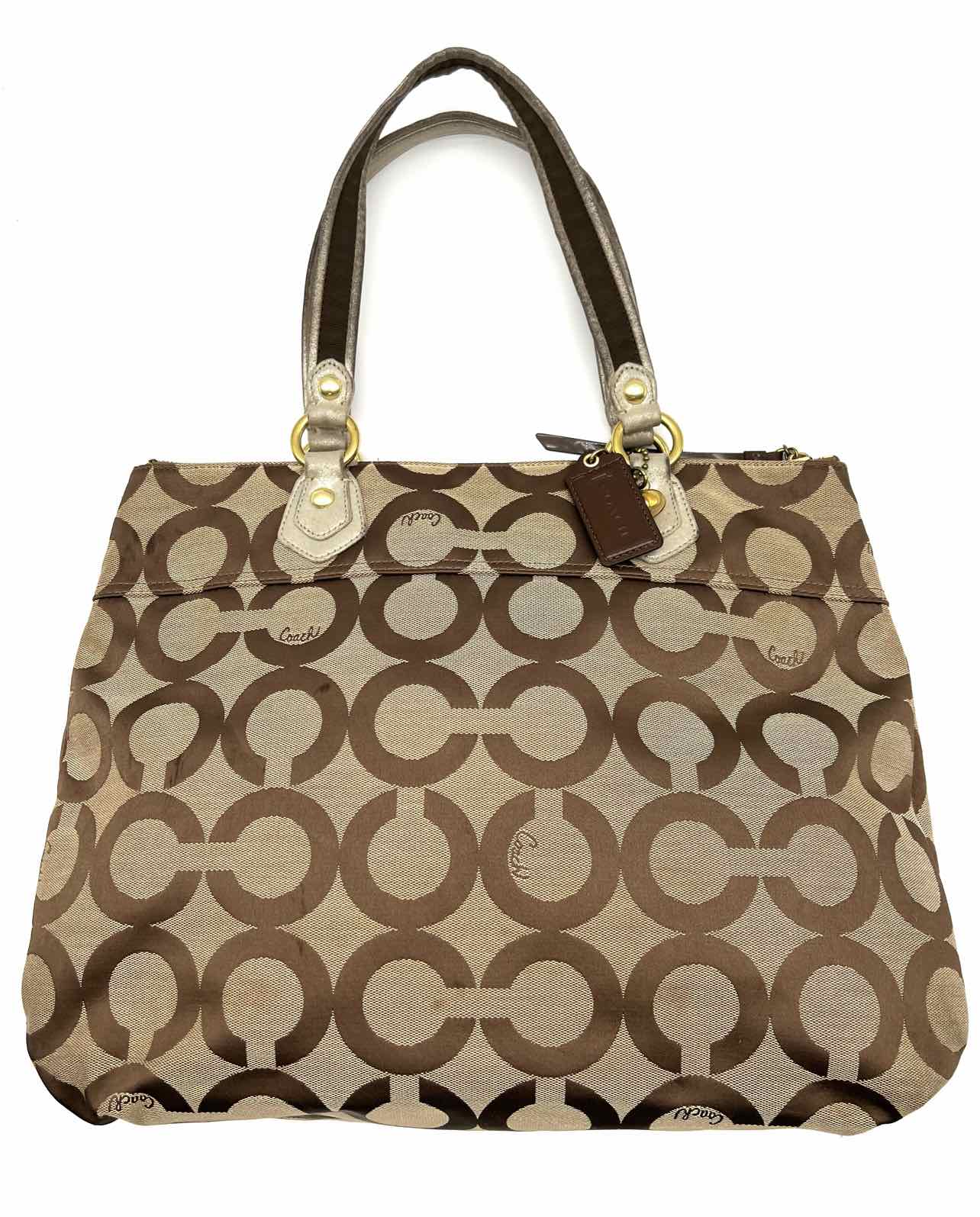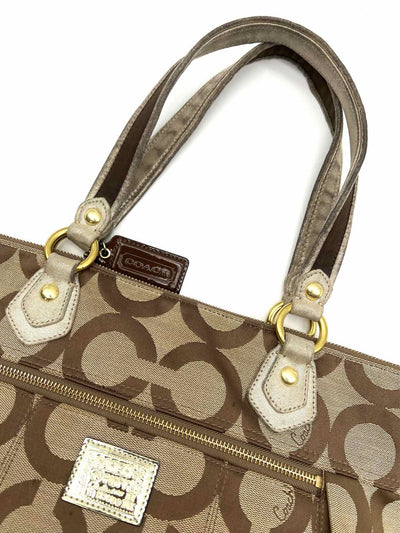 Coach Tan/Brown Signature Fabric/Leather Designer Tote