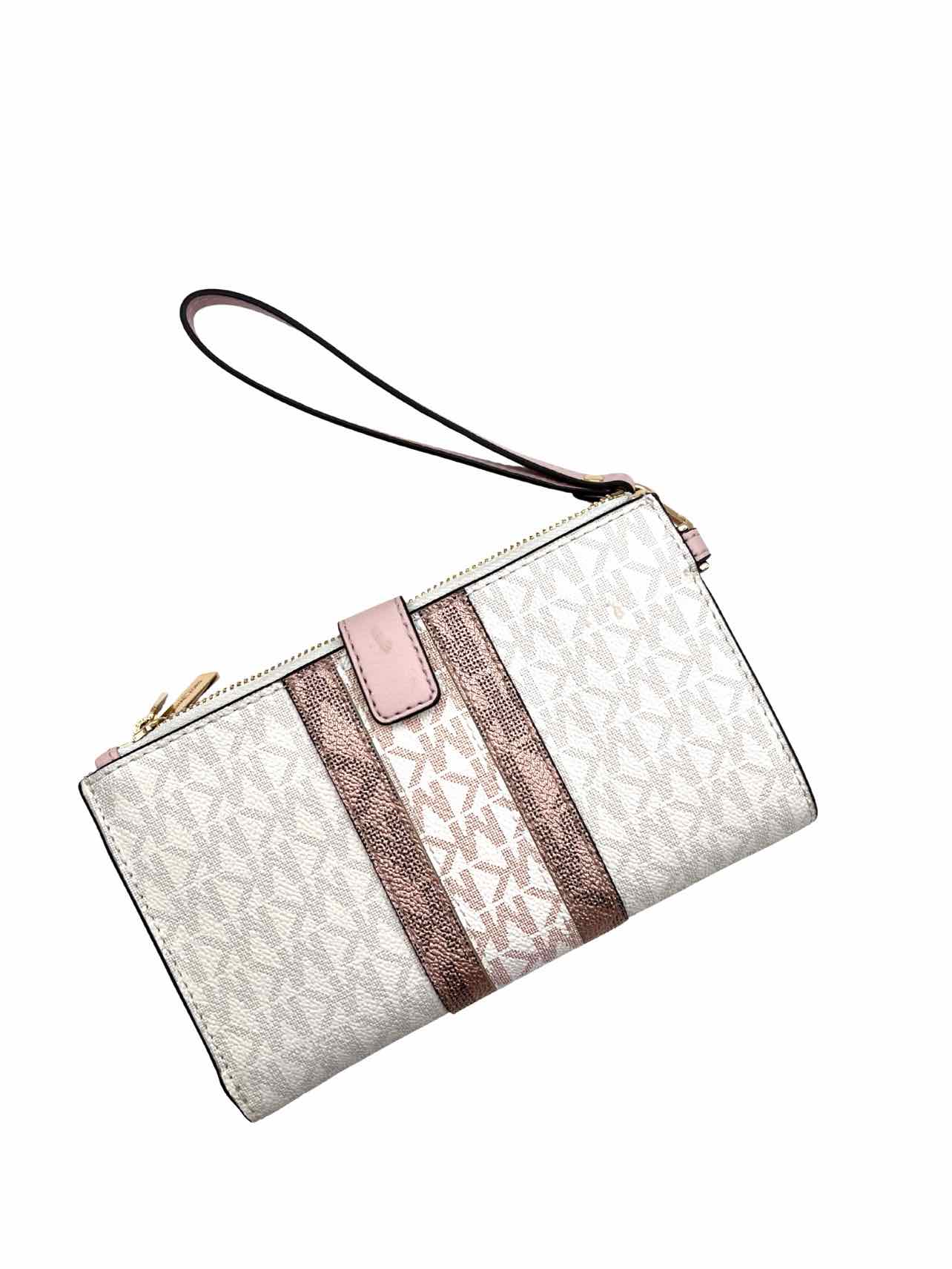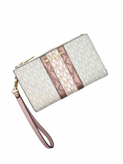 Michael Michael Kors Size White/Rose Gold Signature Leather Designer Wristlet