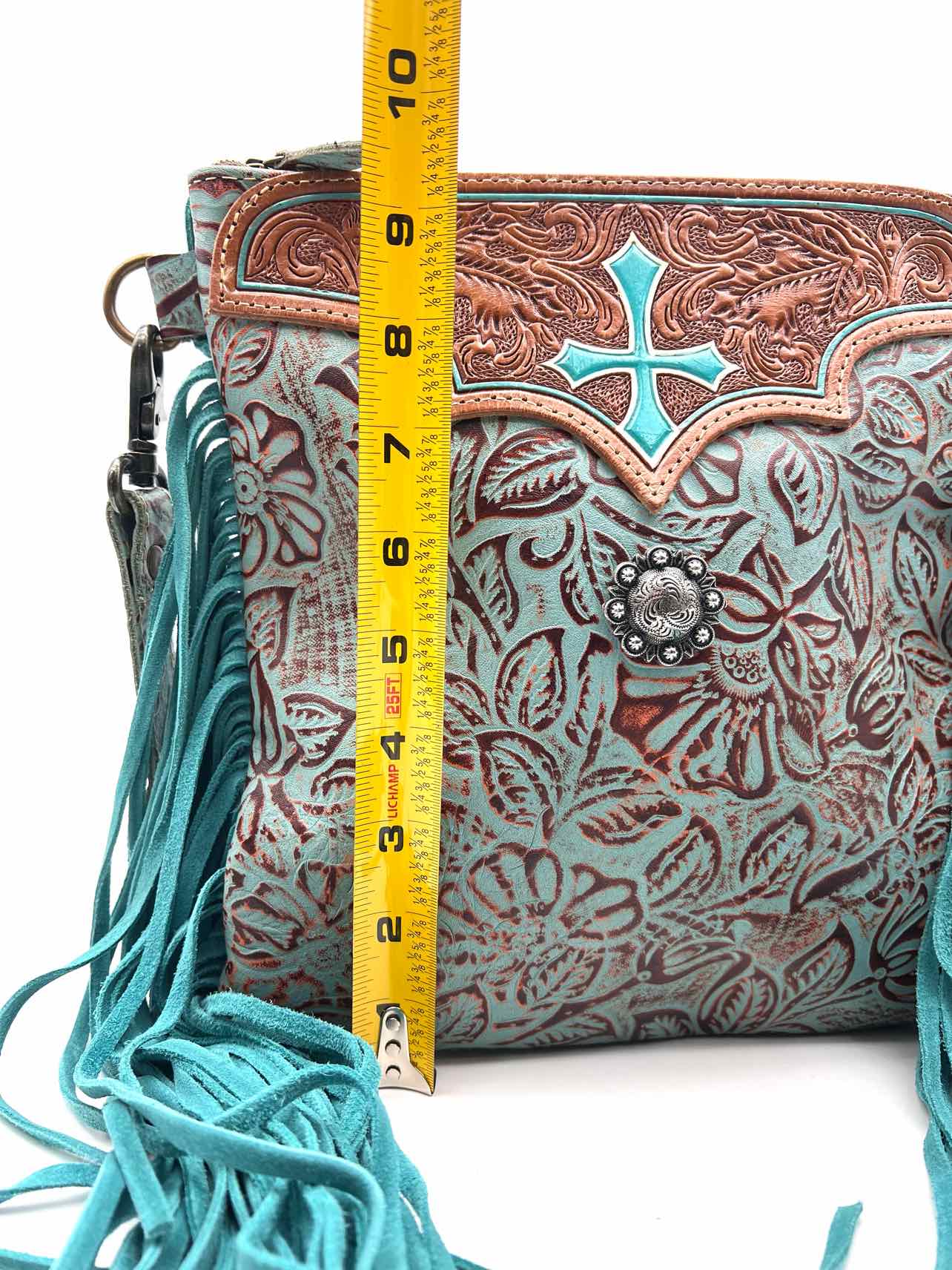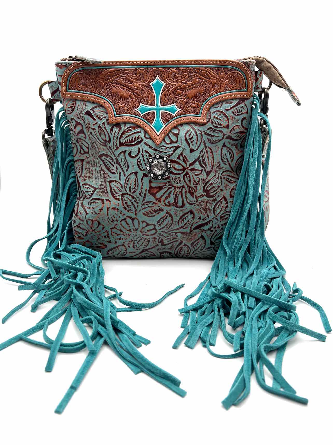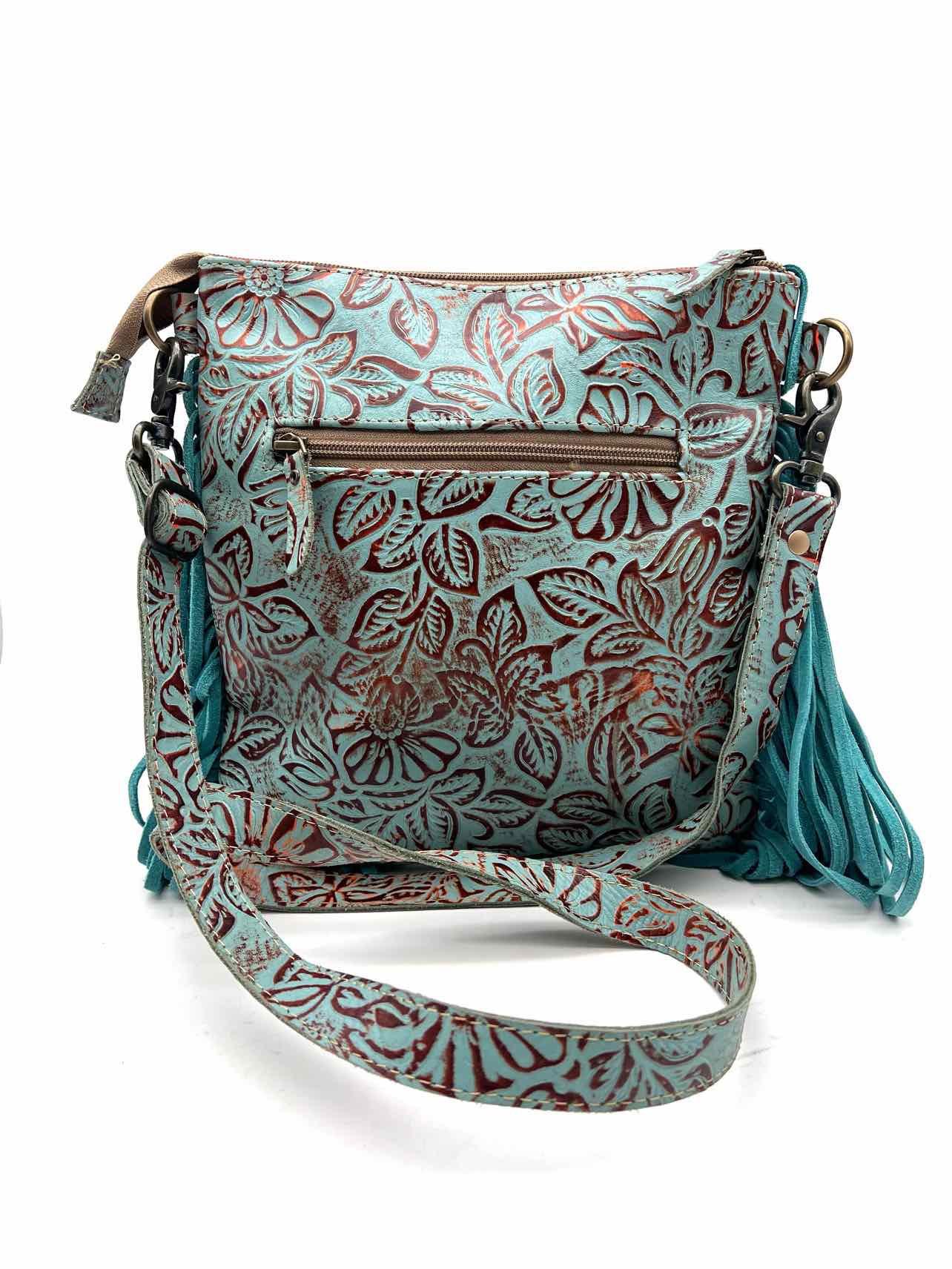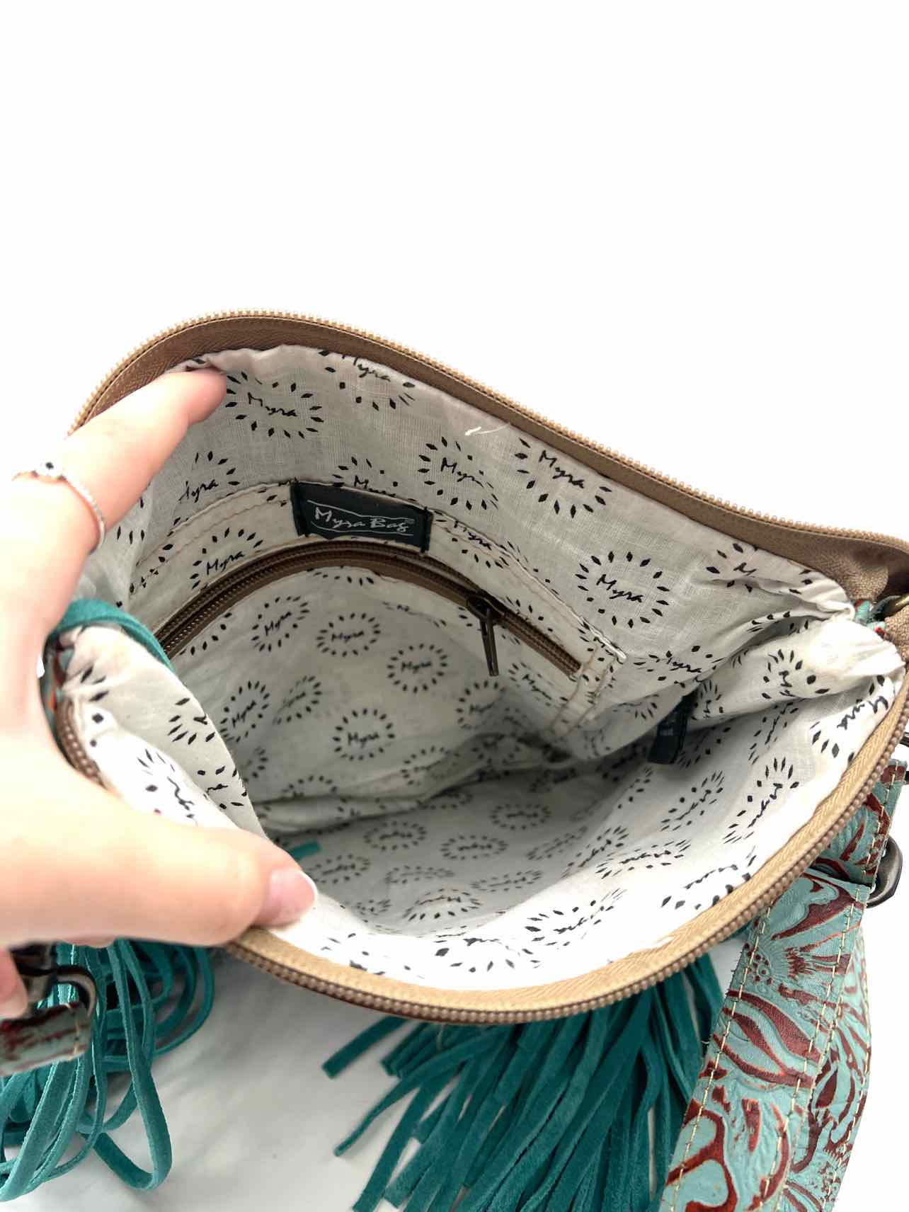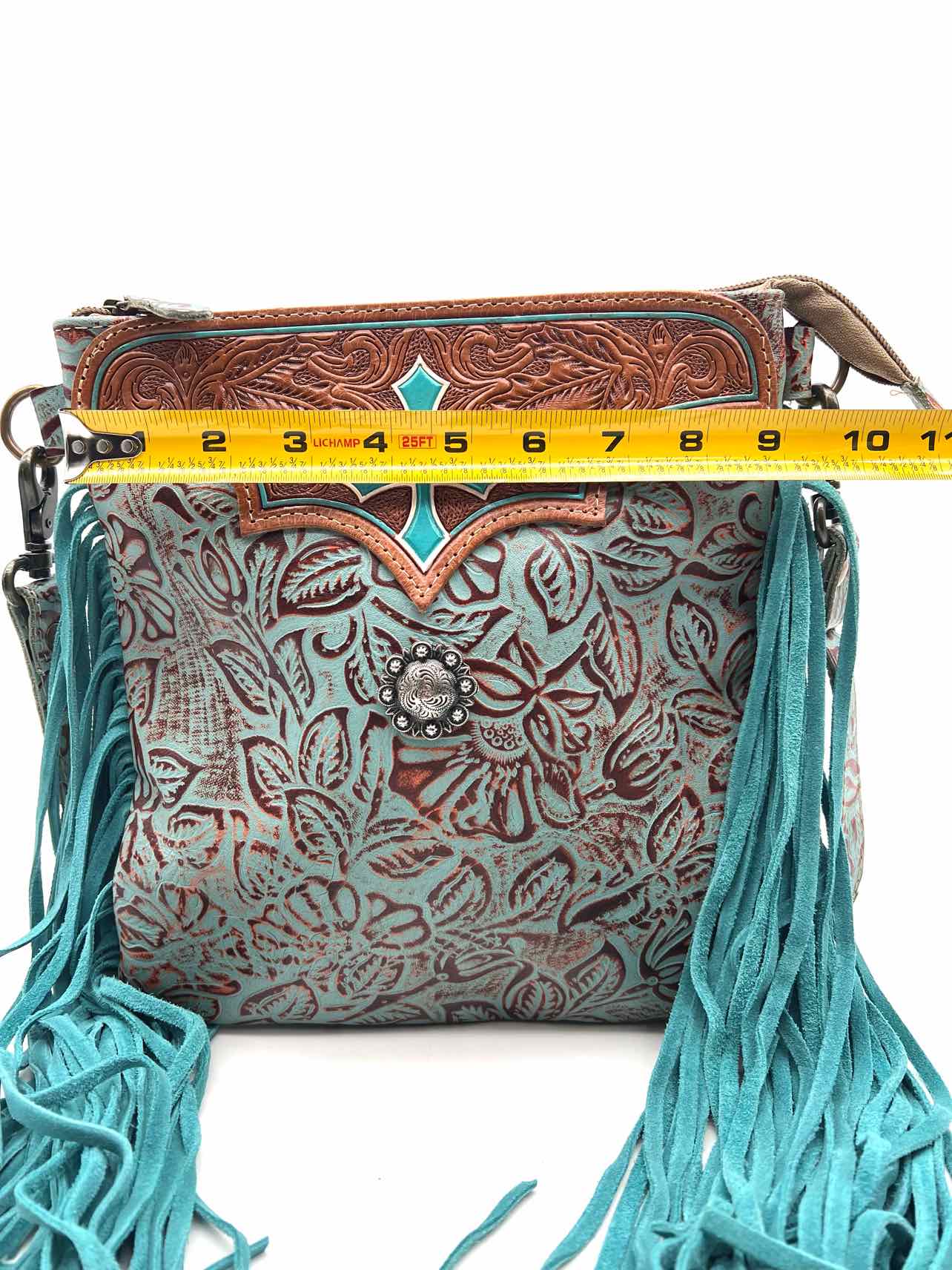 Myra Bag Turq/Brown Embossed Fringe Purses Crossbody Purse