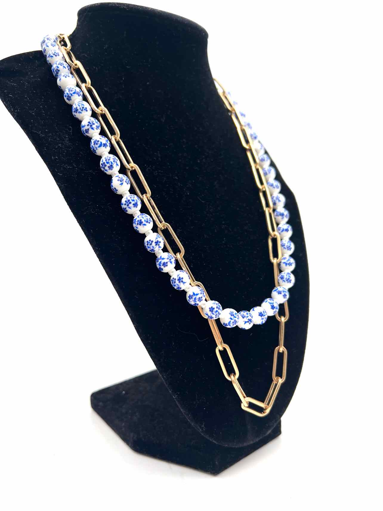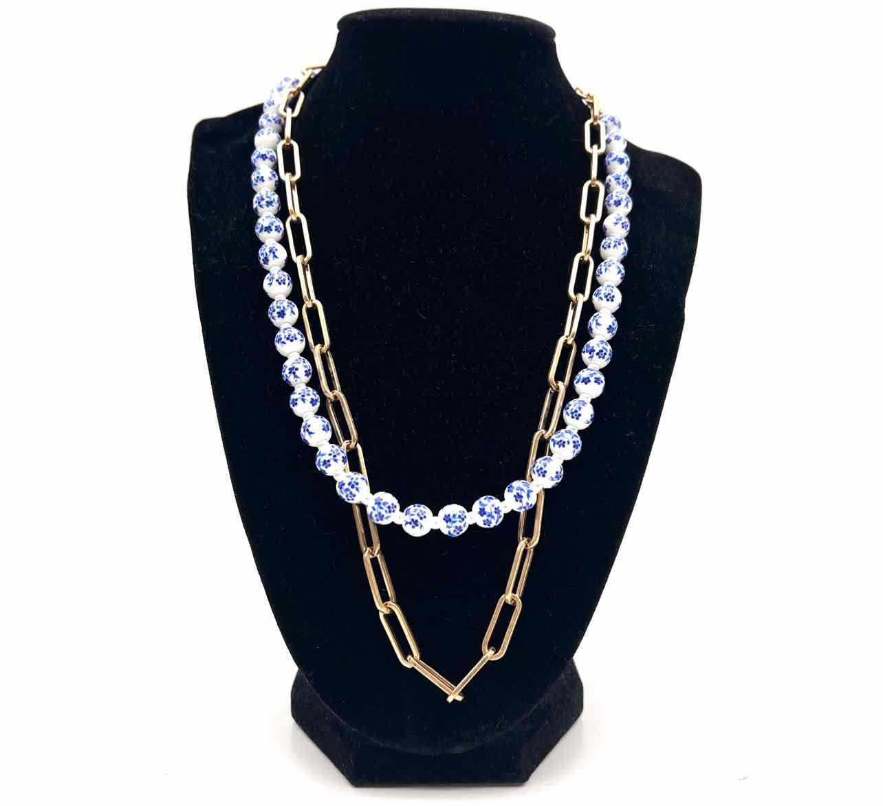 Cabi White/Blue Multi-Strand Chinoiserie Beaded Jewelry Necklace