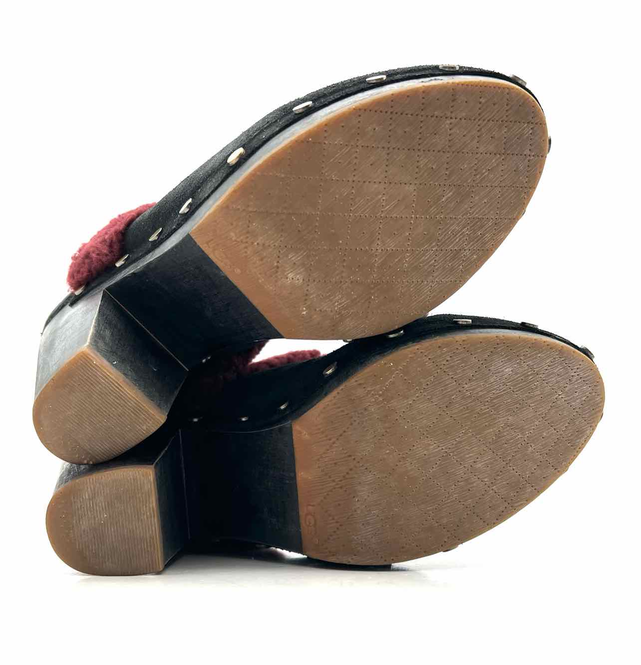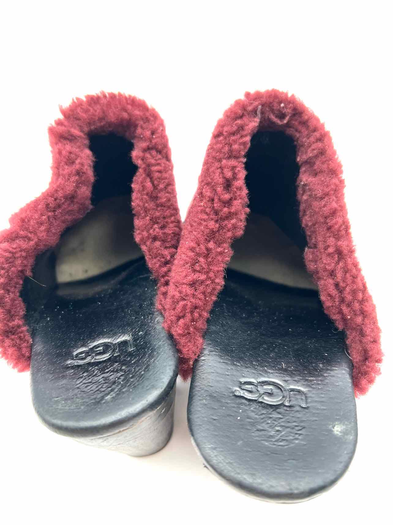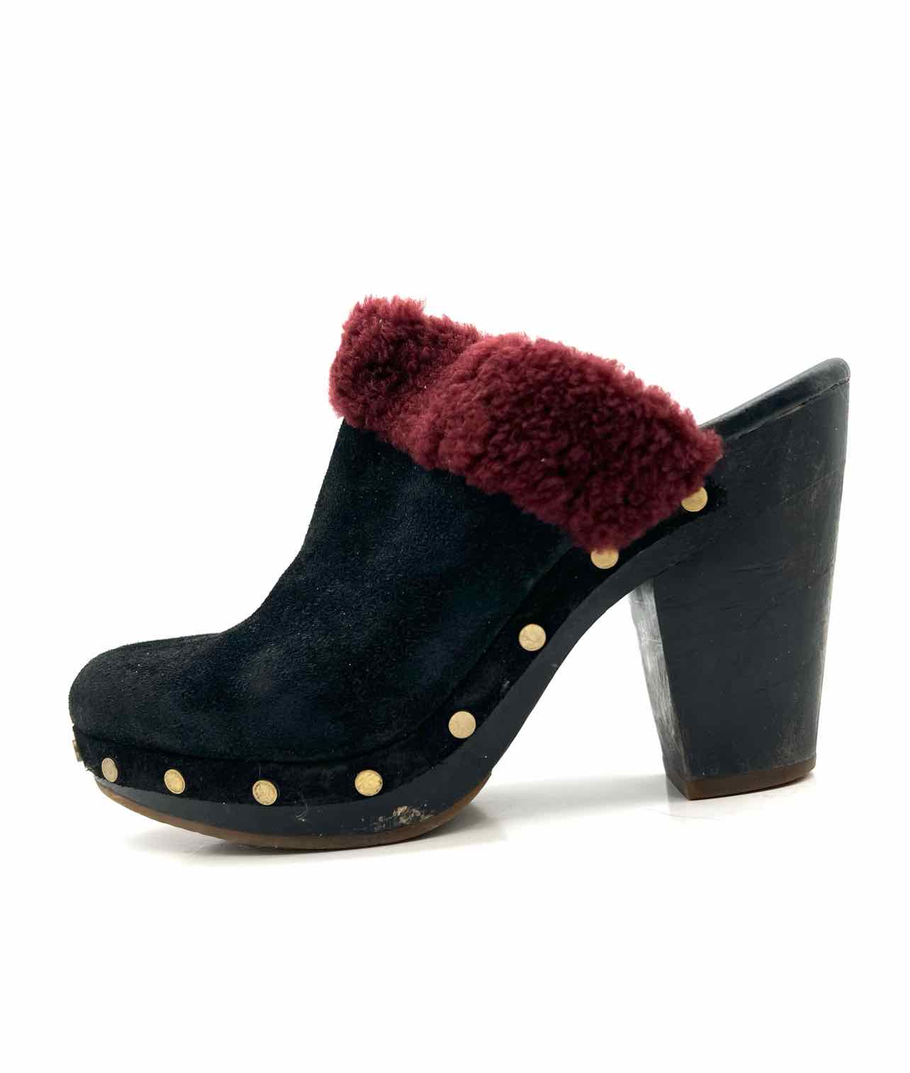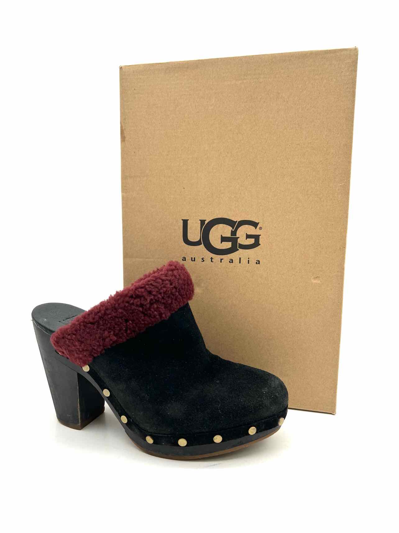 UGG Australia Size 8 Black/Burgundy Fur Suede W/ BOX!!! Shoes Clogs