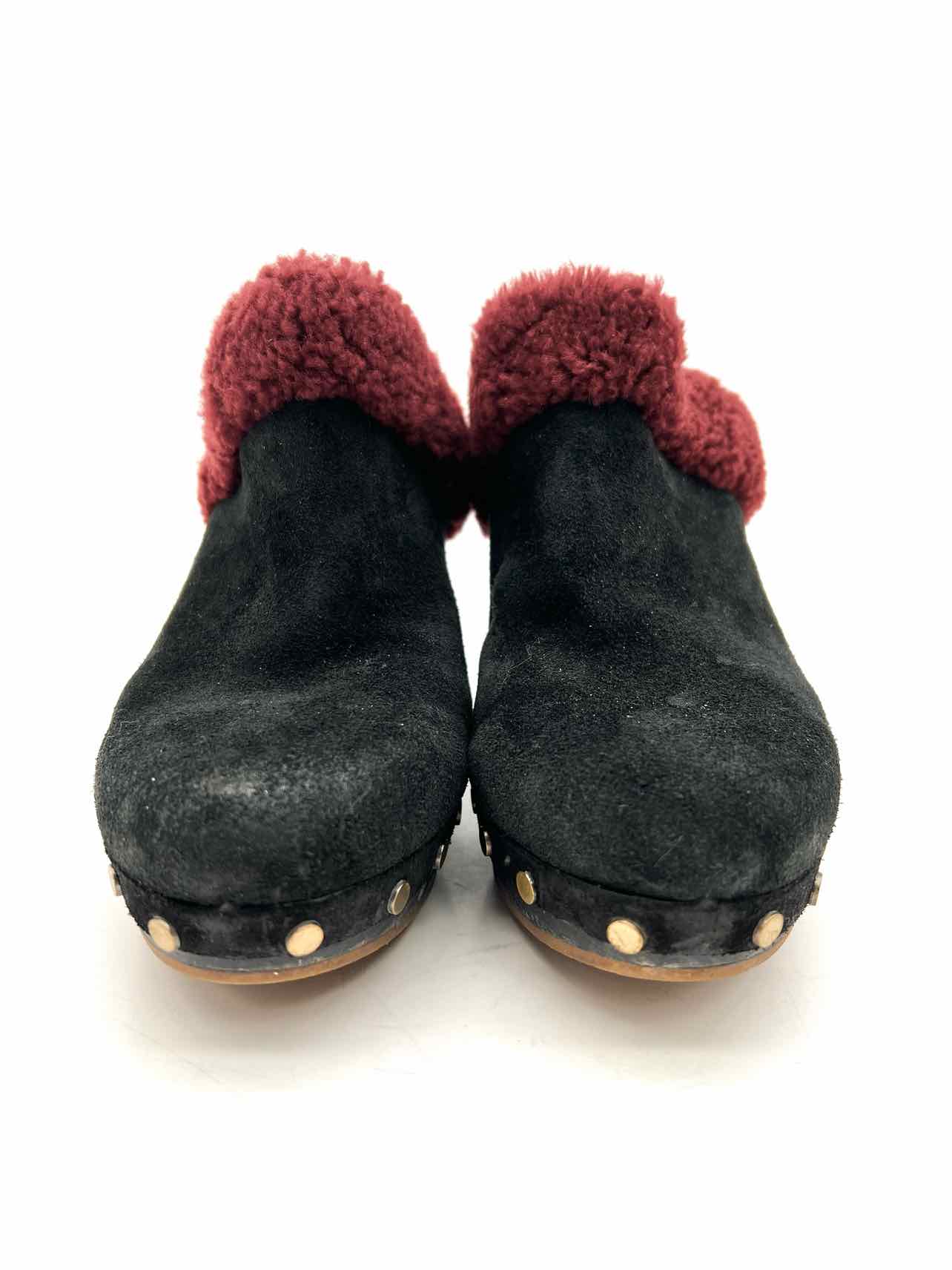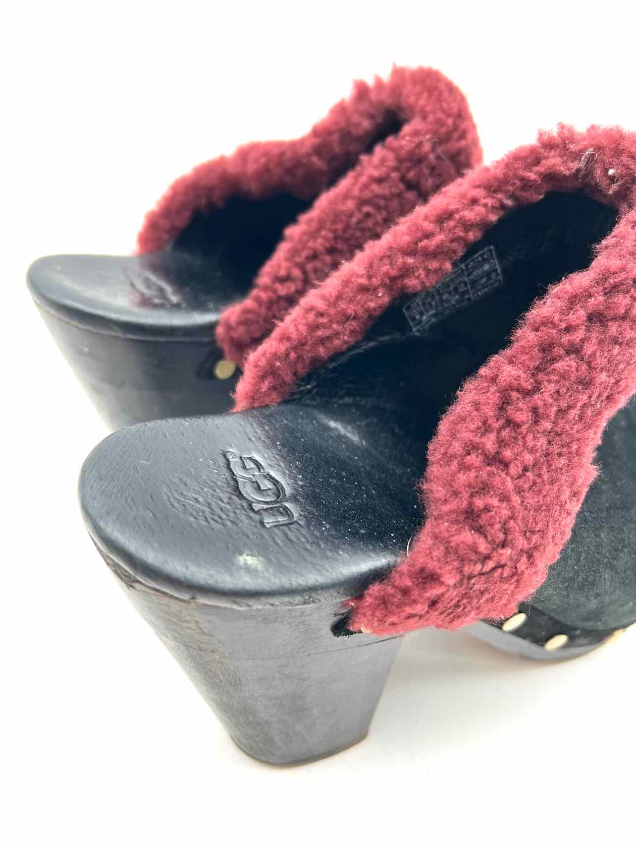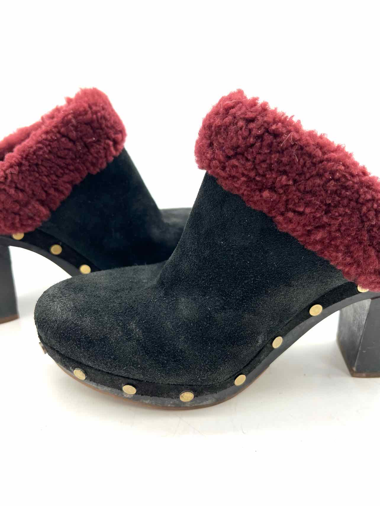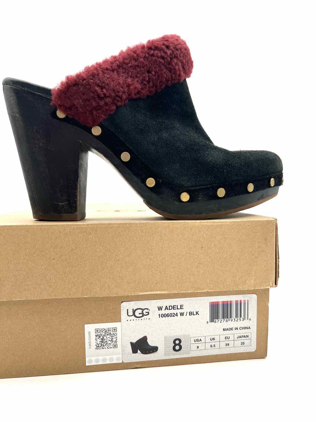 UGG Australia Size 8 Black/Burgundy Fur Suede W/ BOX!!! Shoes Clogs
