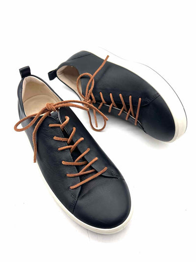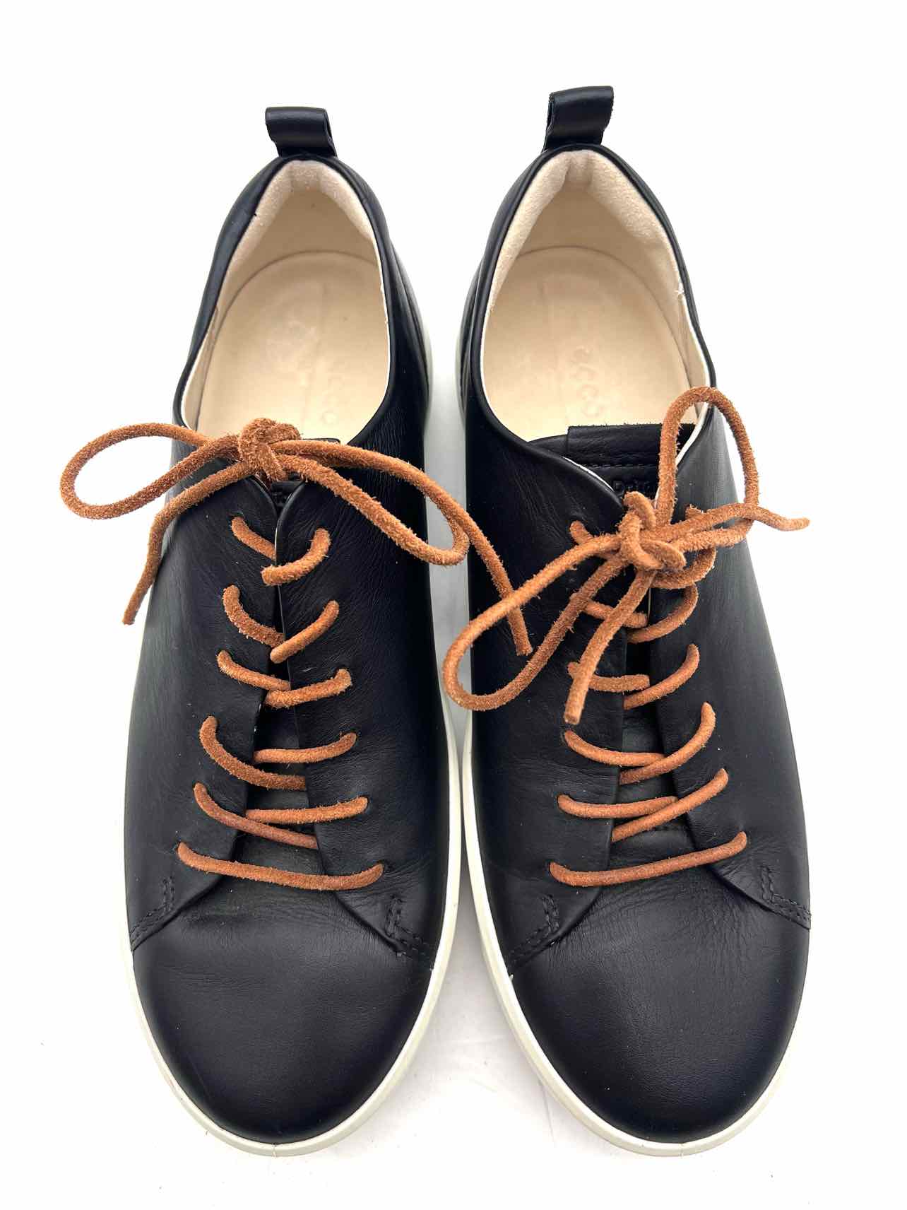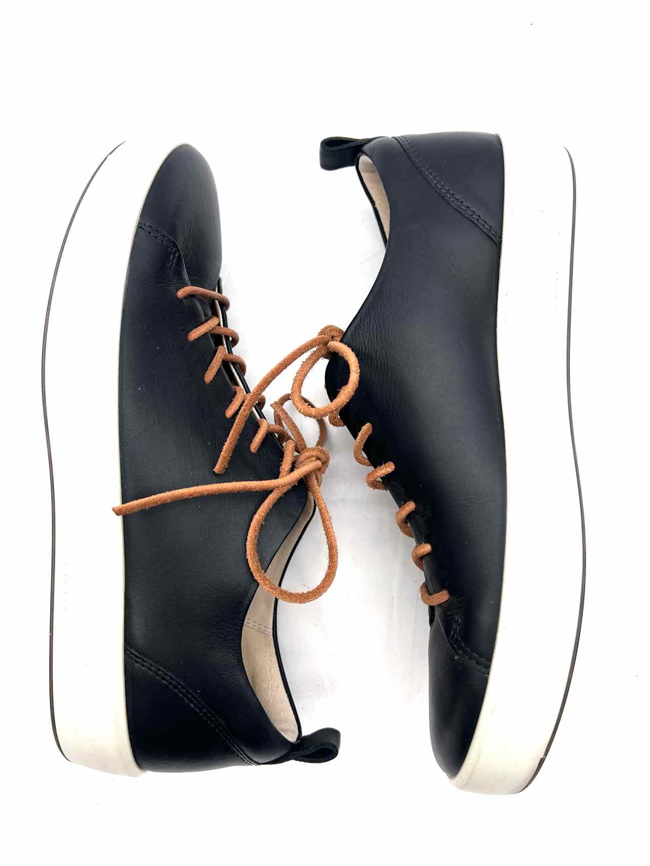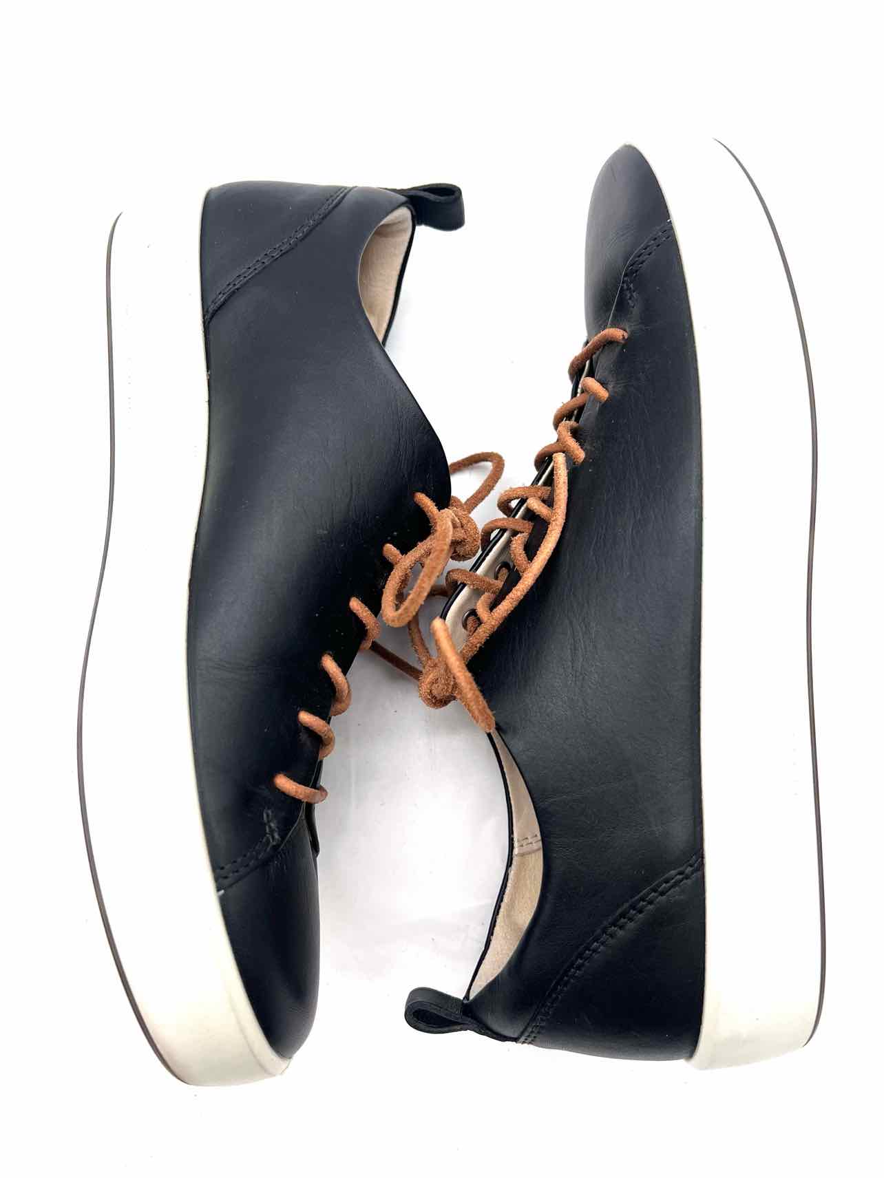 Ecco Size 7 Bk/Wh/Br Lace-Up Leather Shoes Sneakers