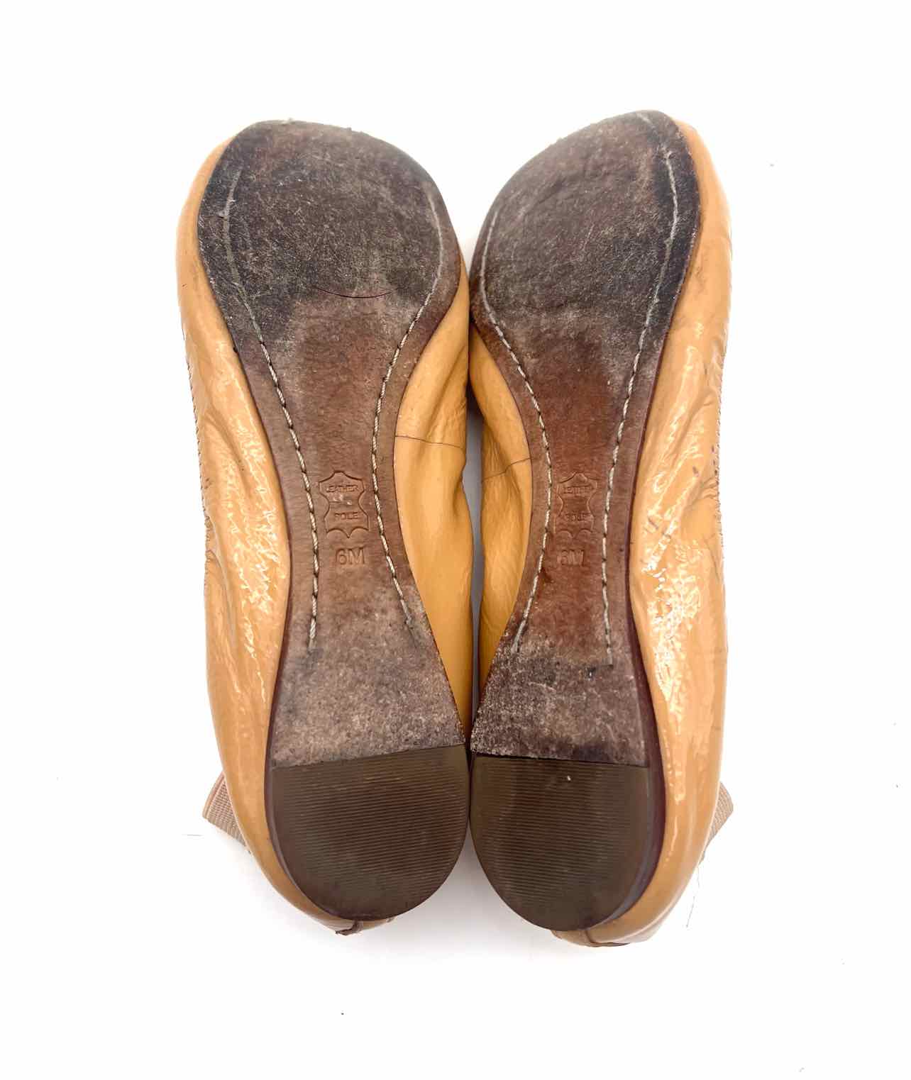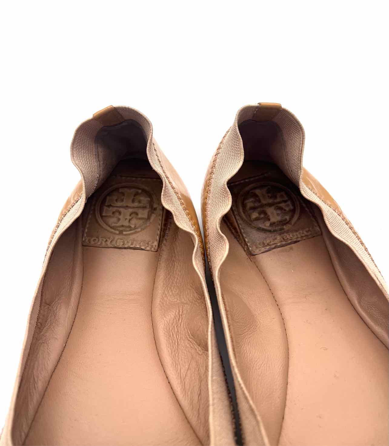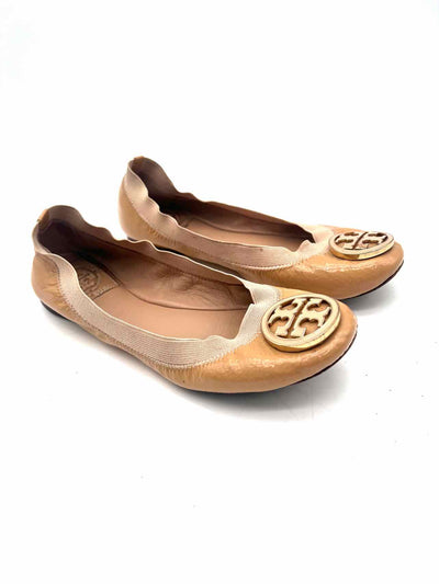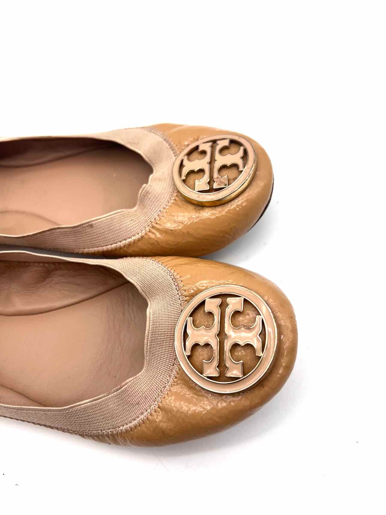 Tory Burch Size 6 Tan/Gold Logo Patent AS IS Shoes Flats
