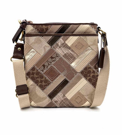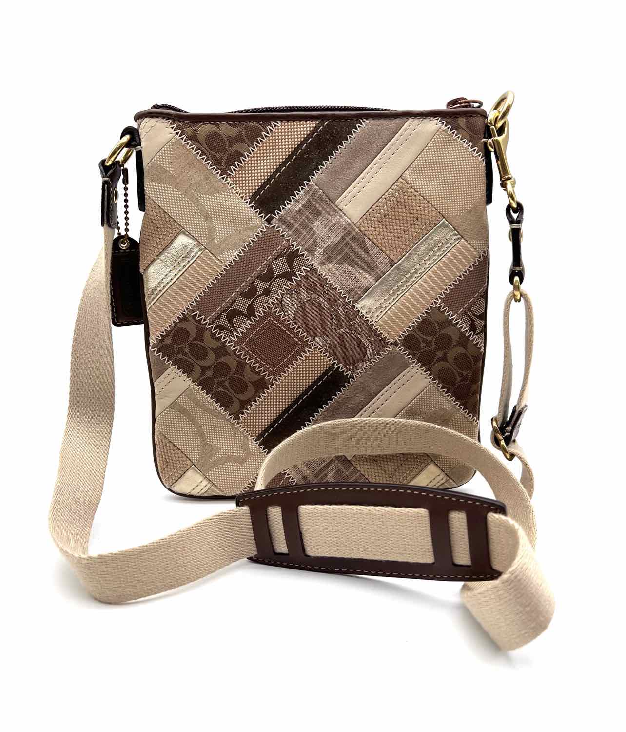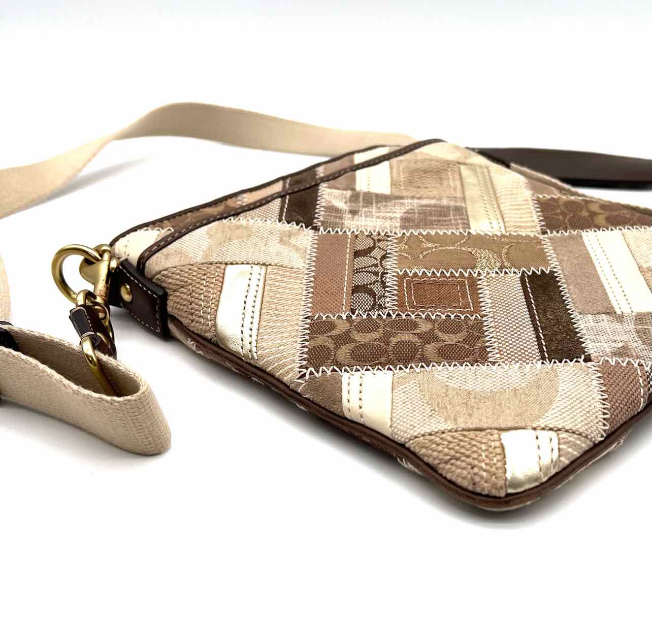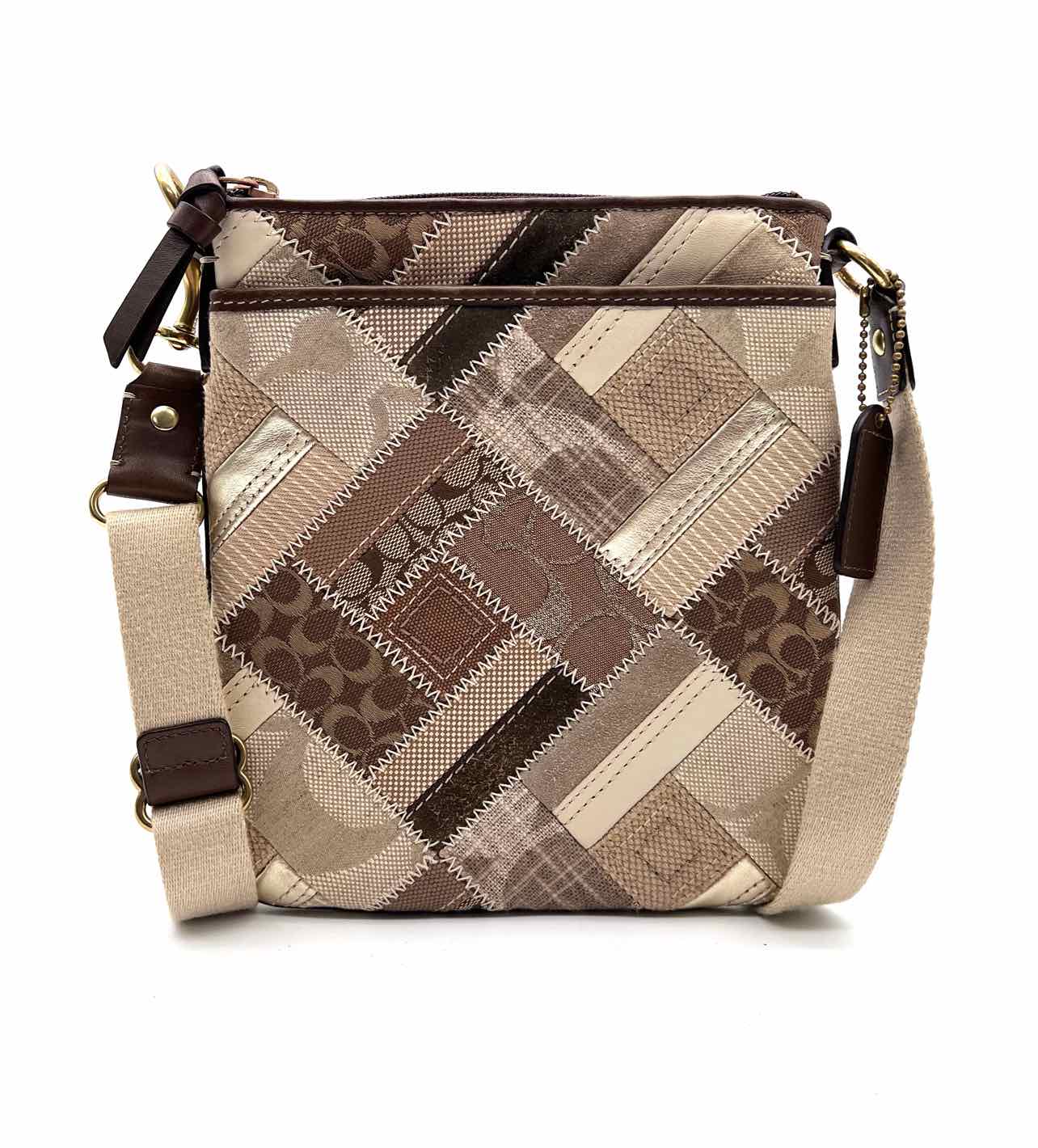 Coach Size Beige/Gold Multi-Print Fabric/Leather Designer Crossbody Purse