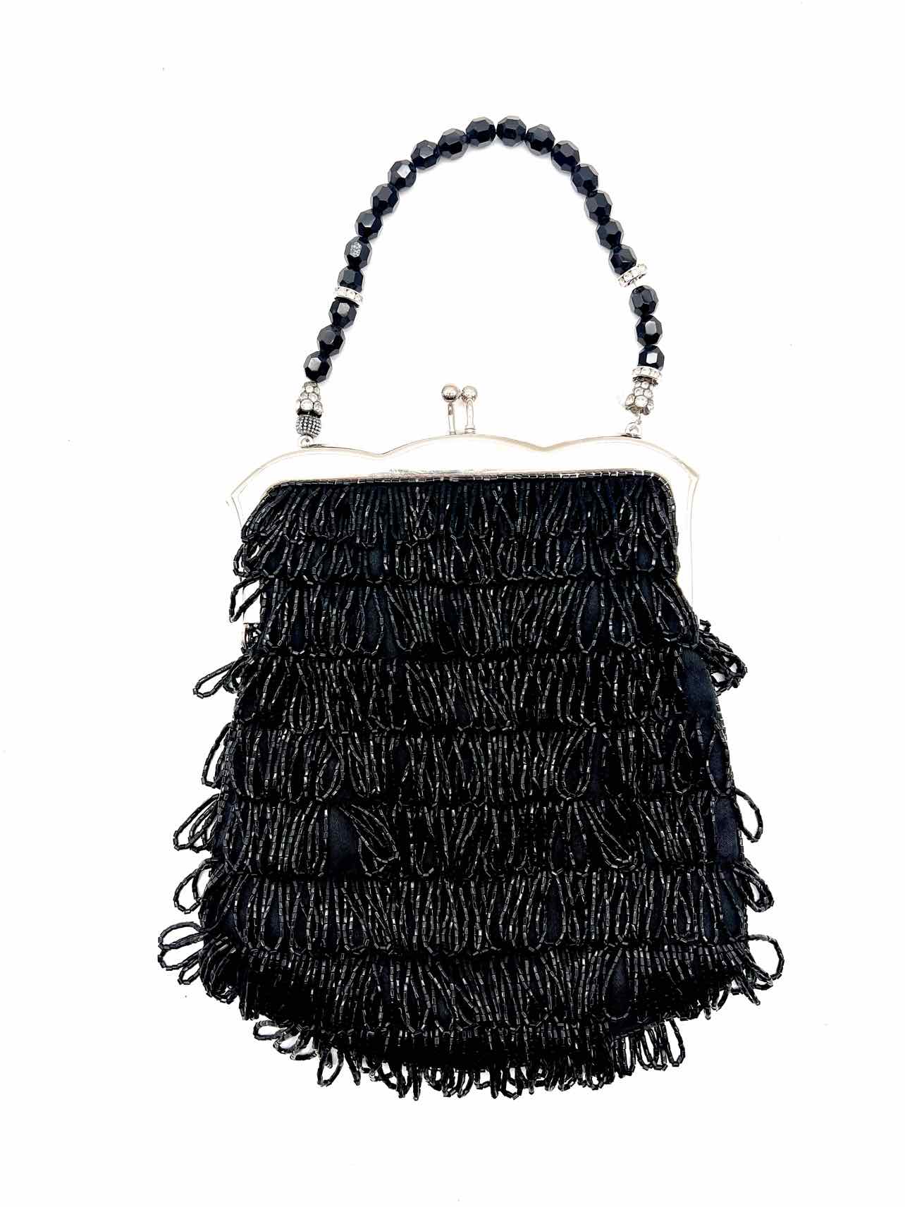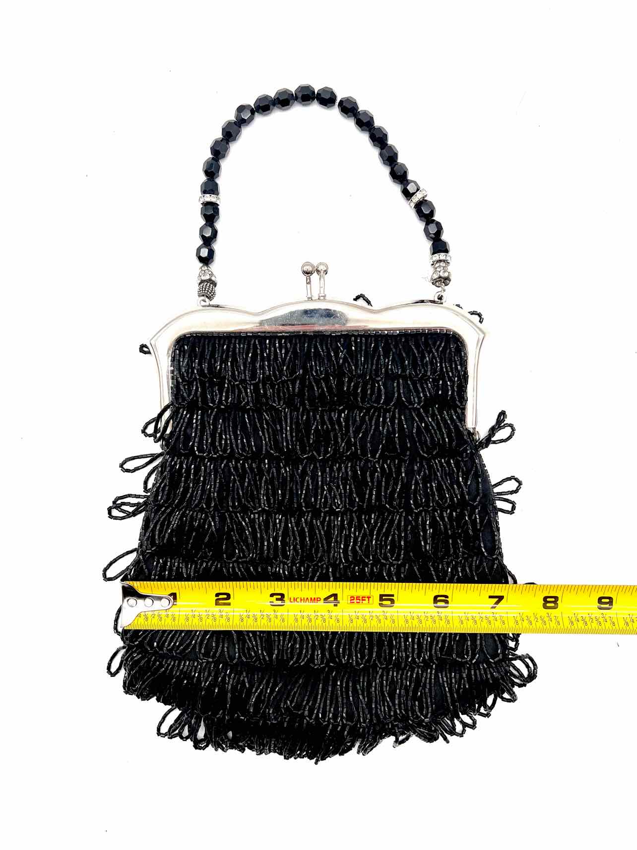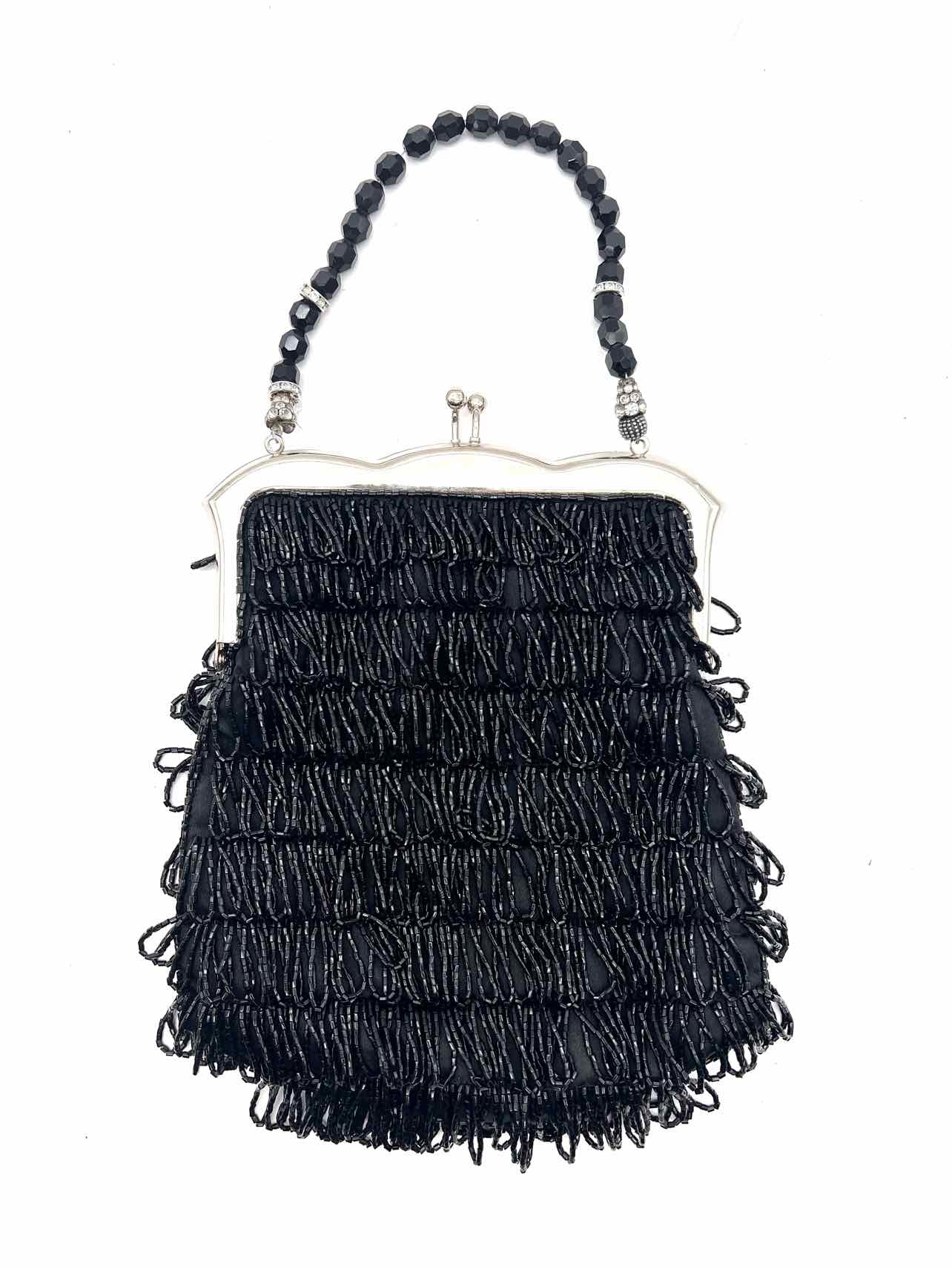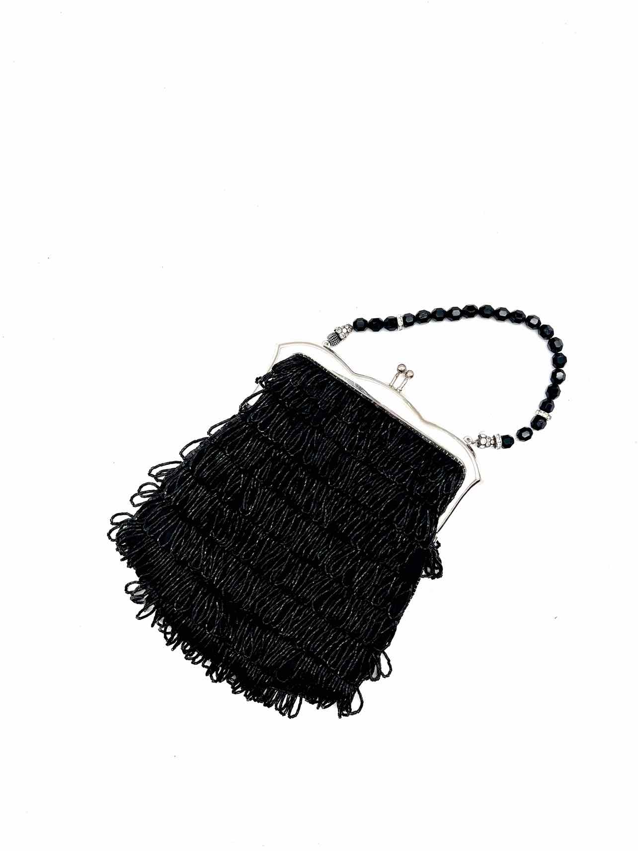 Lily Scott Black/Silver Evening Kiss-Lock Beaded Vintage Purses Clutch Purse
