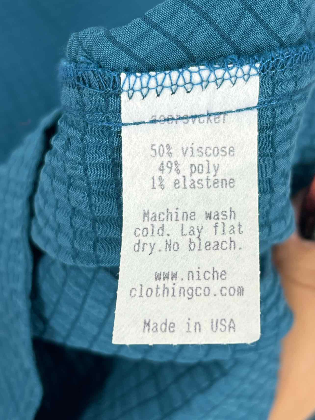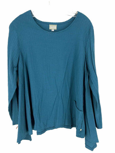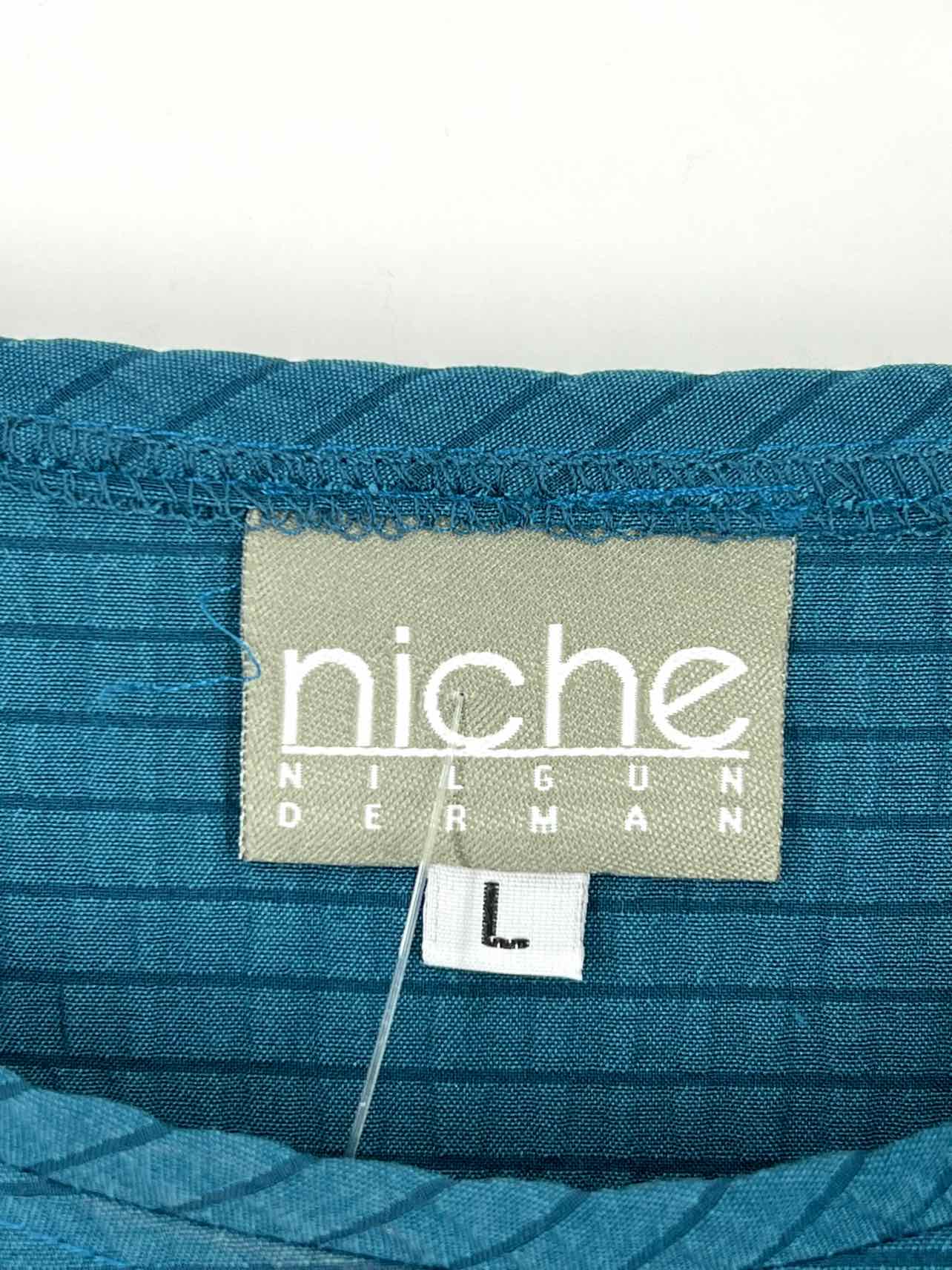 Niche Size L Teal Grid Crinkled NEW Tops Top-Long Sleeve