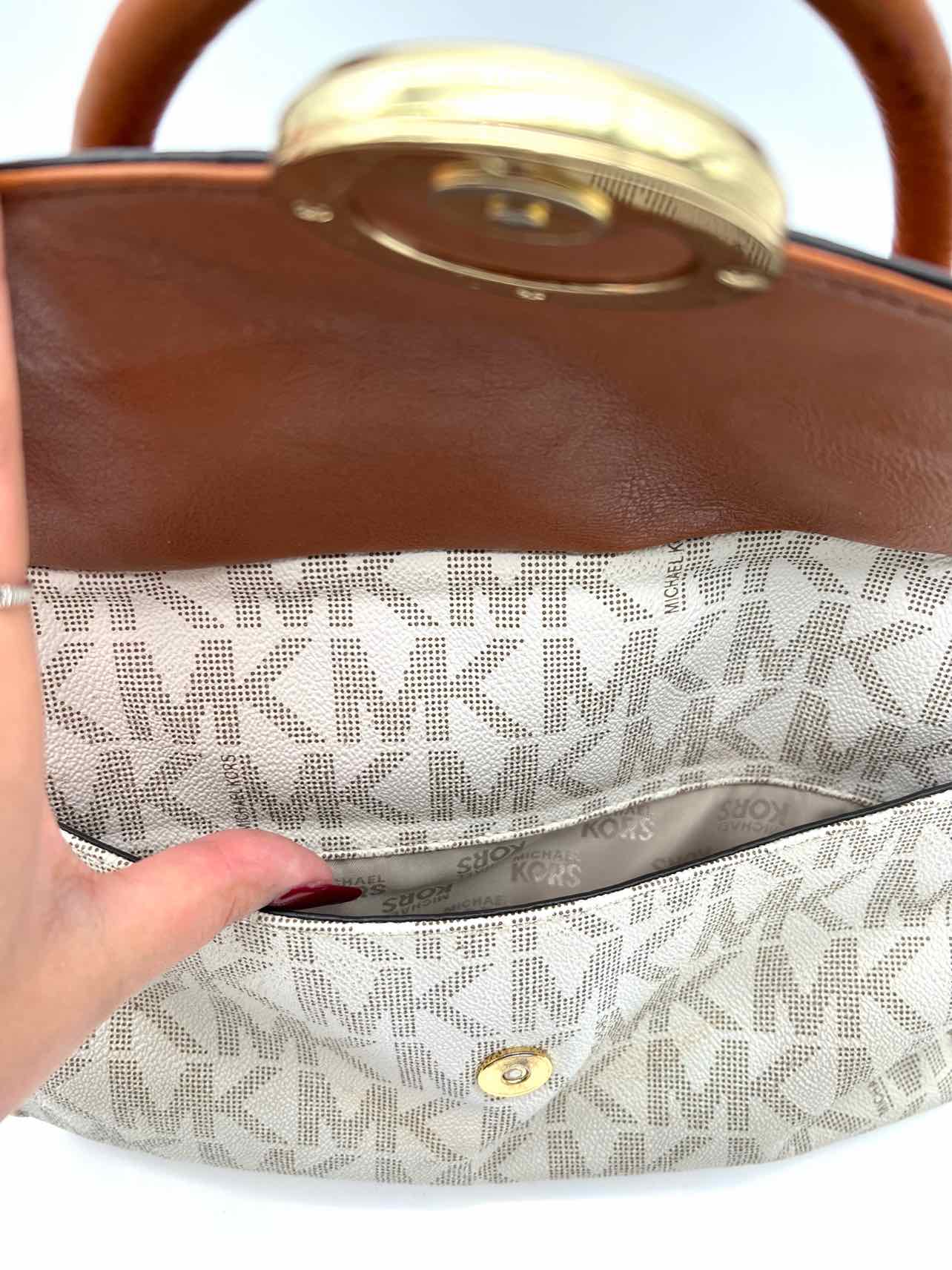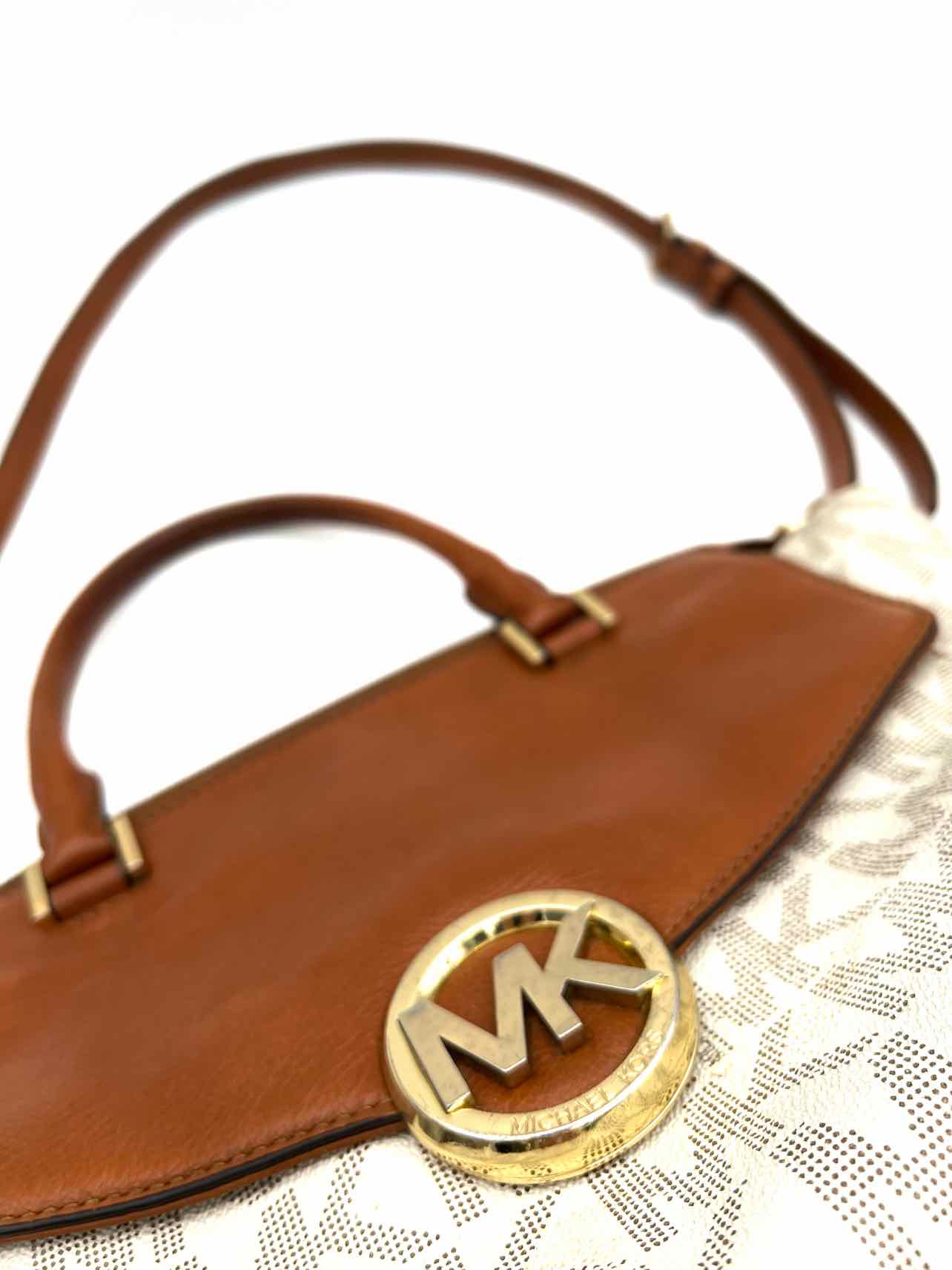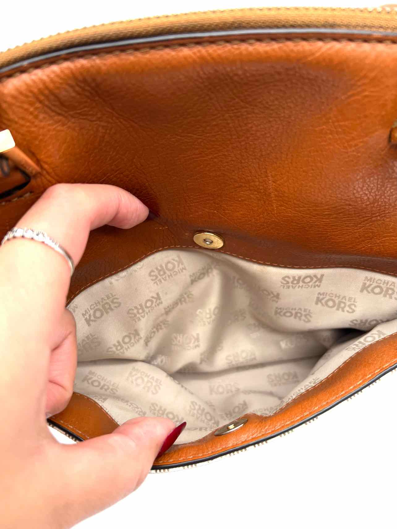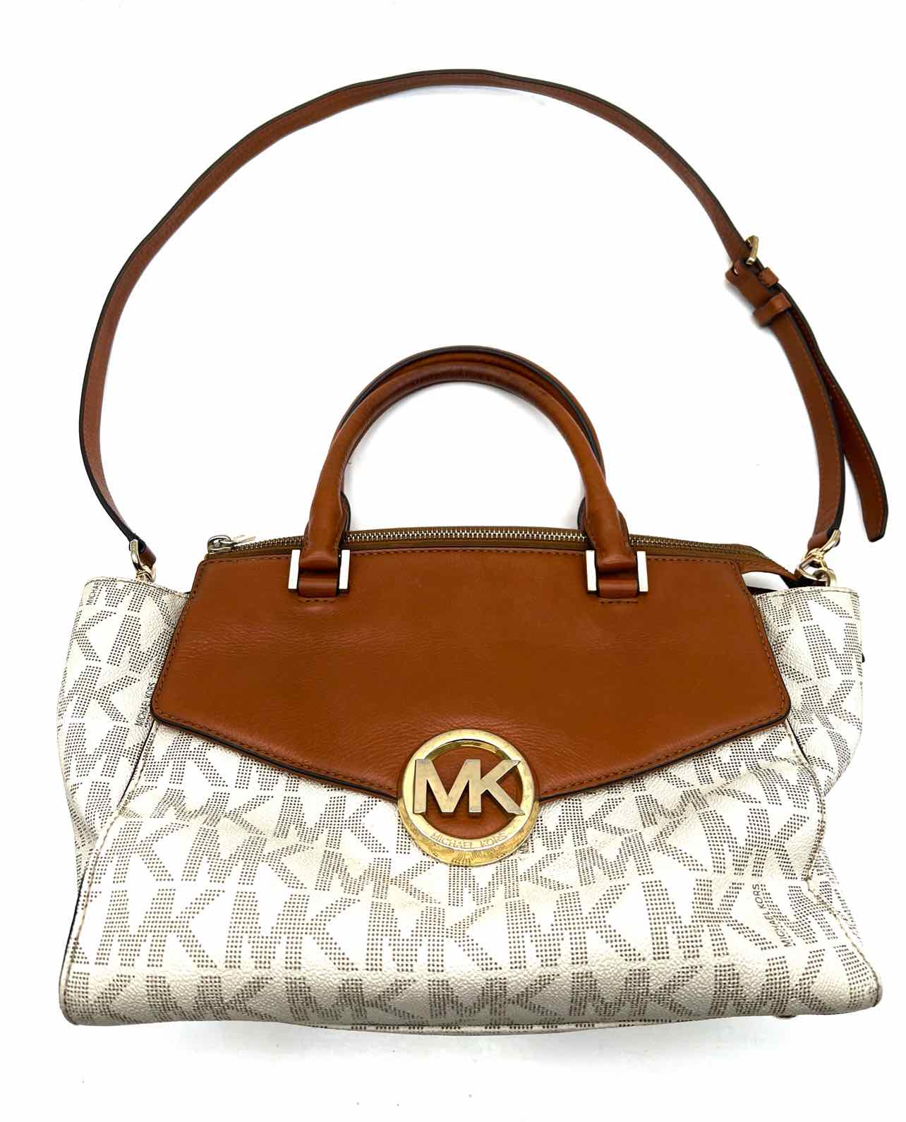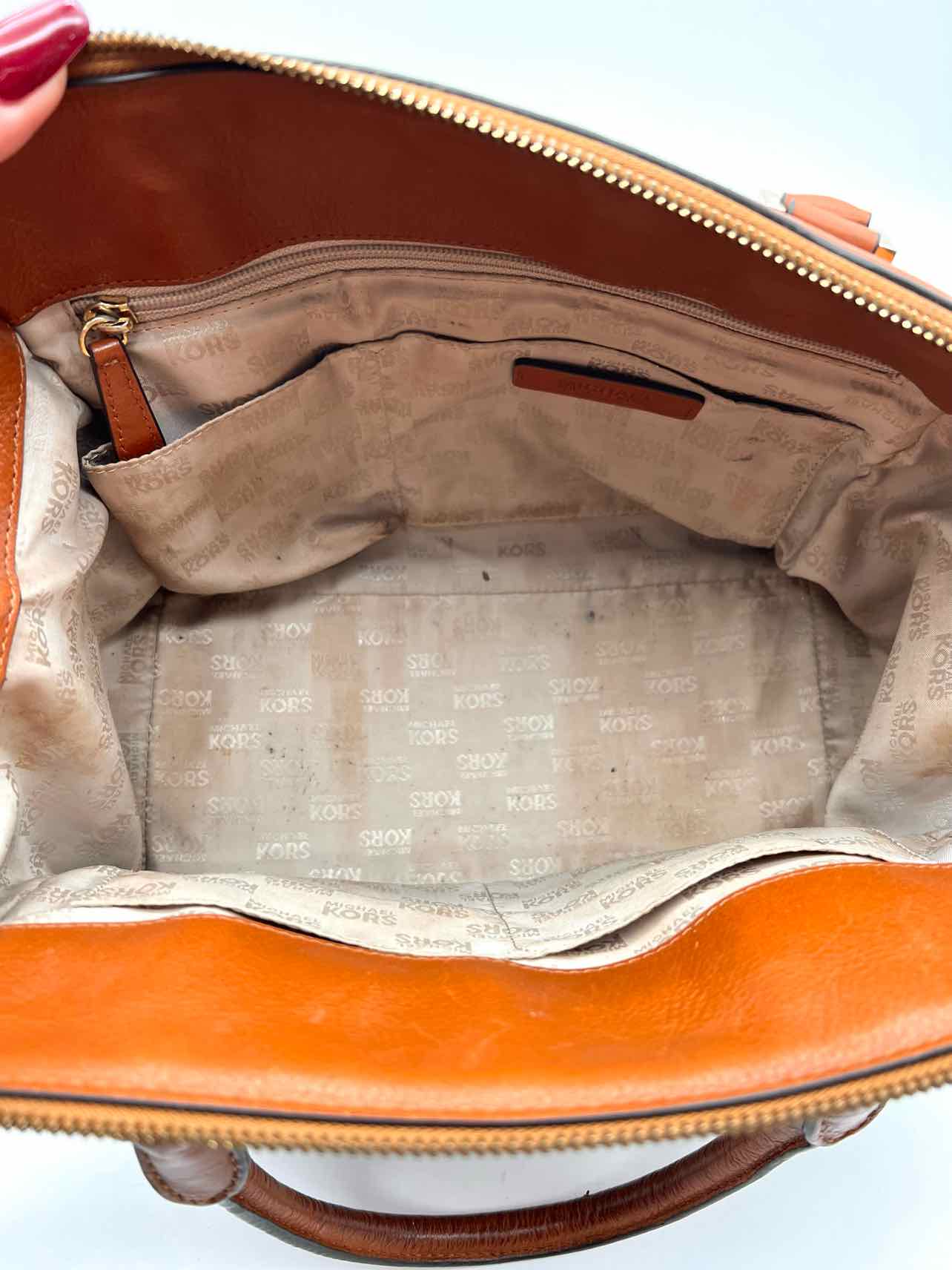 Michael Michael Kors Tan/White Signature Leather Designer Satchel
