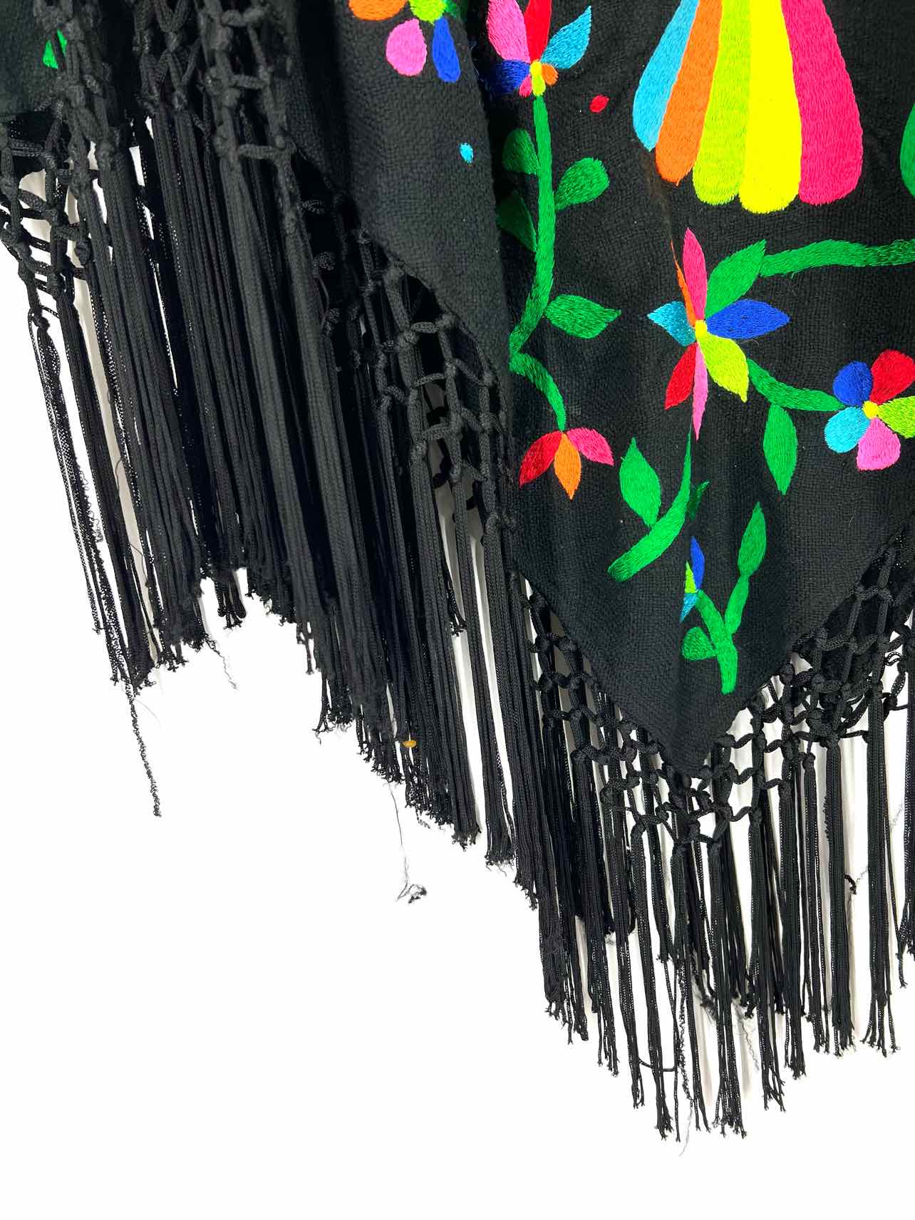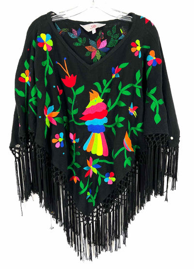 Roja Size M/L Black/Multi Floral Embroidered Designer Poncho