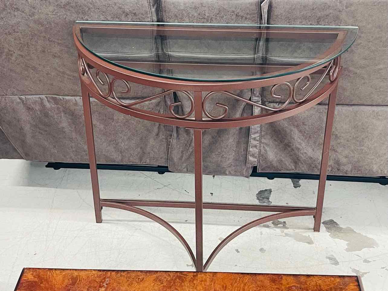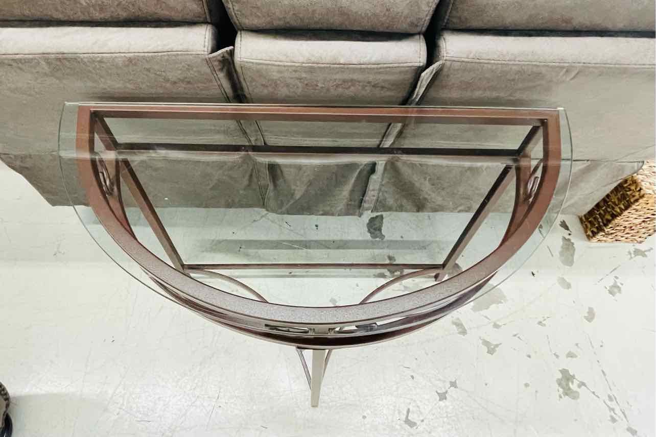Brown Metal/Glass Half-Circle Furniture Entry Table