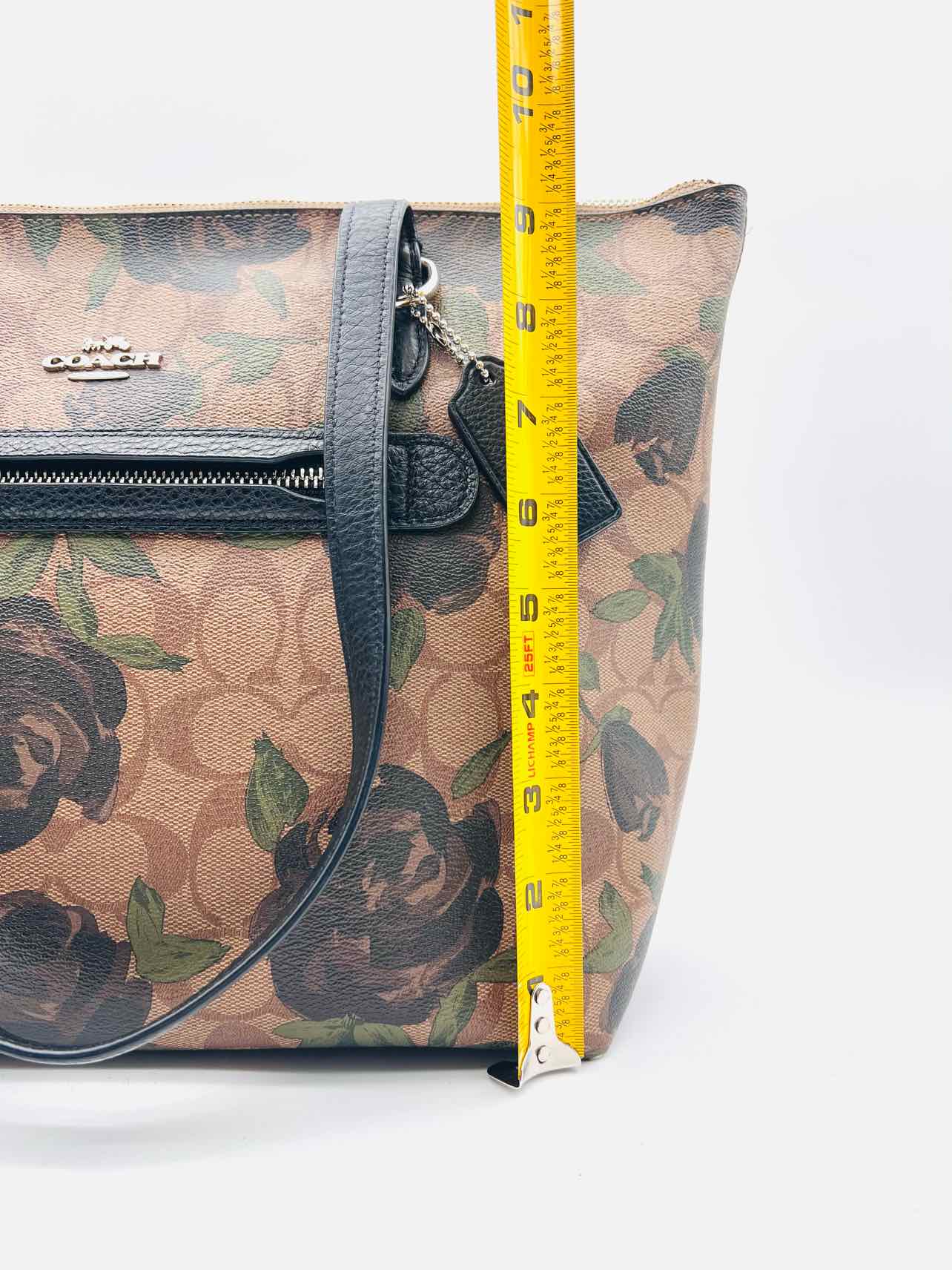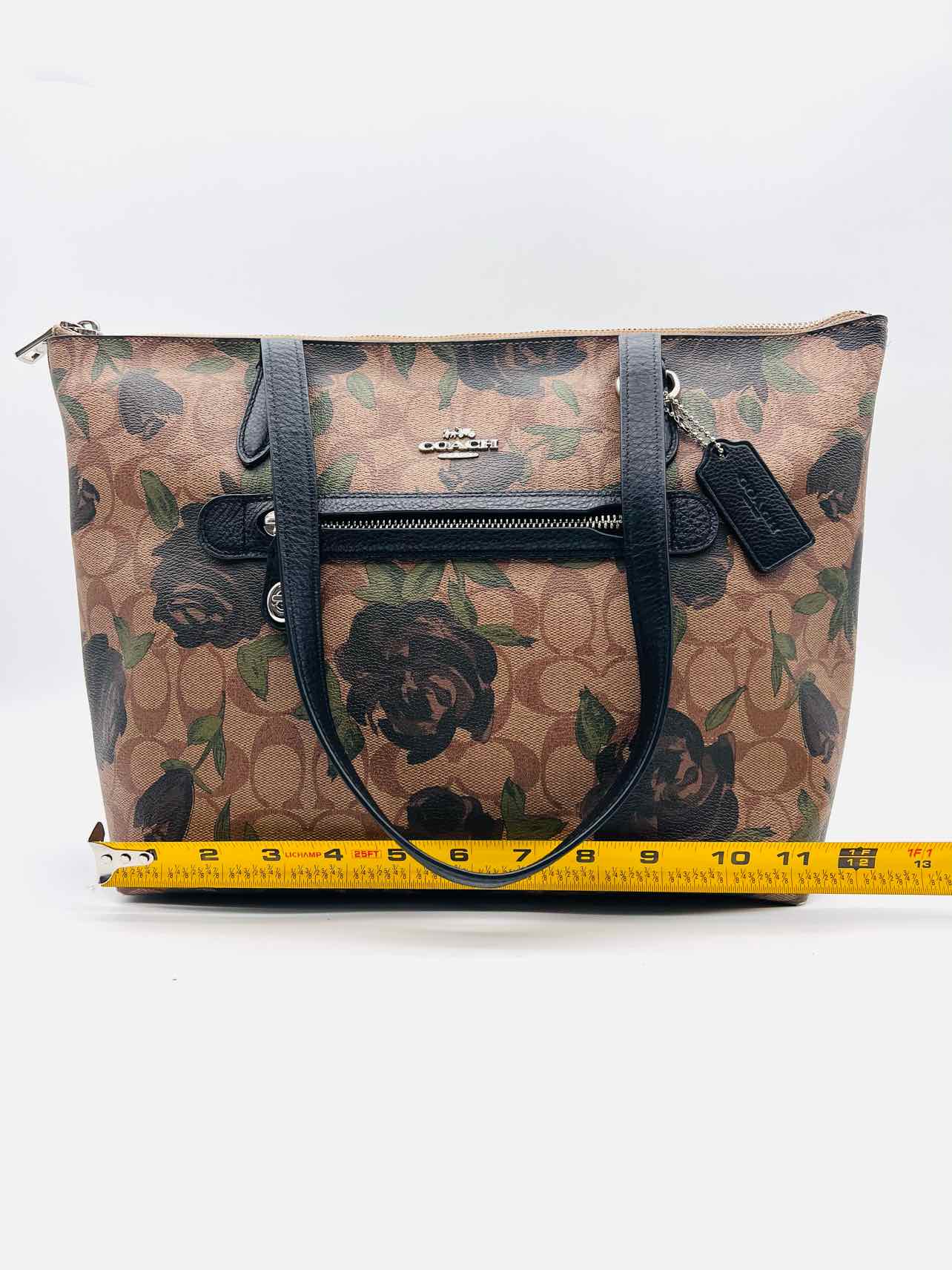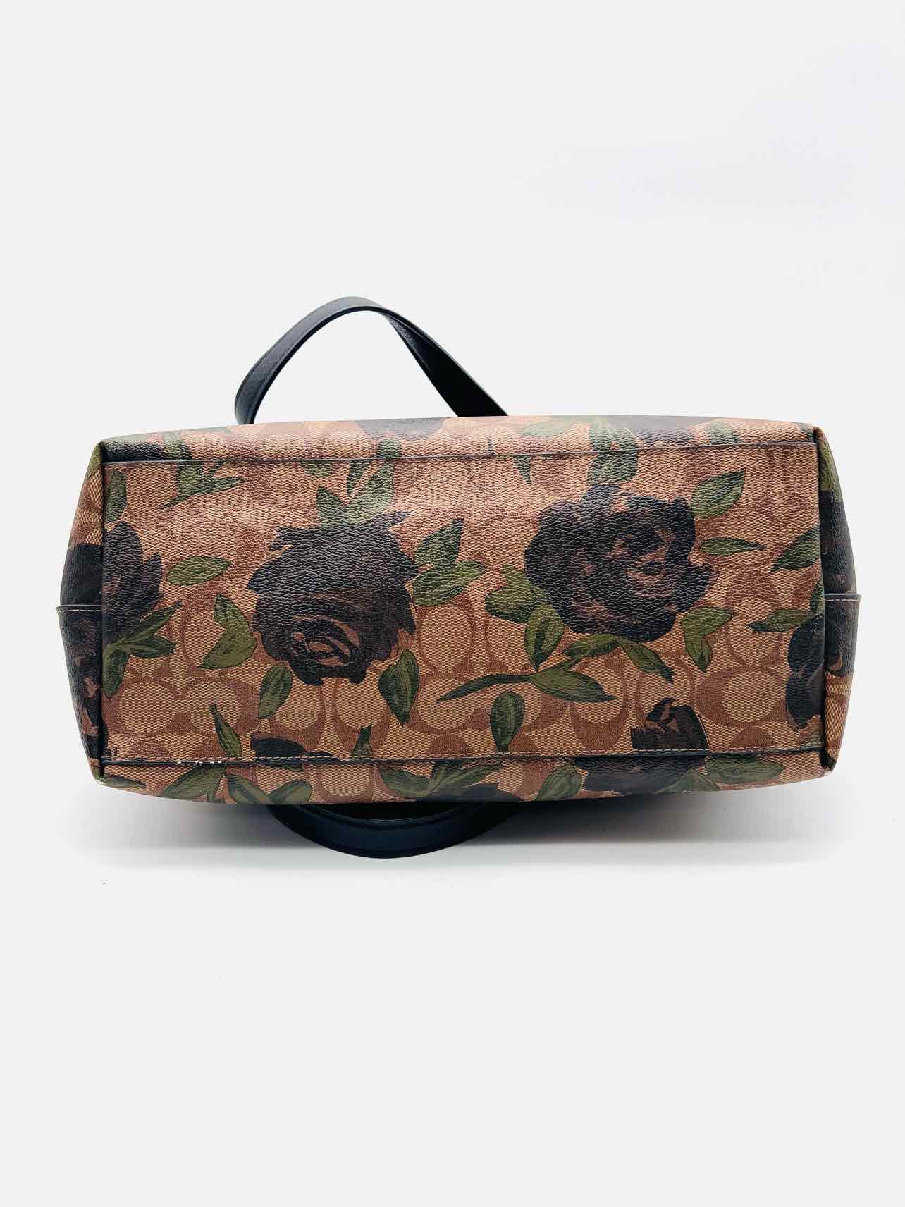 Coach Br/Bk/Gr Shoulder Bag Floral Leather Designer Tote