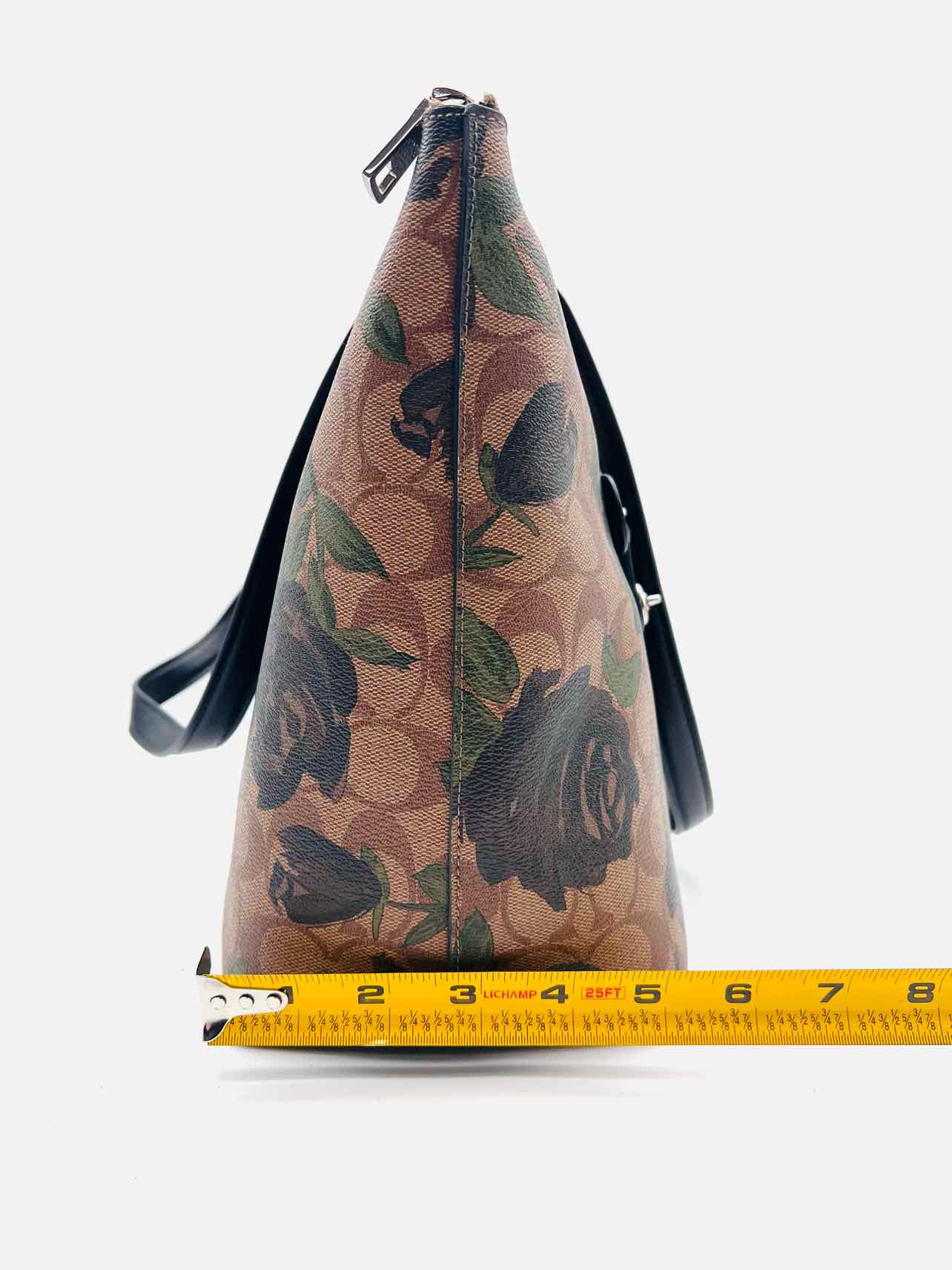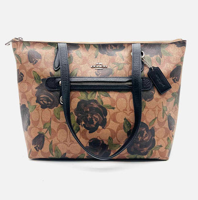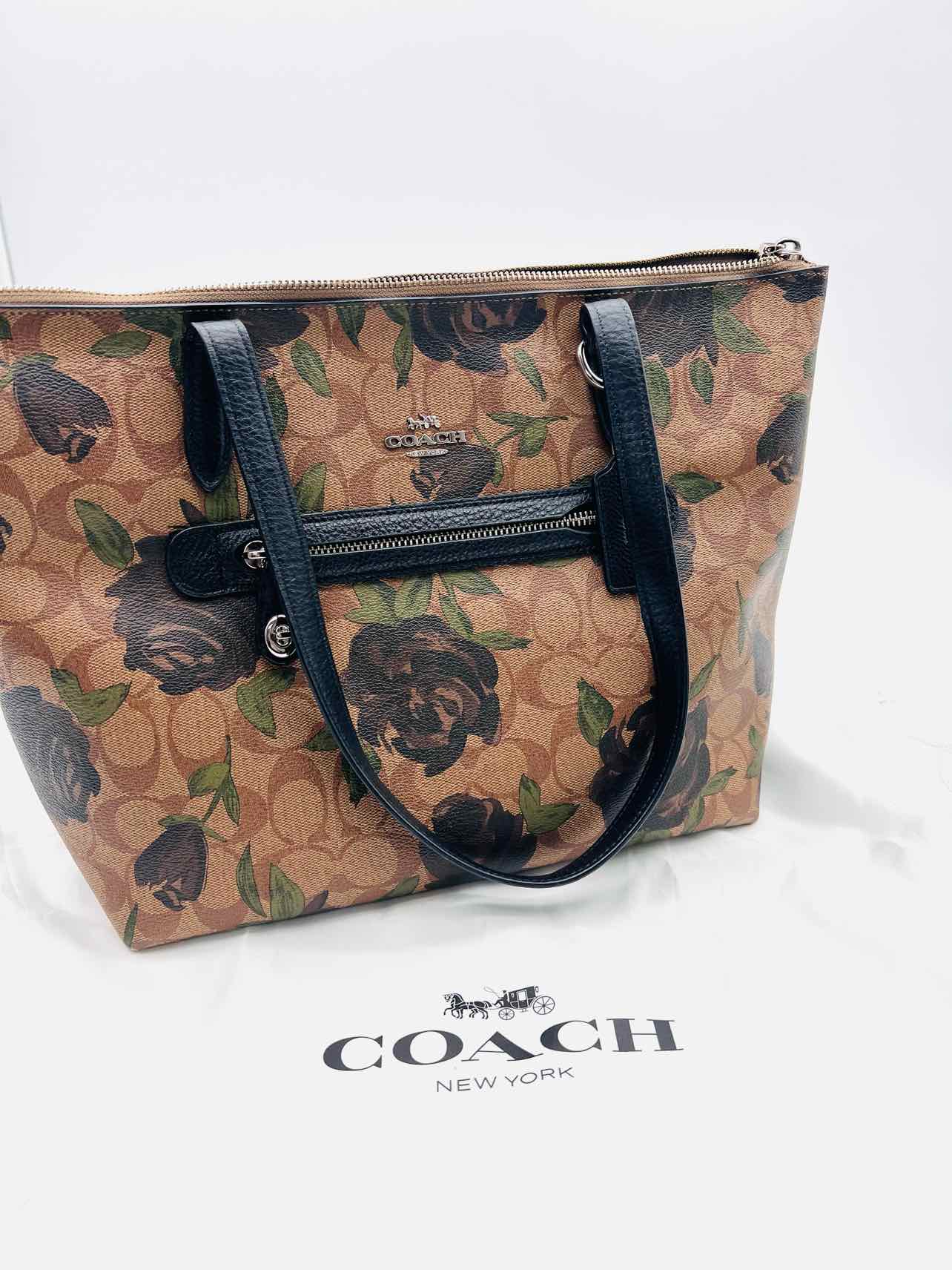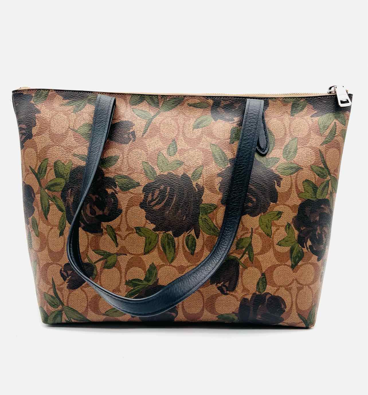 Coach Br/Bk/Gr Shoulder Bag Floral Leather Designer Tote