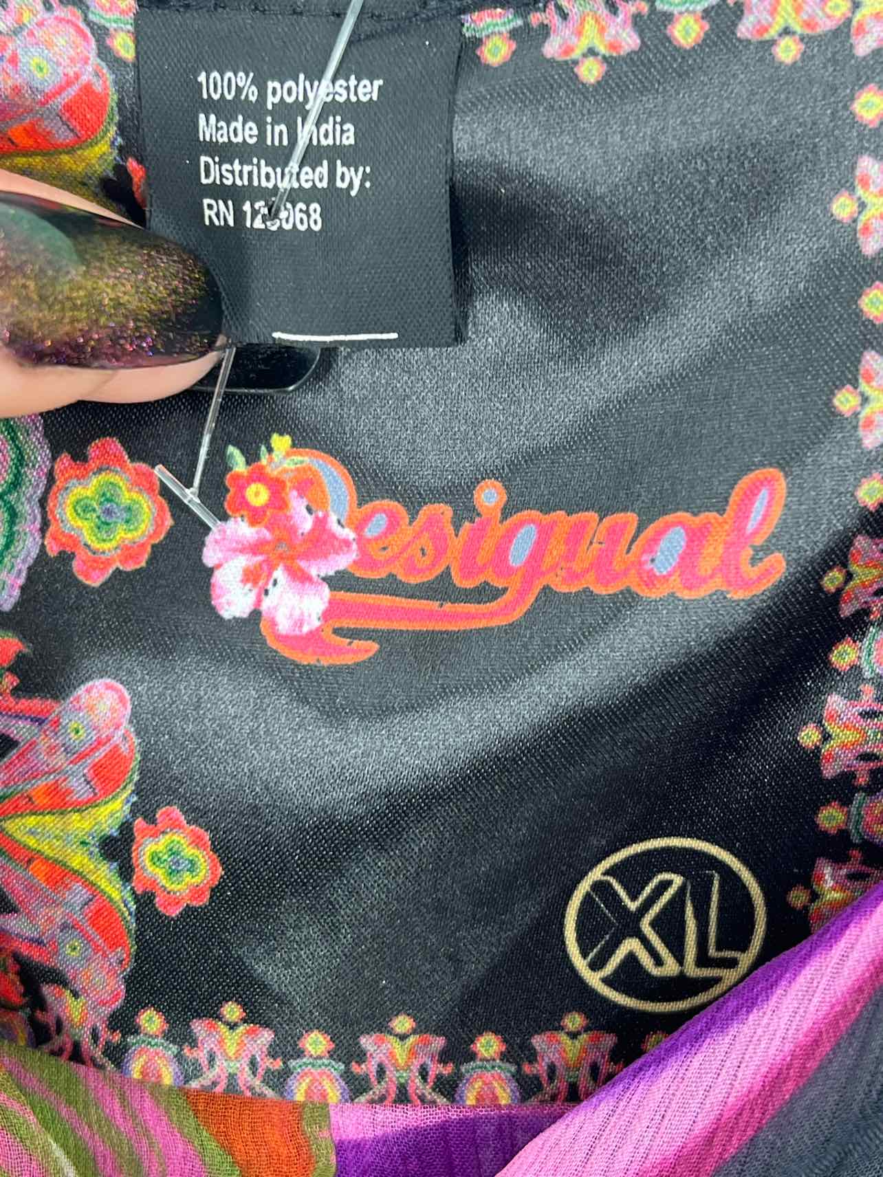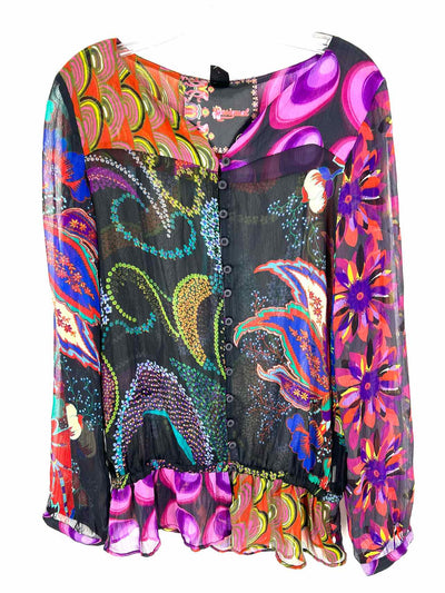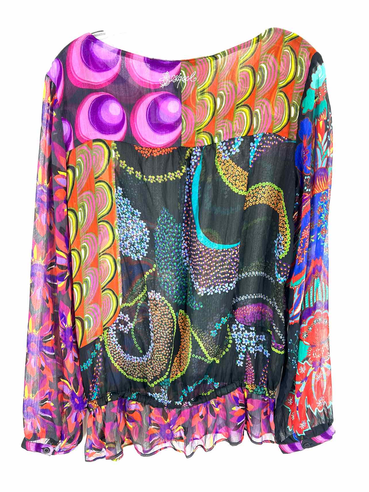 Desigual Size XL Black/Multi Floral Sheer Designer Blouse