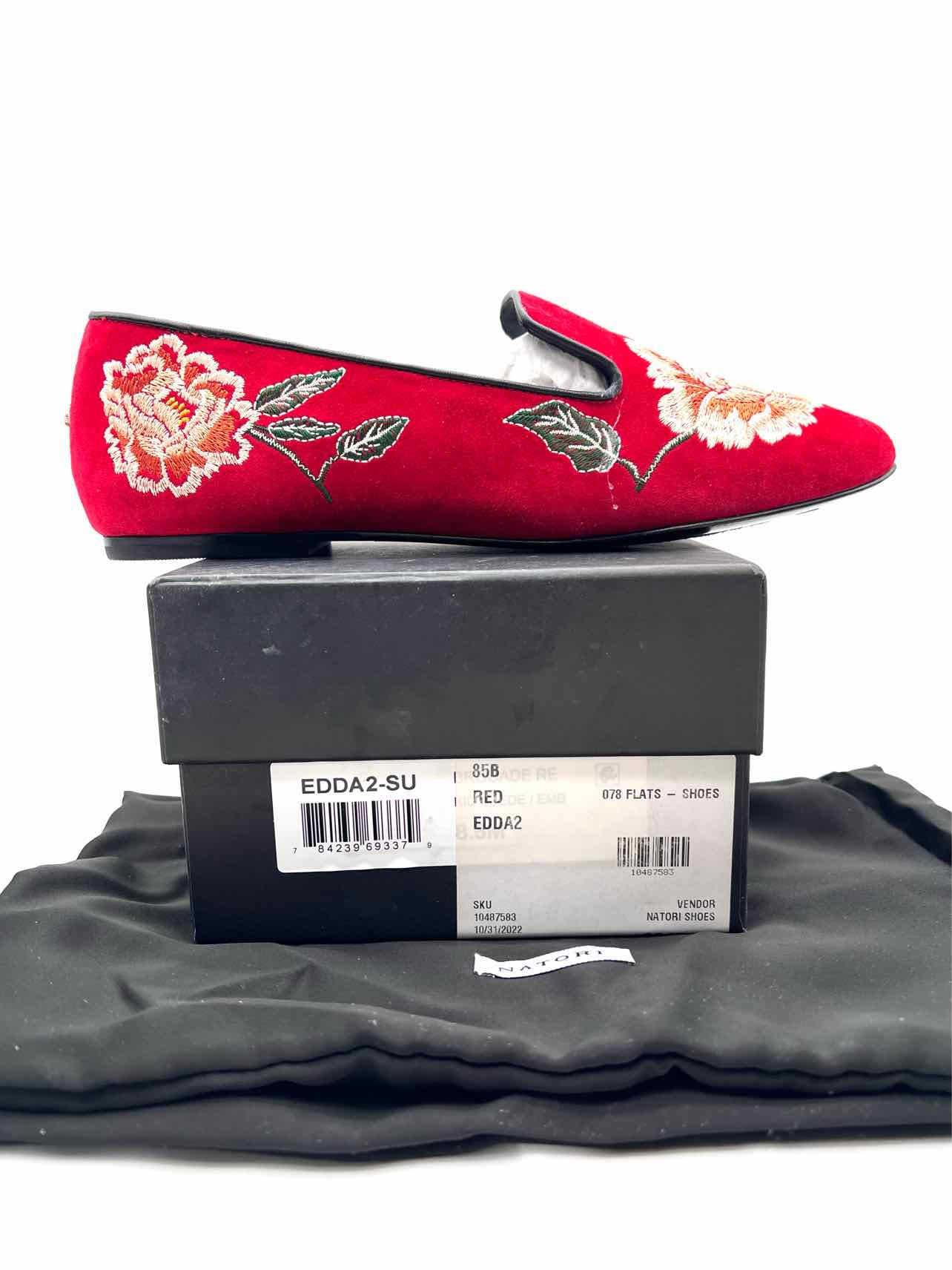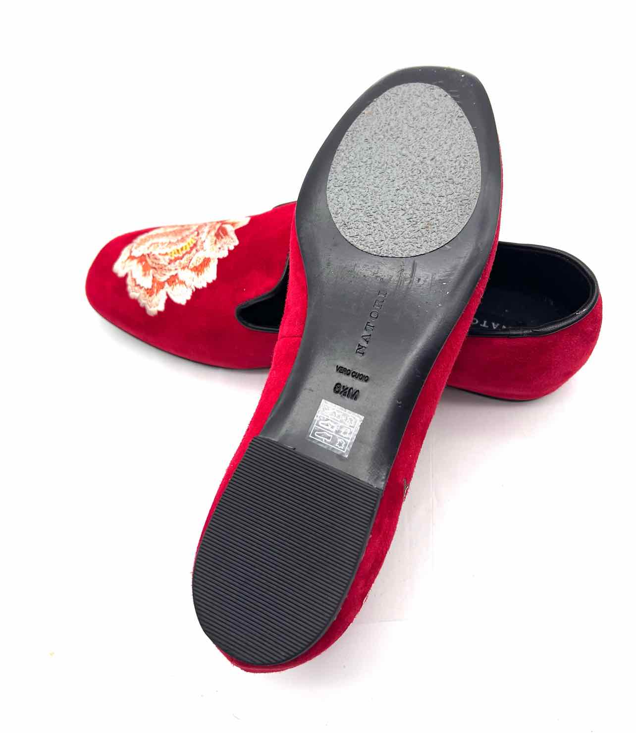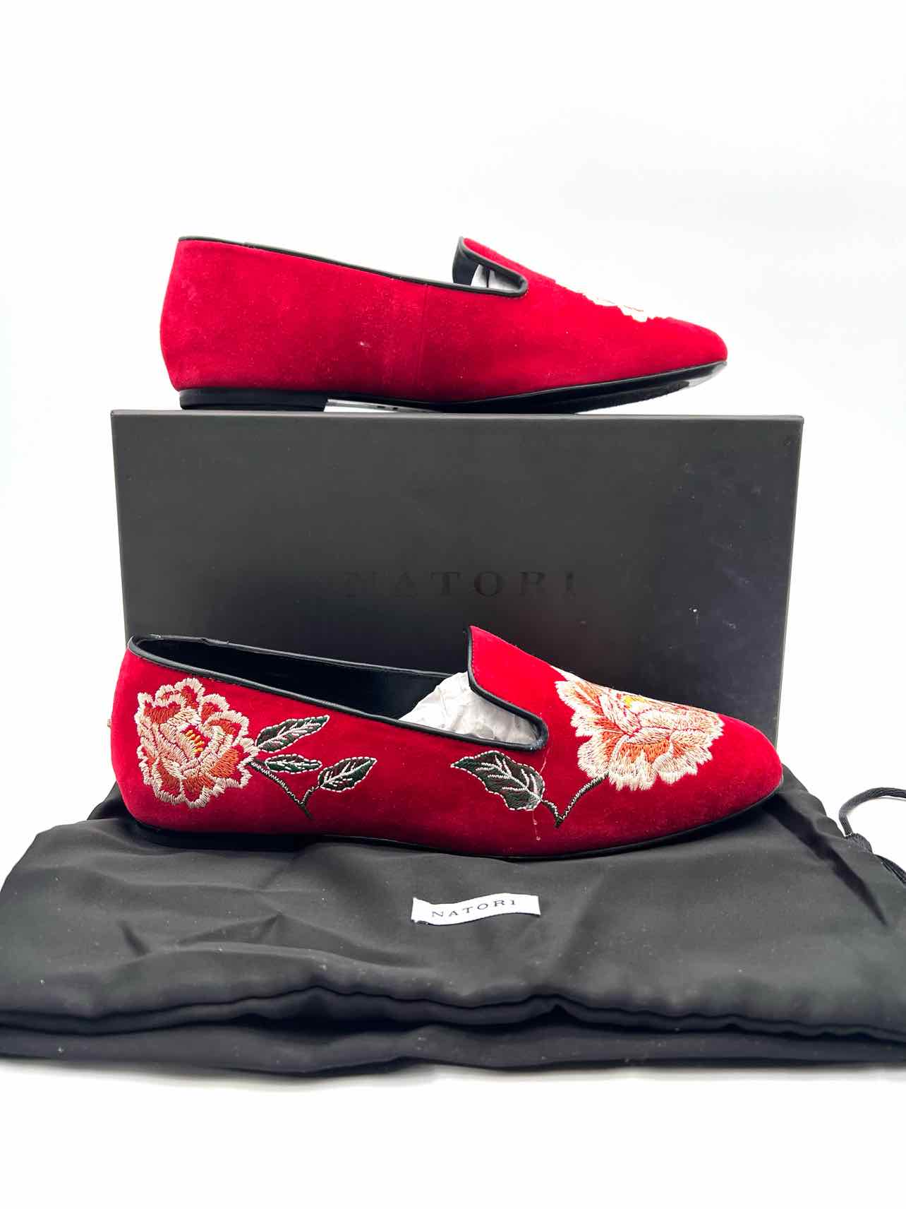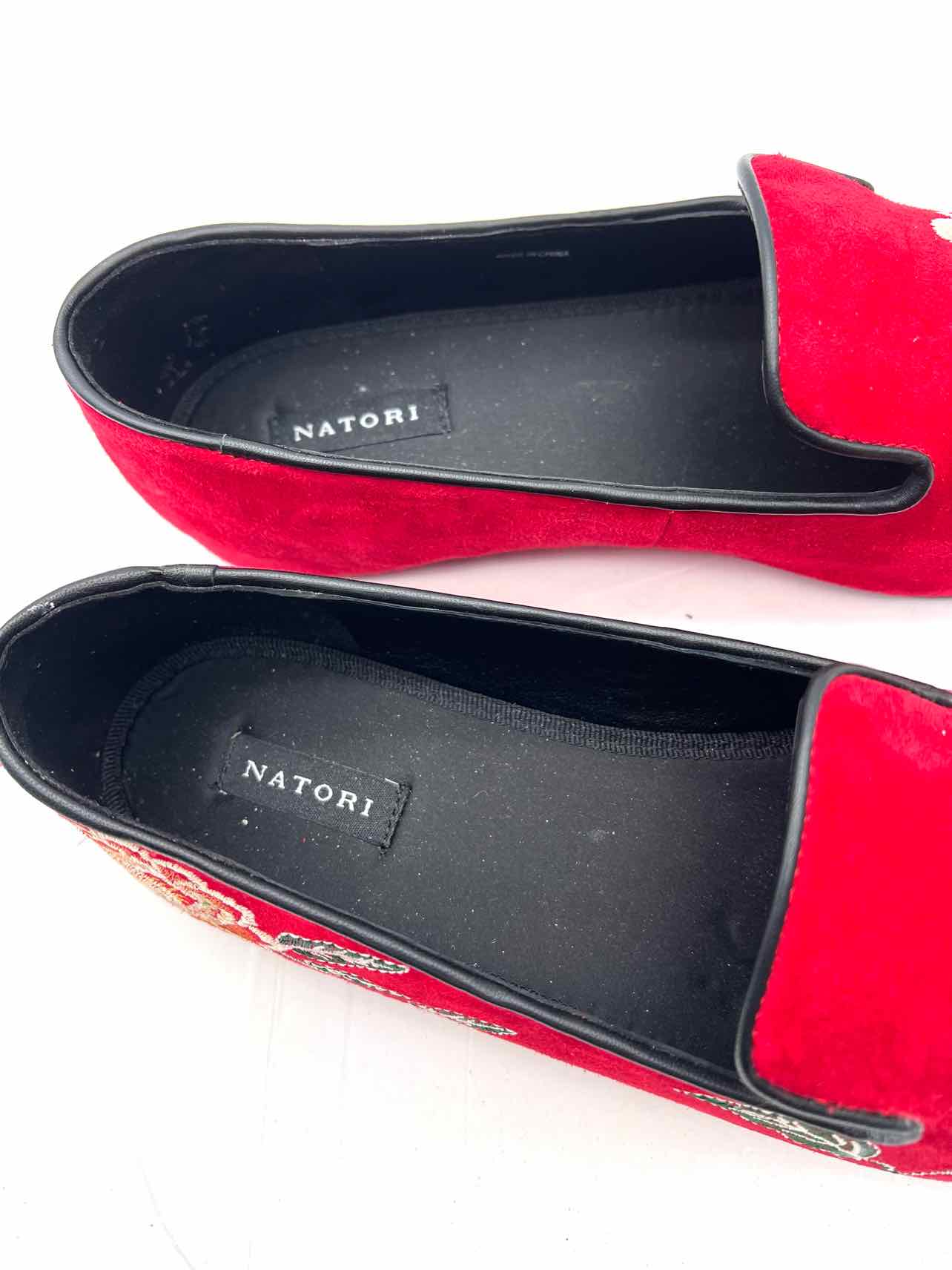Natori Size 8.5 Red/Beige Embroidered Suede W/ BOX!!! Shoes Loafers