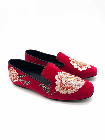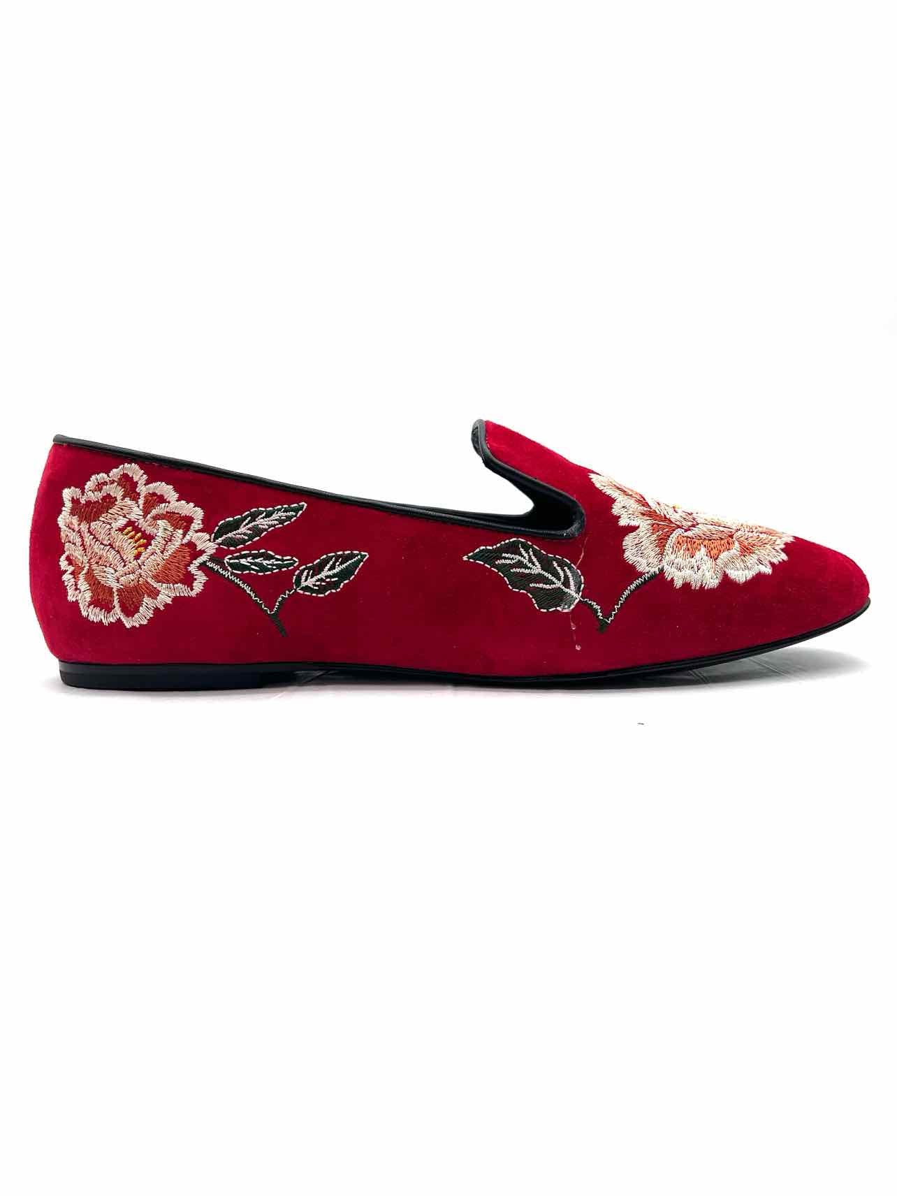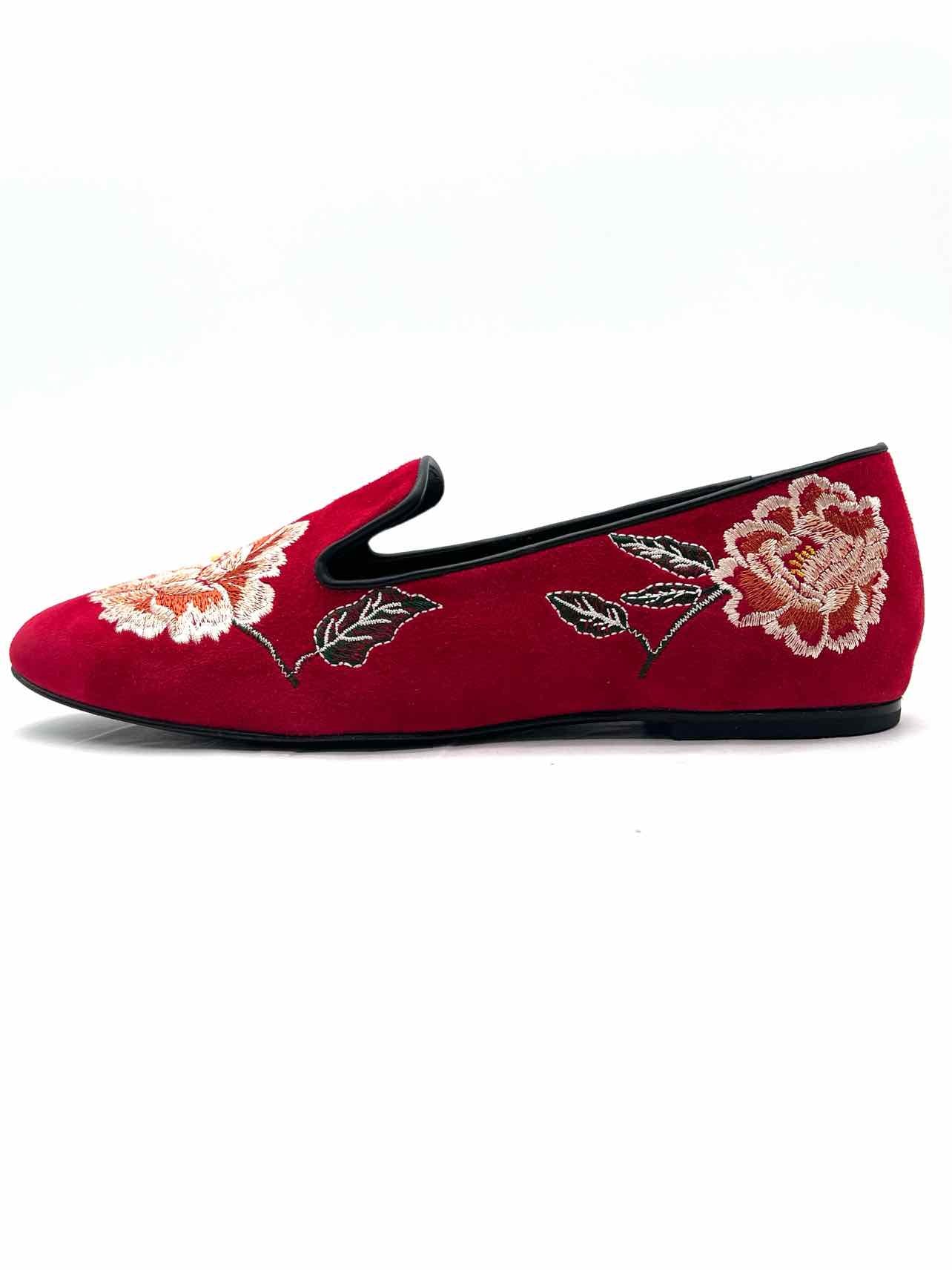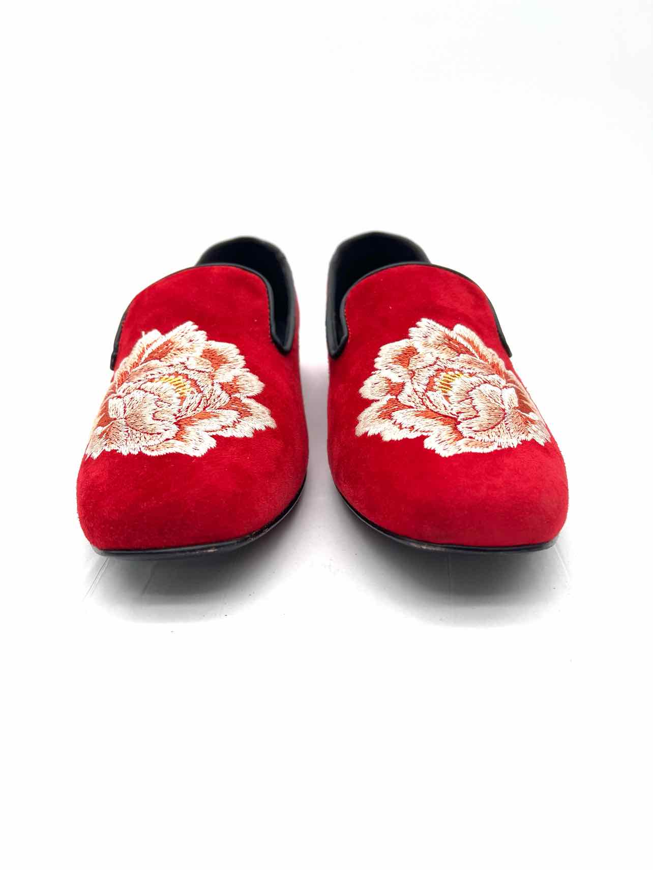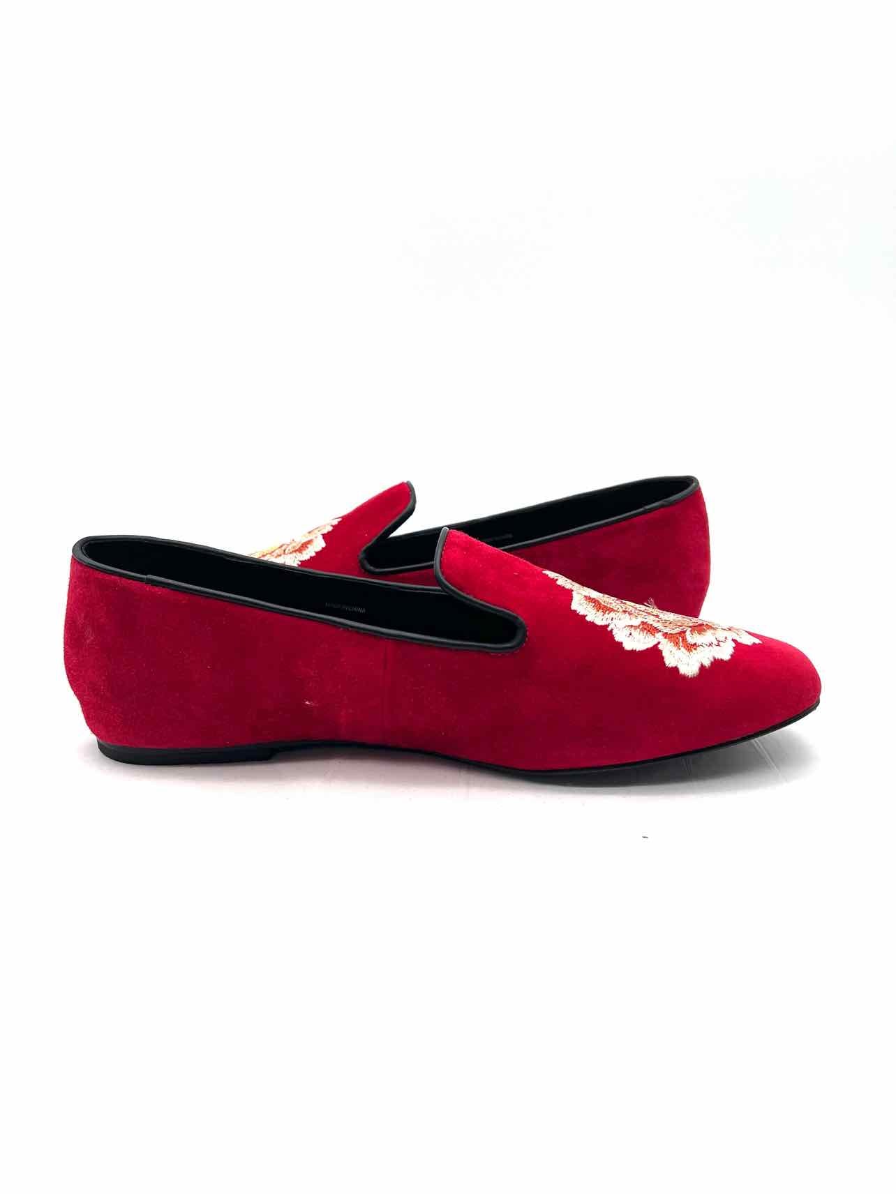 Natori Size 8.5 Red/Beige Embroidered Suede W/ BOX!!! Shoes Loafers