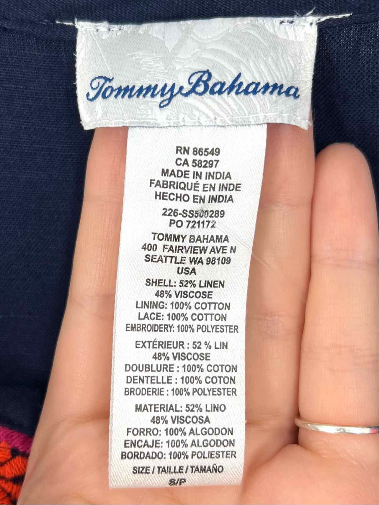 Tommy Bahama Size S Navy/Multi Embroidered Linen Blend Dresses Dress
