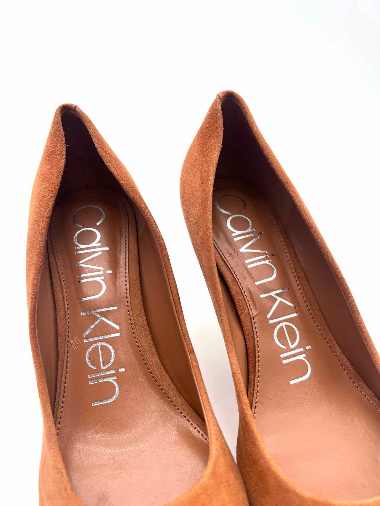 Calvin Klein Size 9.5 Cognac Solid Suede Shoes Pumps