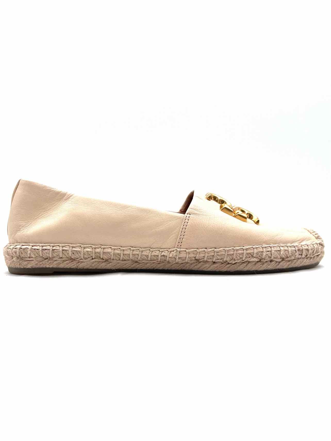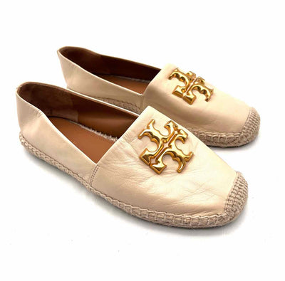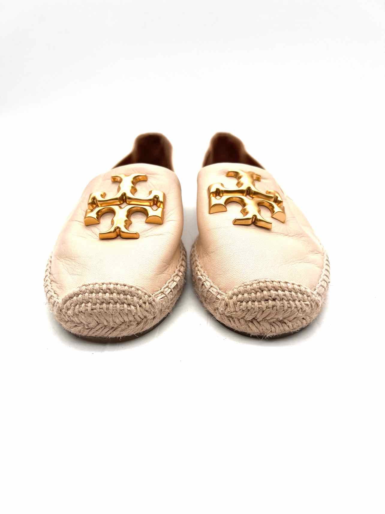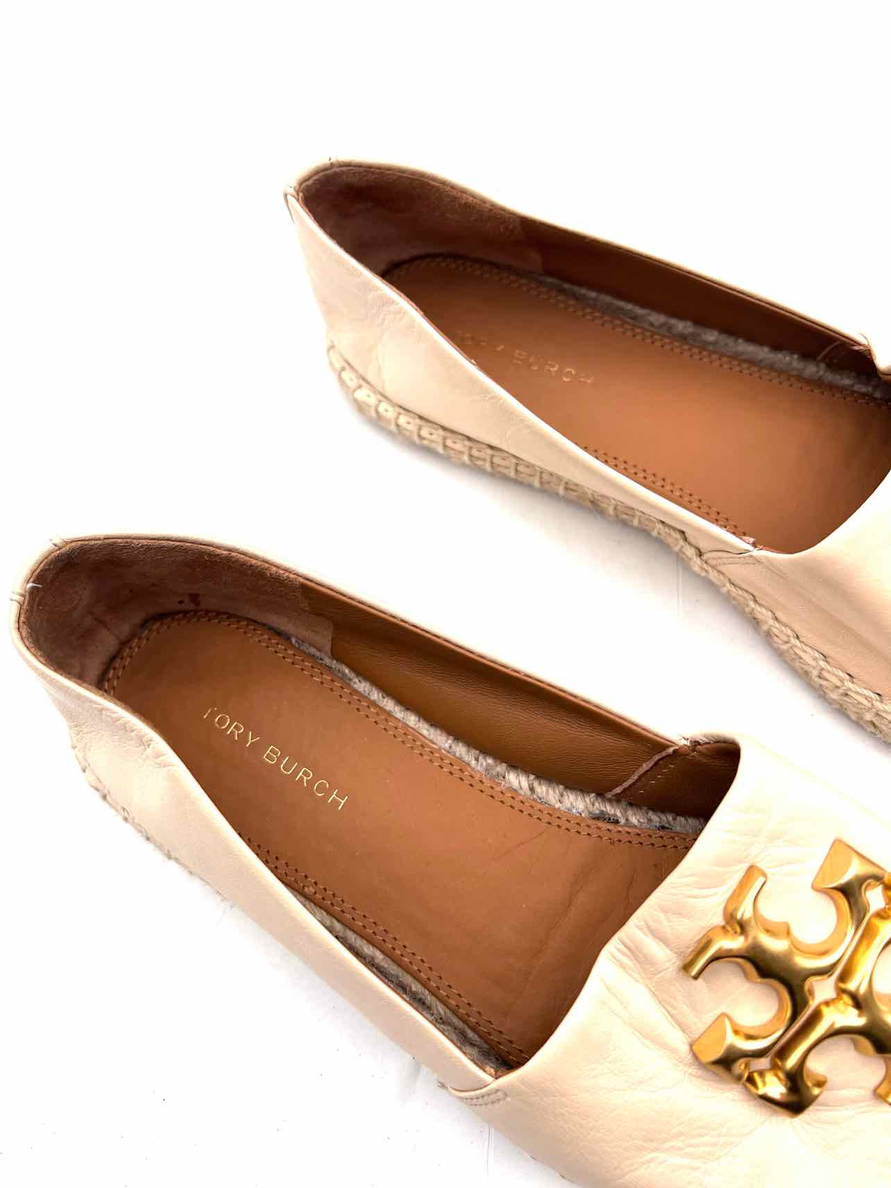Tory Burch Size 6 Beige/Gold Embellished Leather Designer Espadrilles