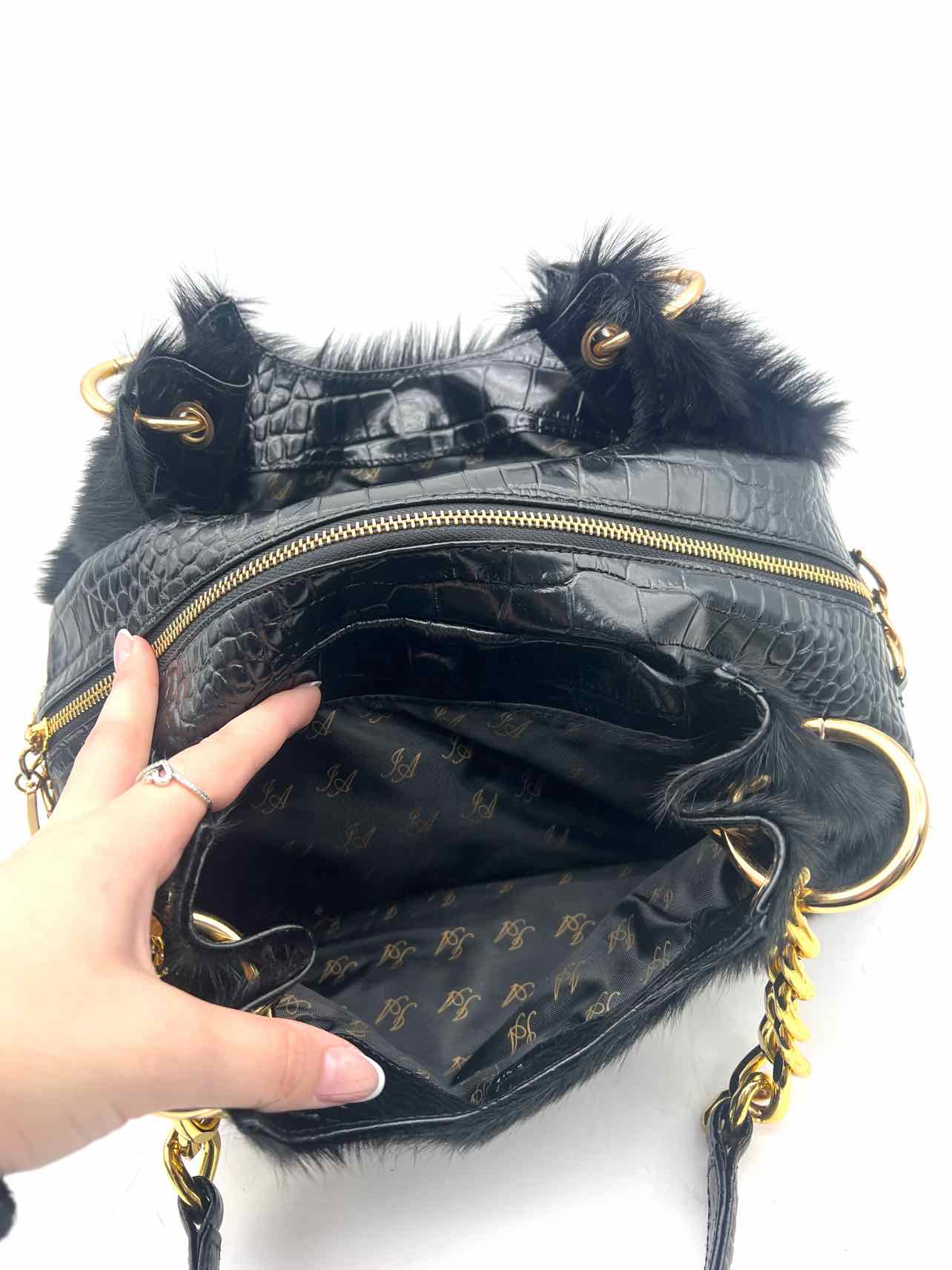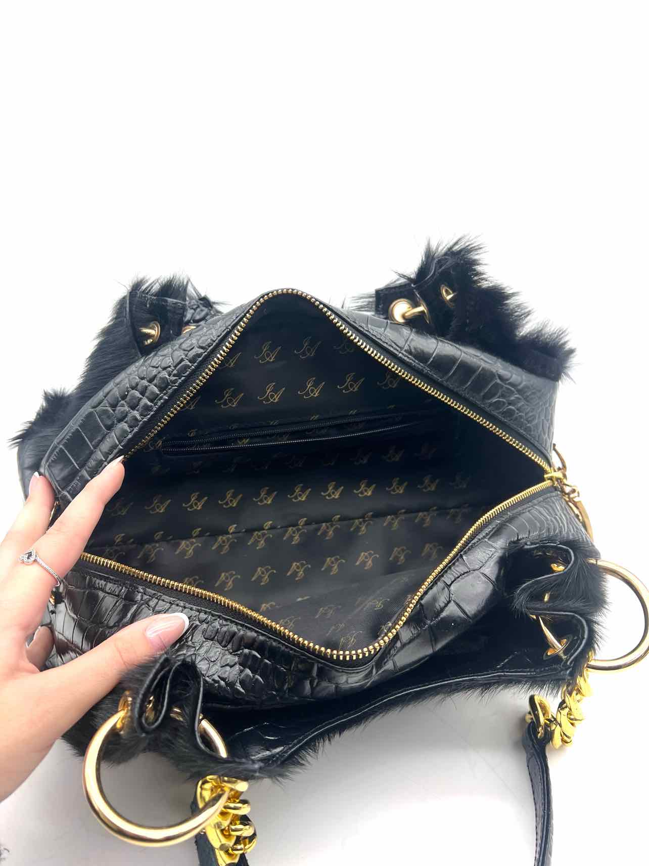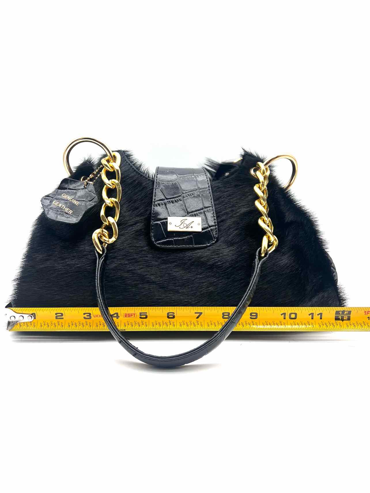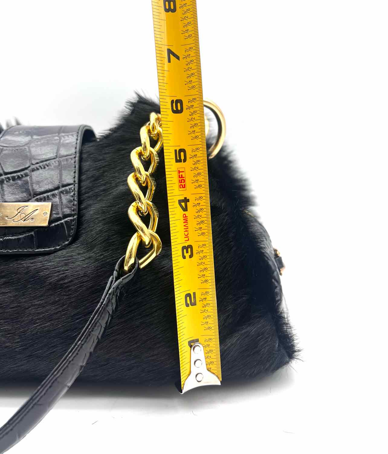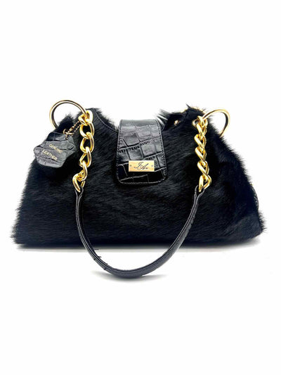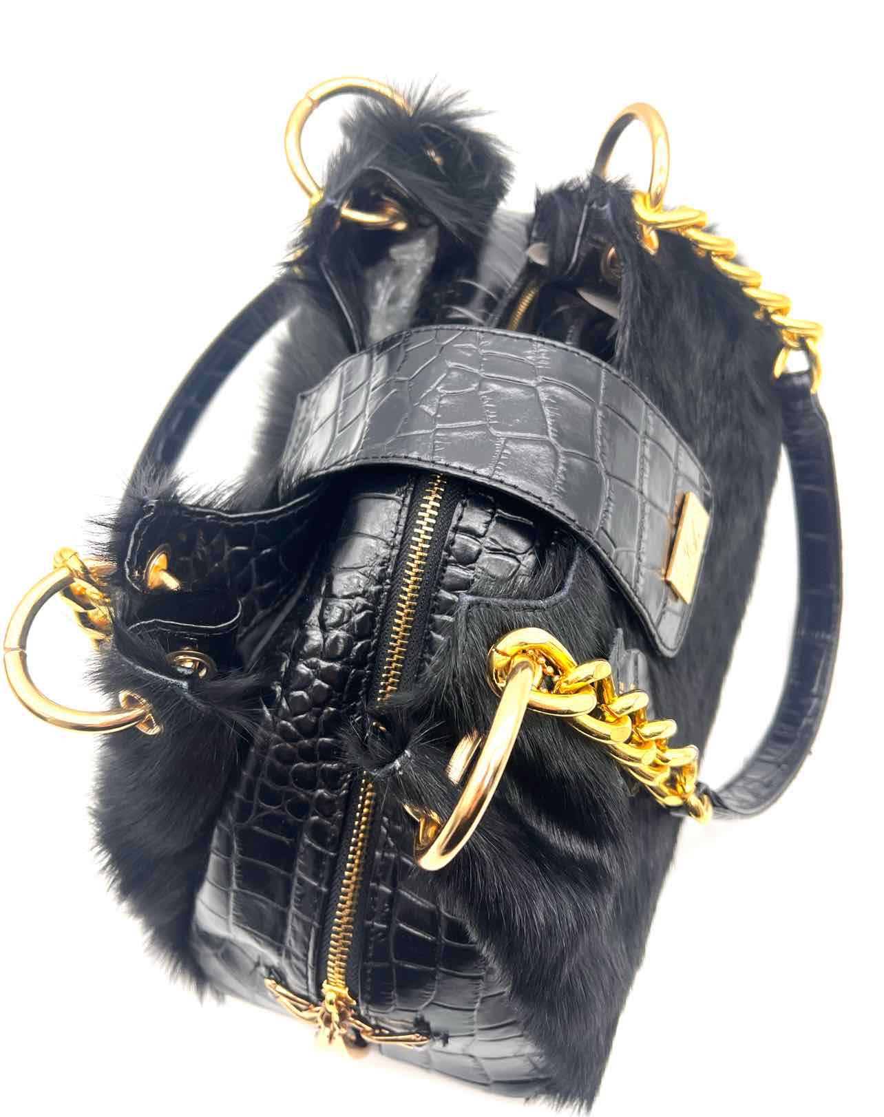 Isabella Adams Black/Gold Zipper Leather/Fur Designer Purse