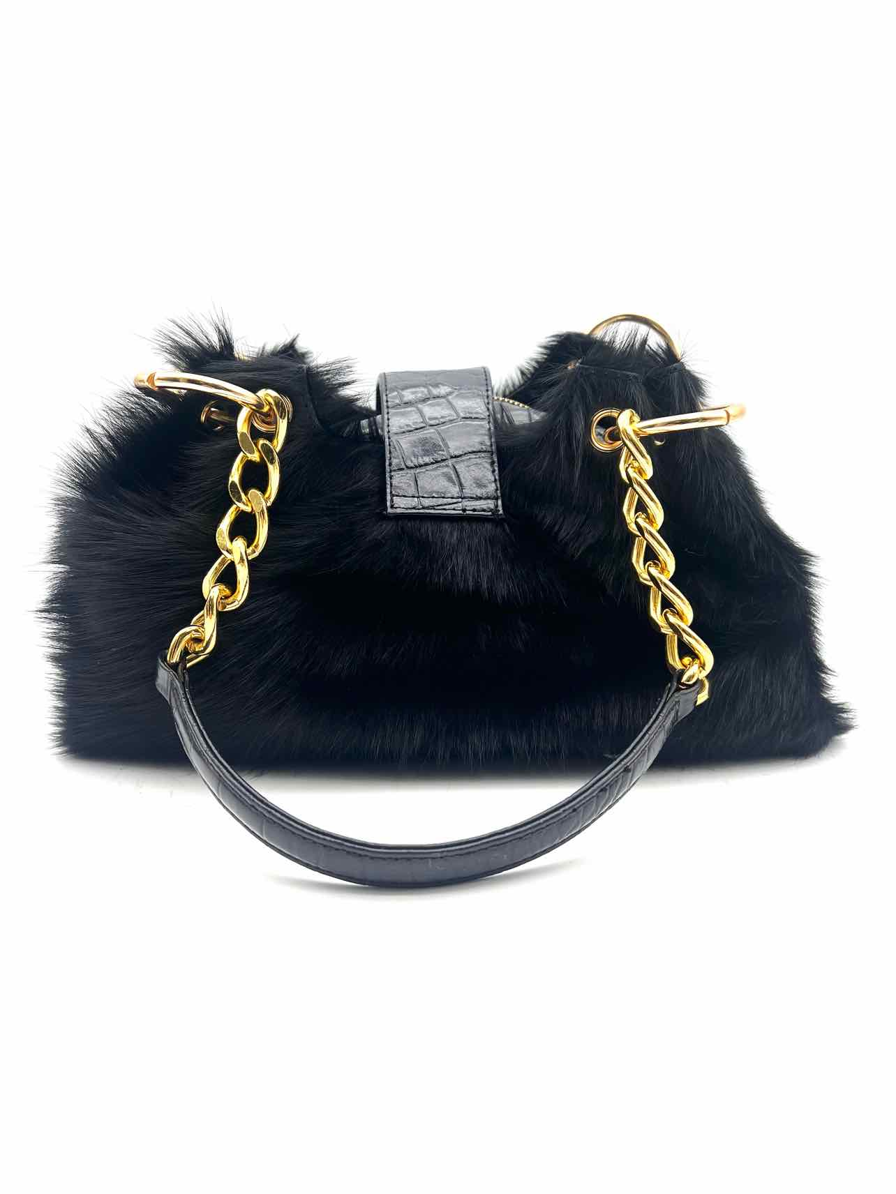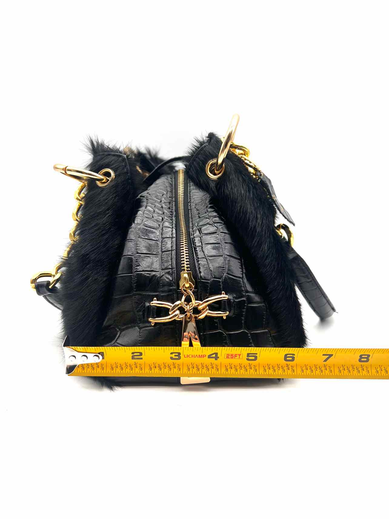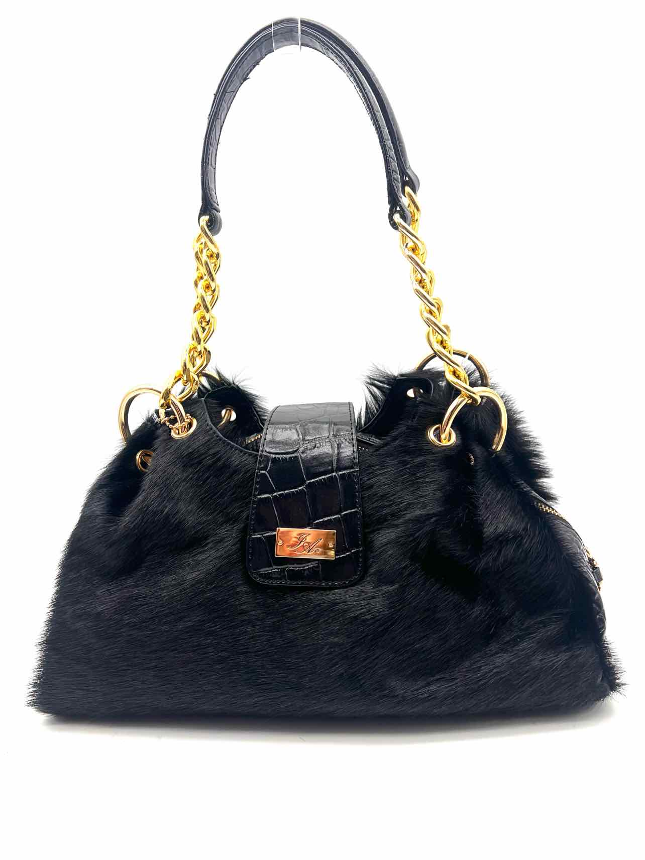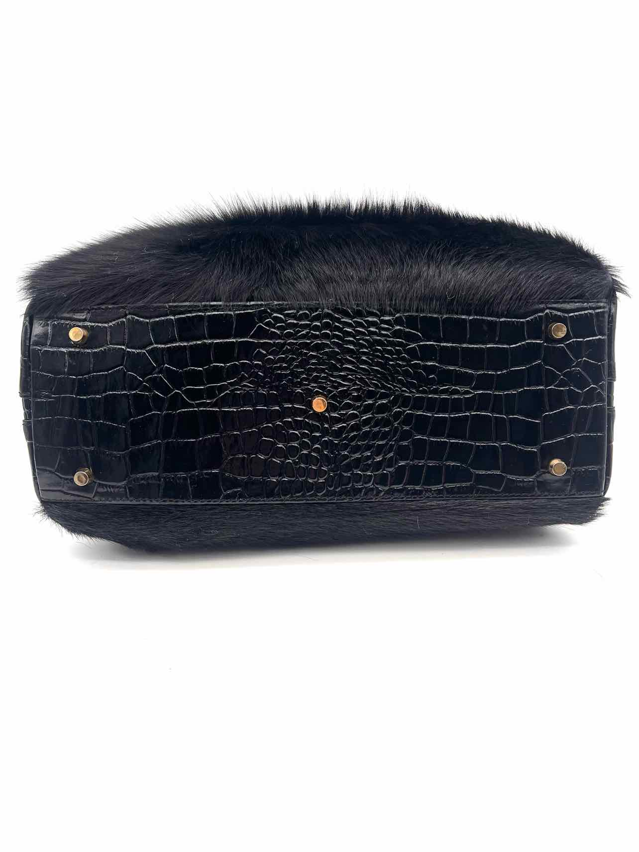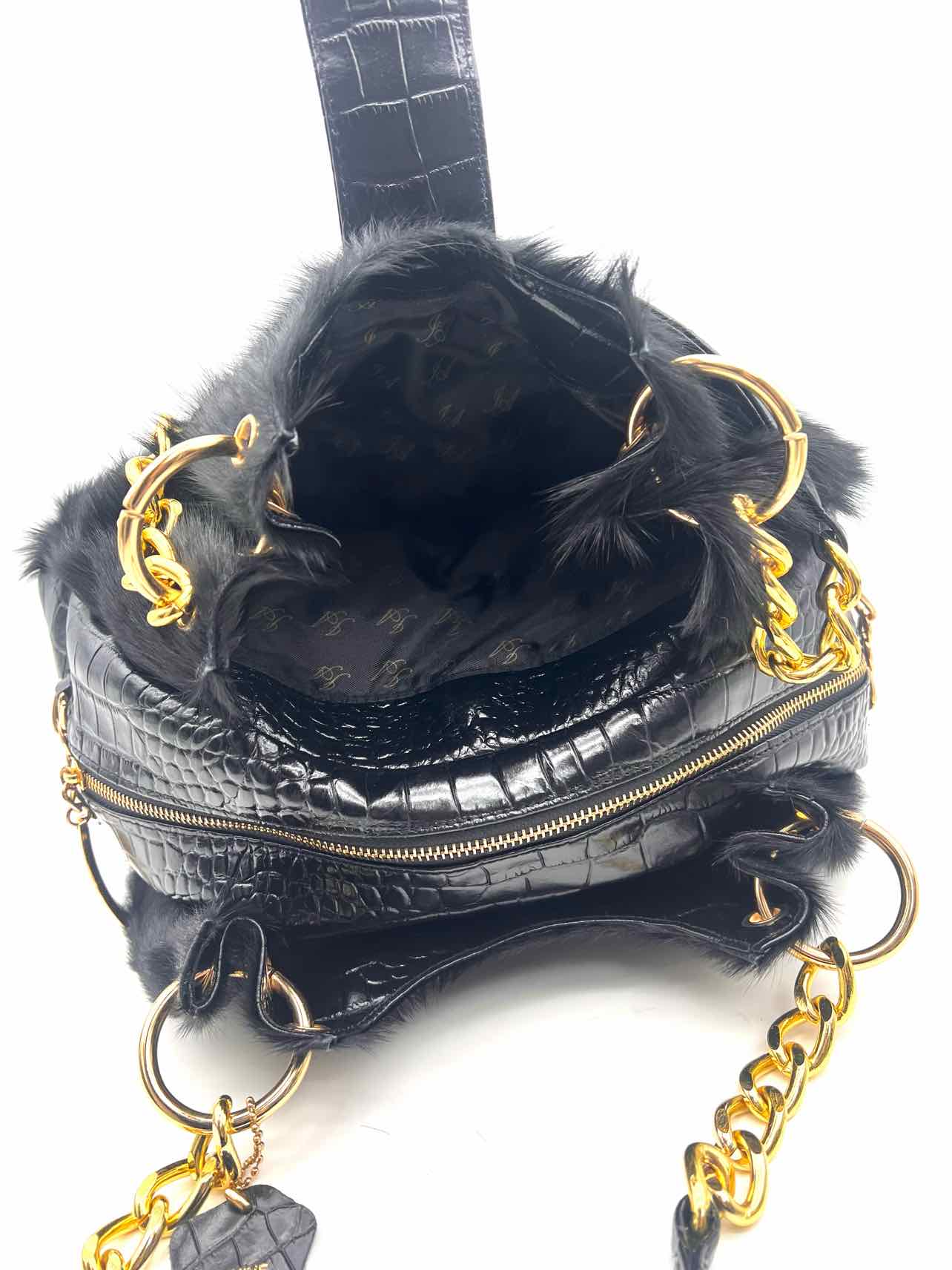Isabella Adams Black/Gold Zipper Leather/Fur Designer Purse