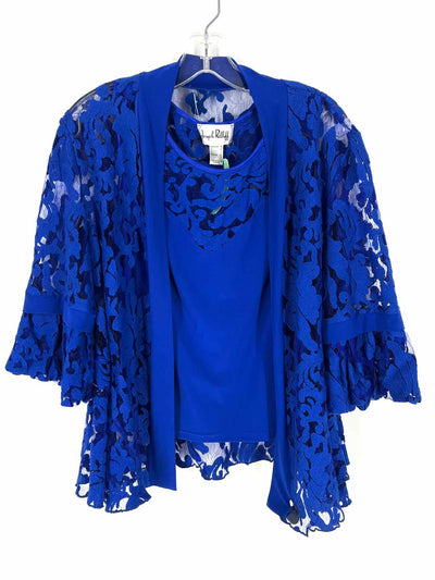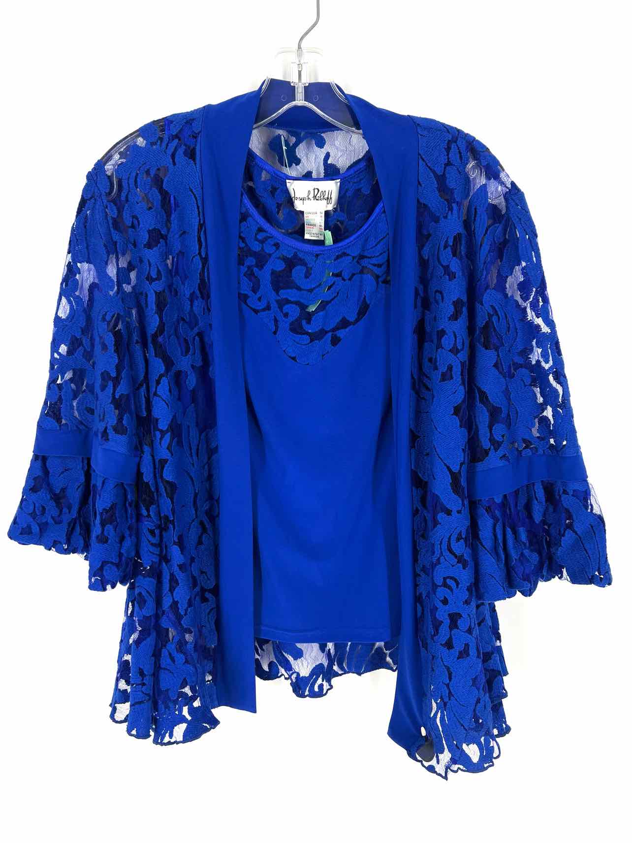 Joseph Ribkoff Size 14 Royal Blue Lace Blocked Designer Cardigan Set