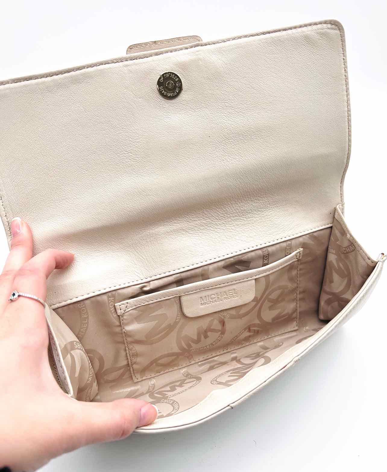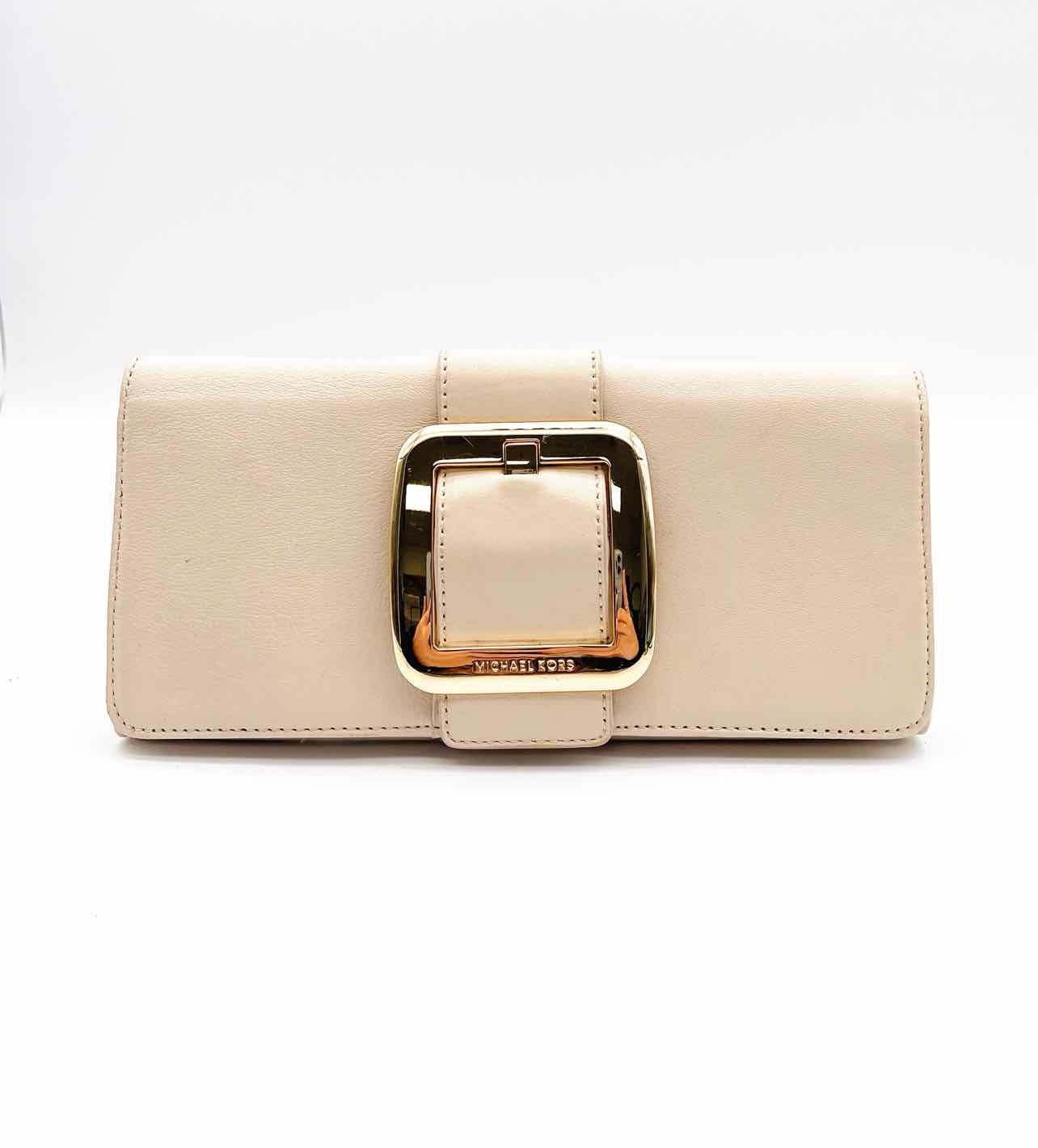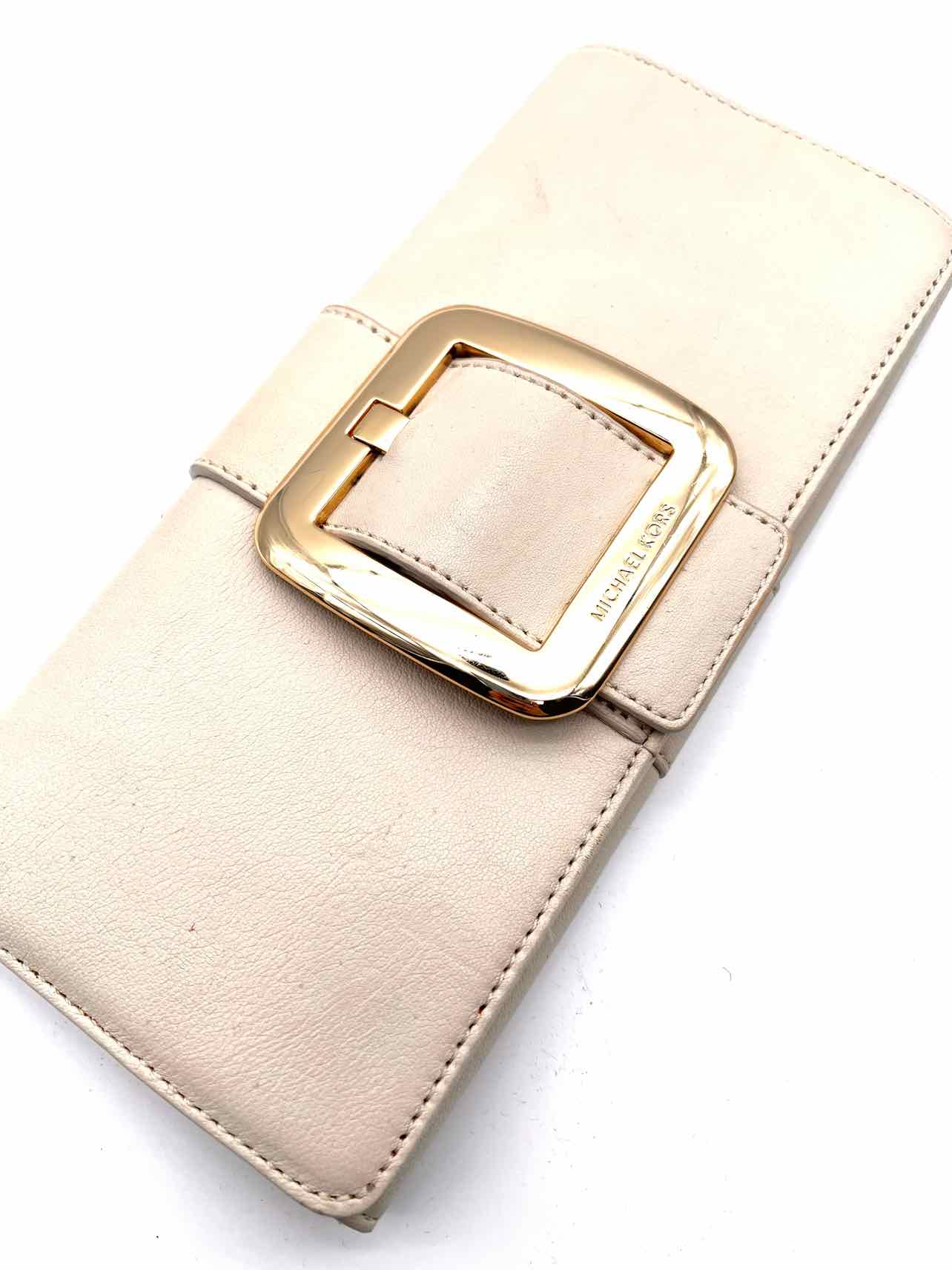Michael Michael Kors Bone/Gold Buckle Leather Designer Clutch Purse