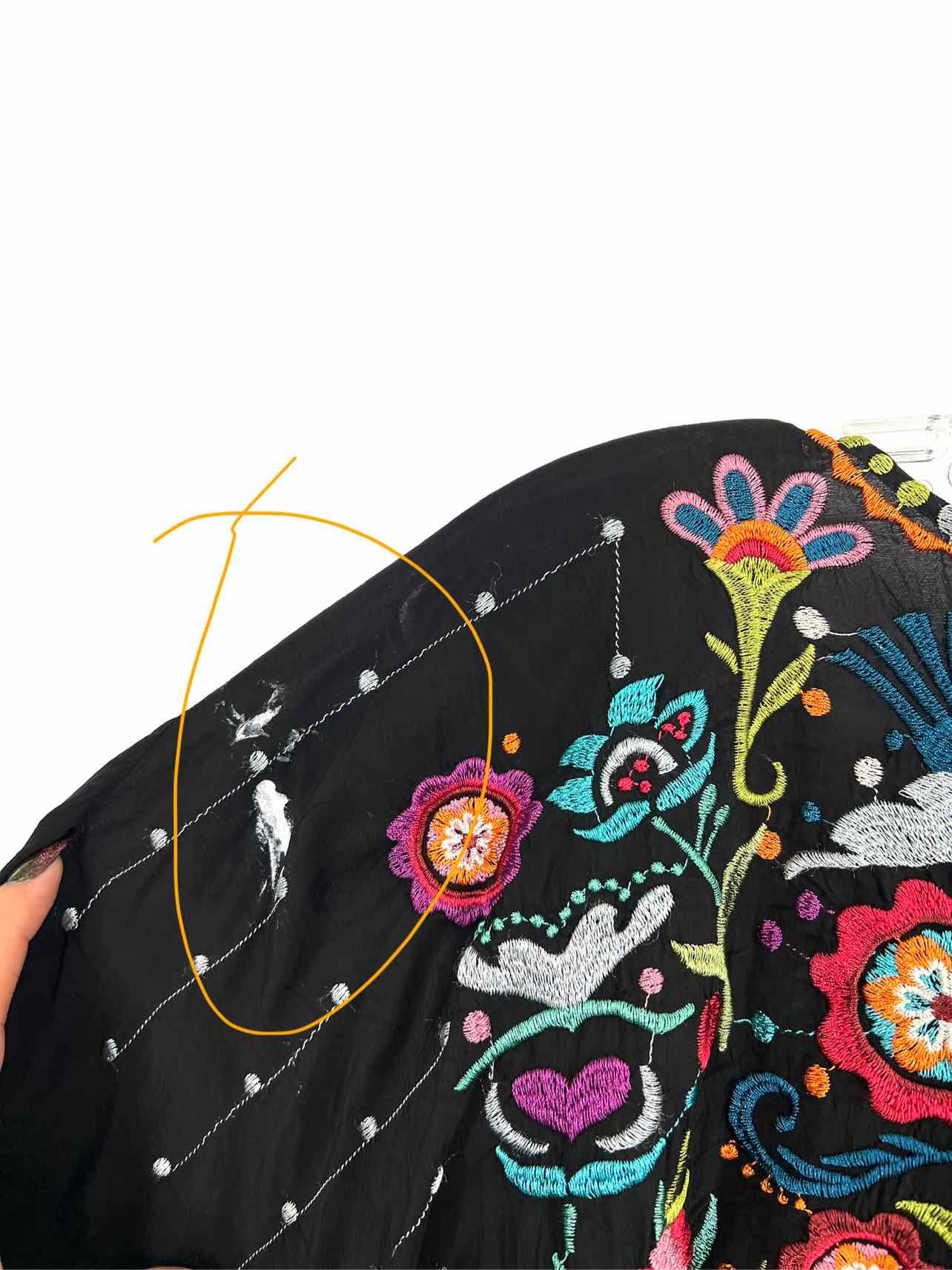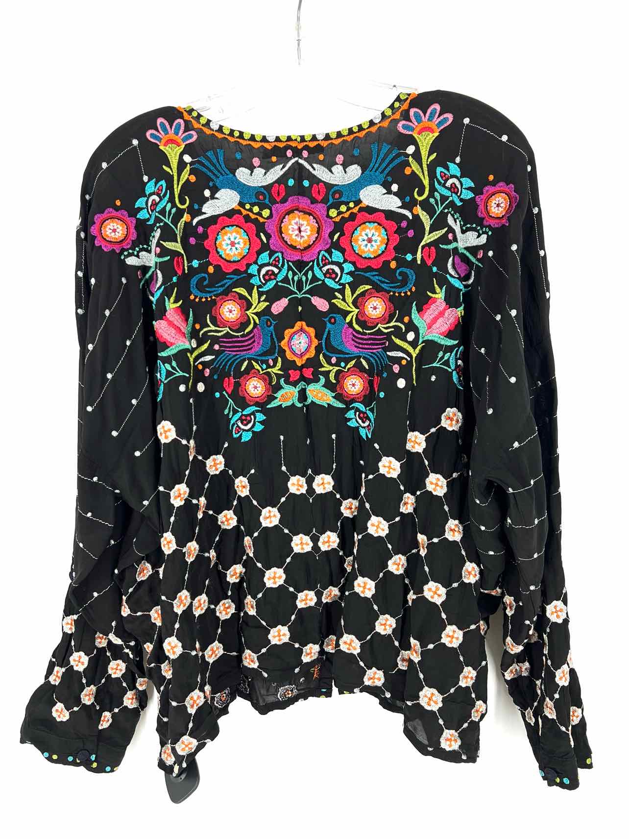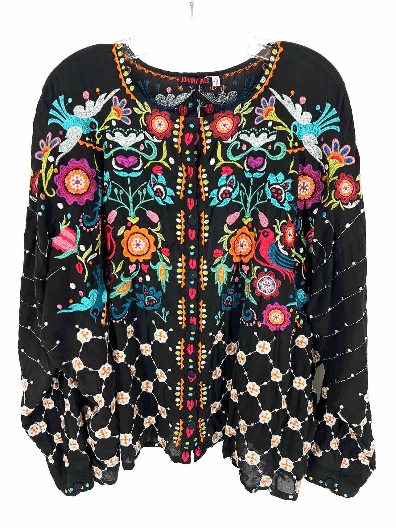 Johnny Was Size L Black/Multi Floral Embroidered AS IS Designer Blouse