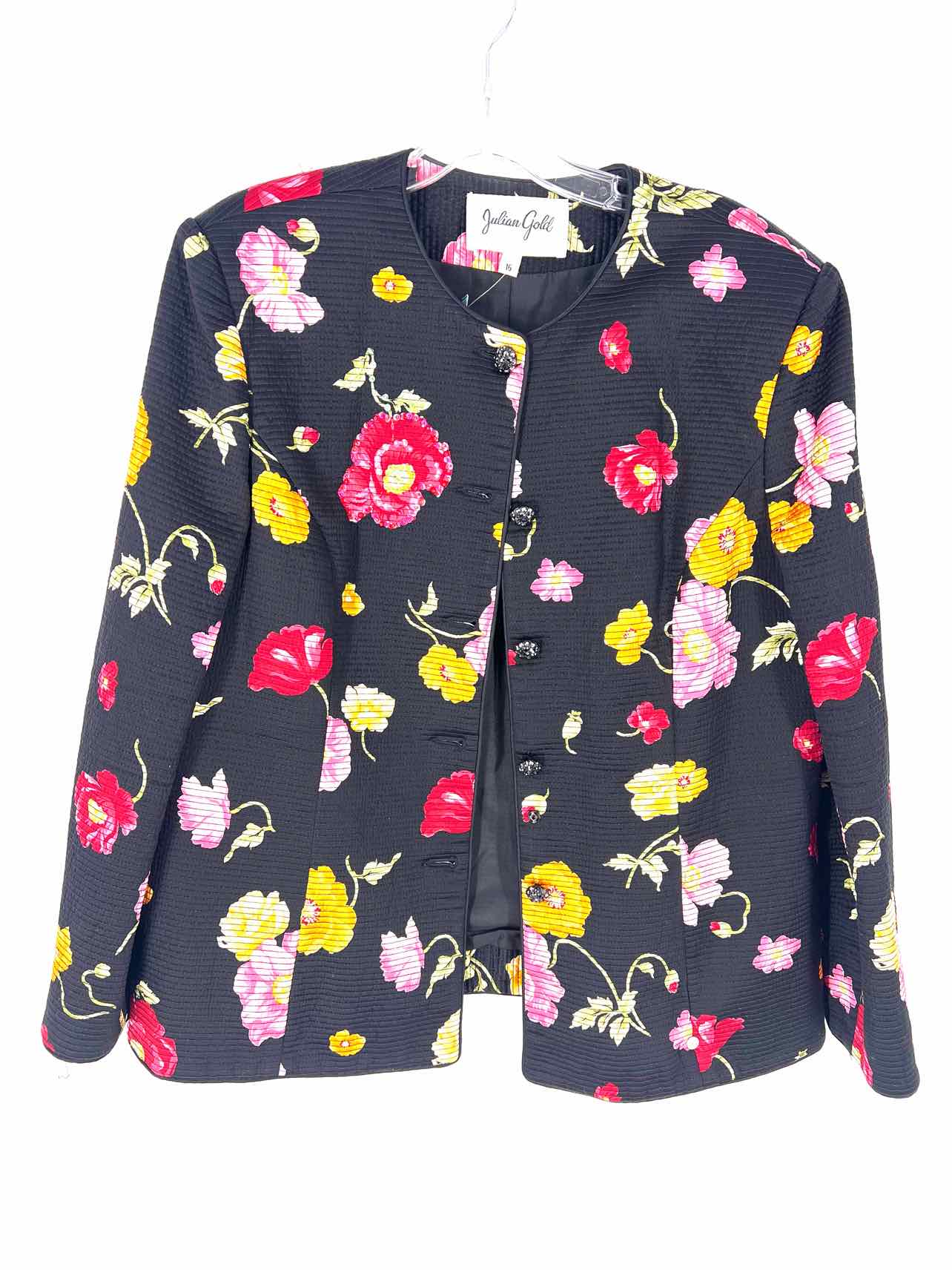 Julian Gold Size 16 Black/Multi Floral Sequin Designer Jacket