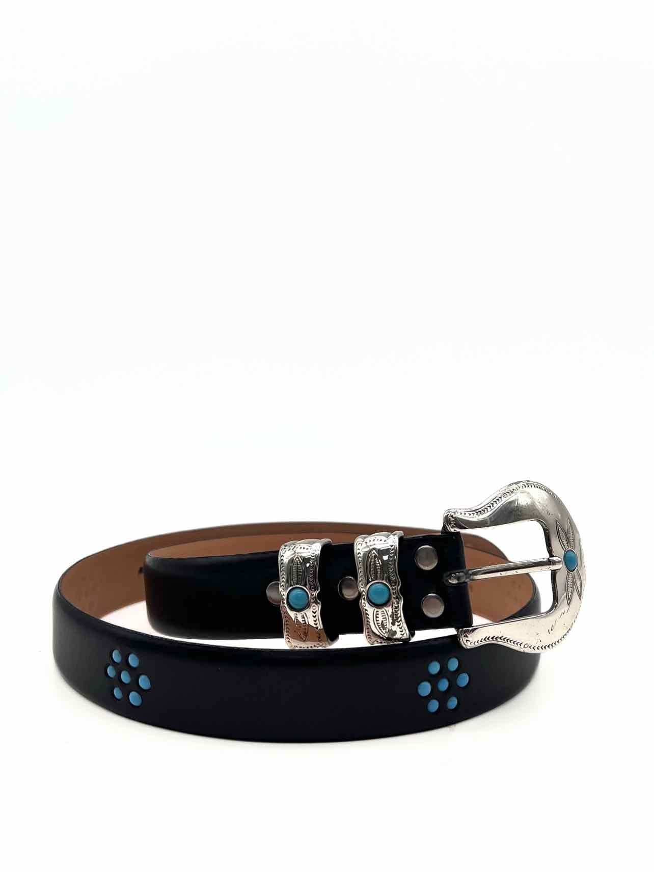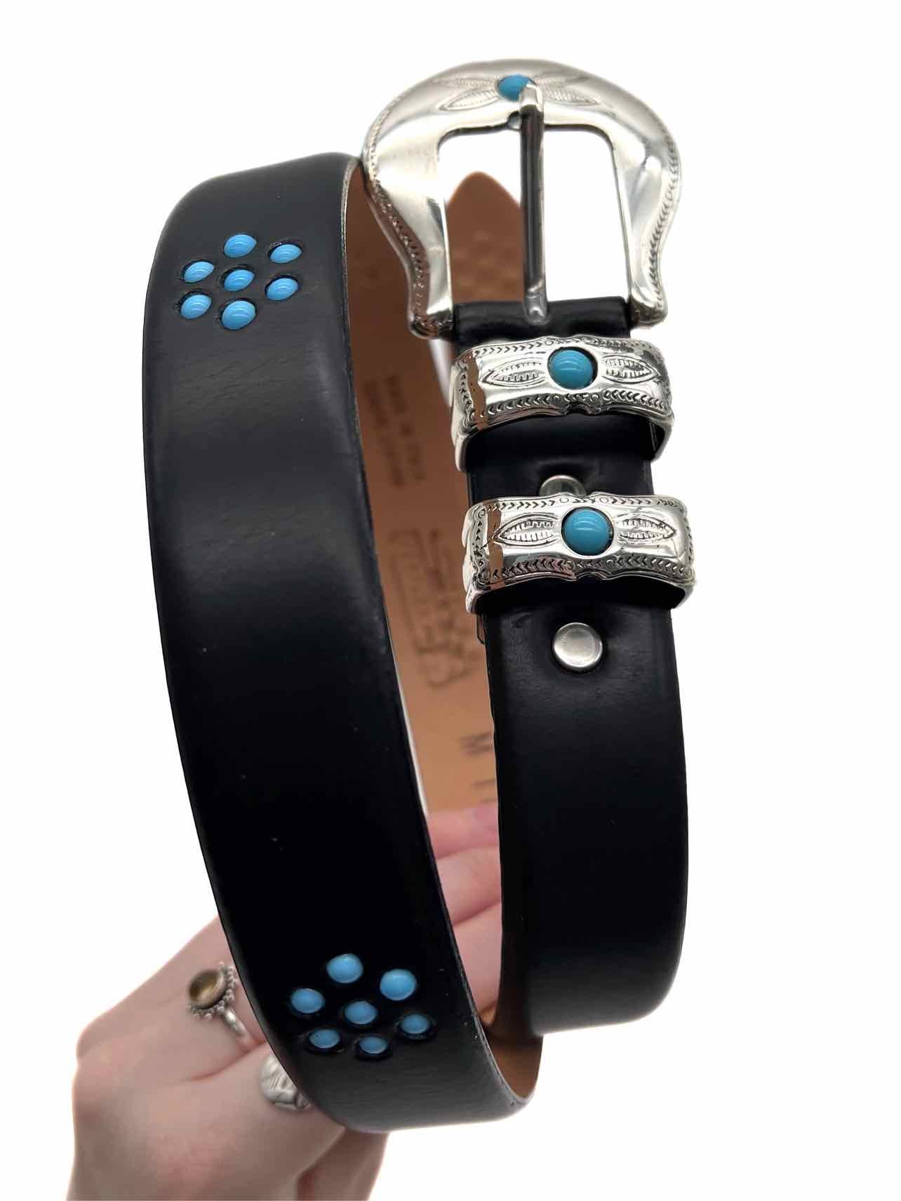 B.B. Simon Size M Black/Turq Leather Belt Belt