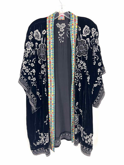 Johnny Was Size M Black/Multi Embroidered Velvet Designer Cardigan