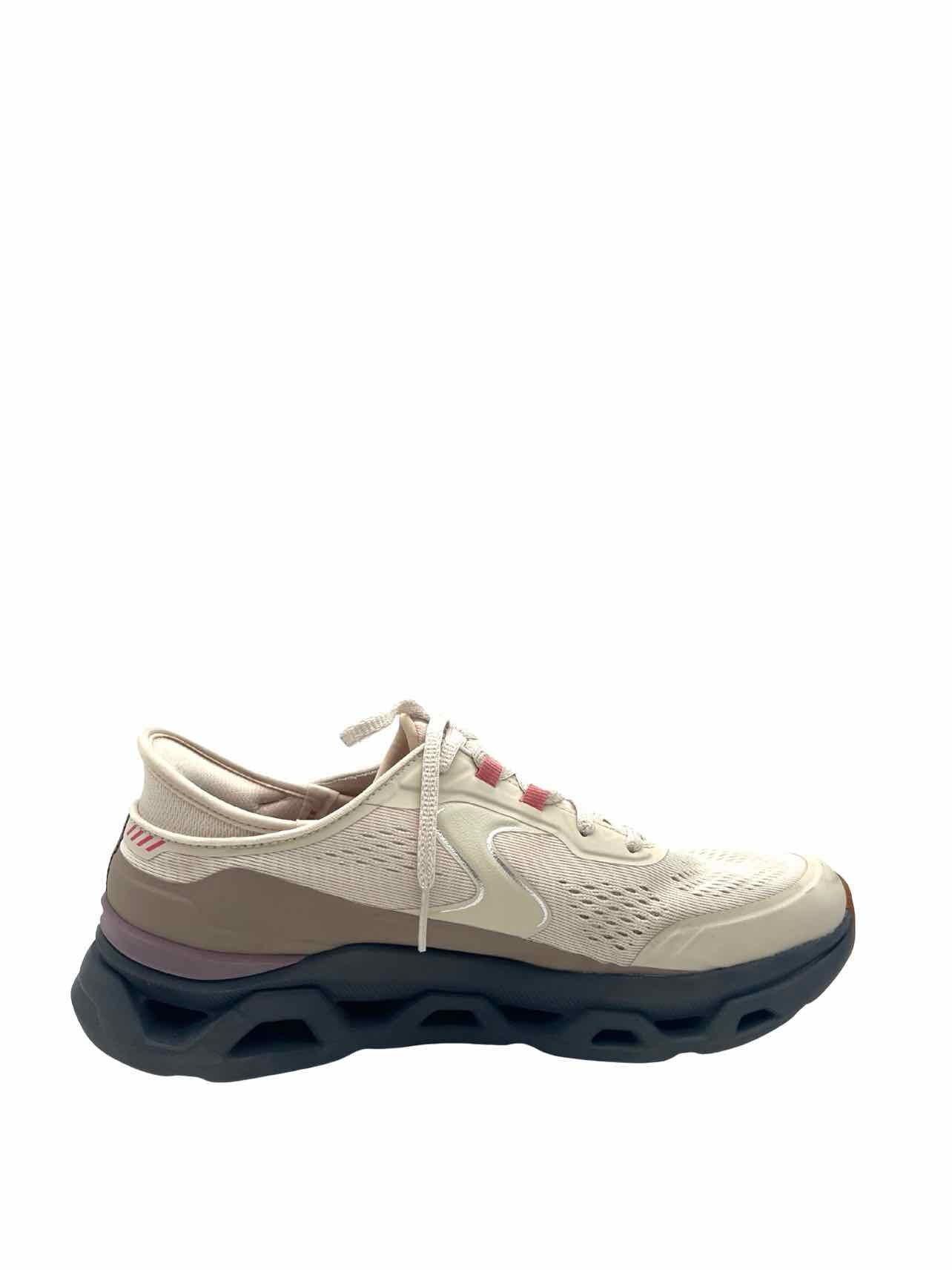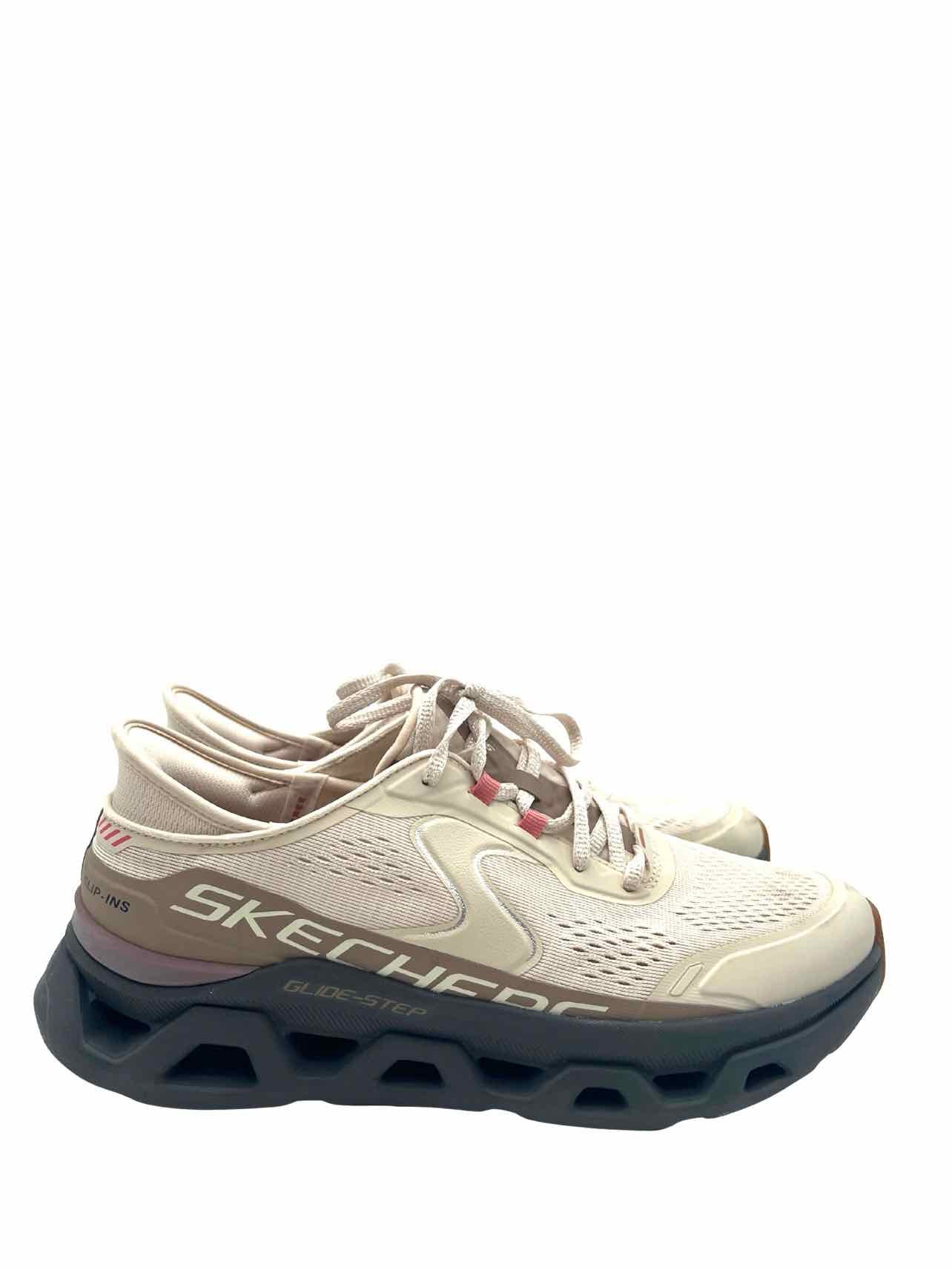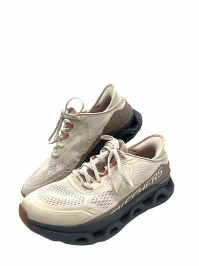 Skechers Size 10 Cream/Gray Lace-Up Mesh Shoes Sneakers