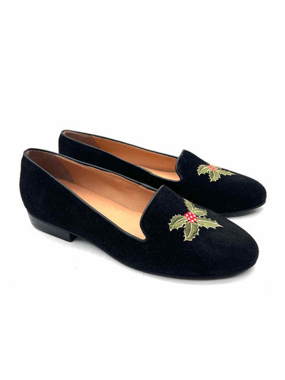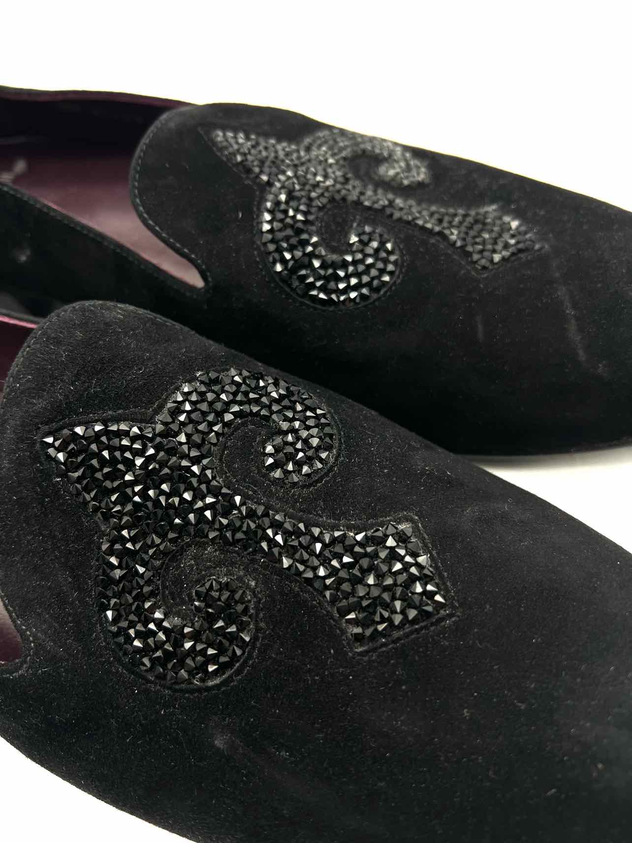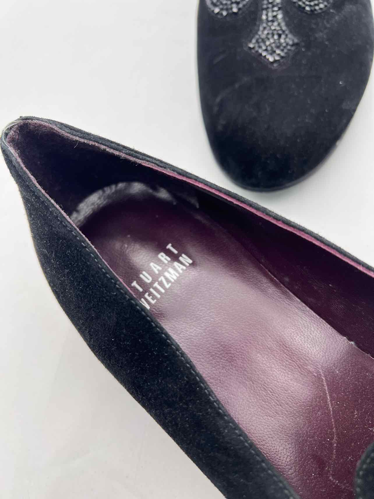 Stuart Weitzman Size 8.5 Black Suede Crystal Shoes Loafers
