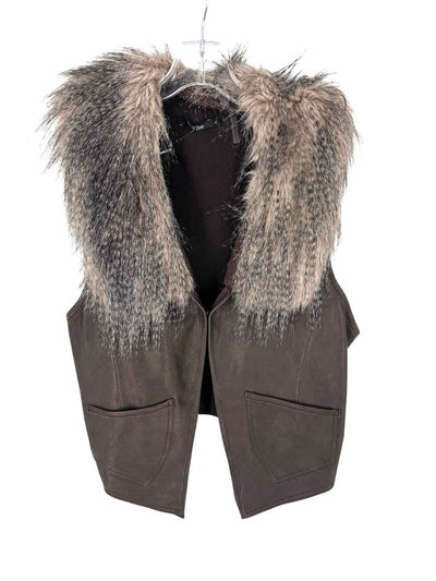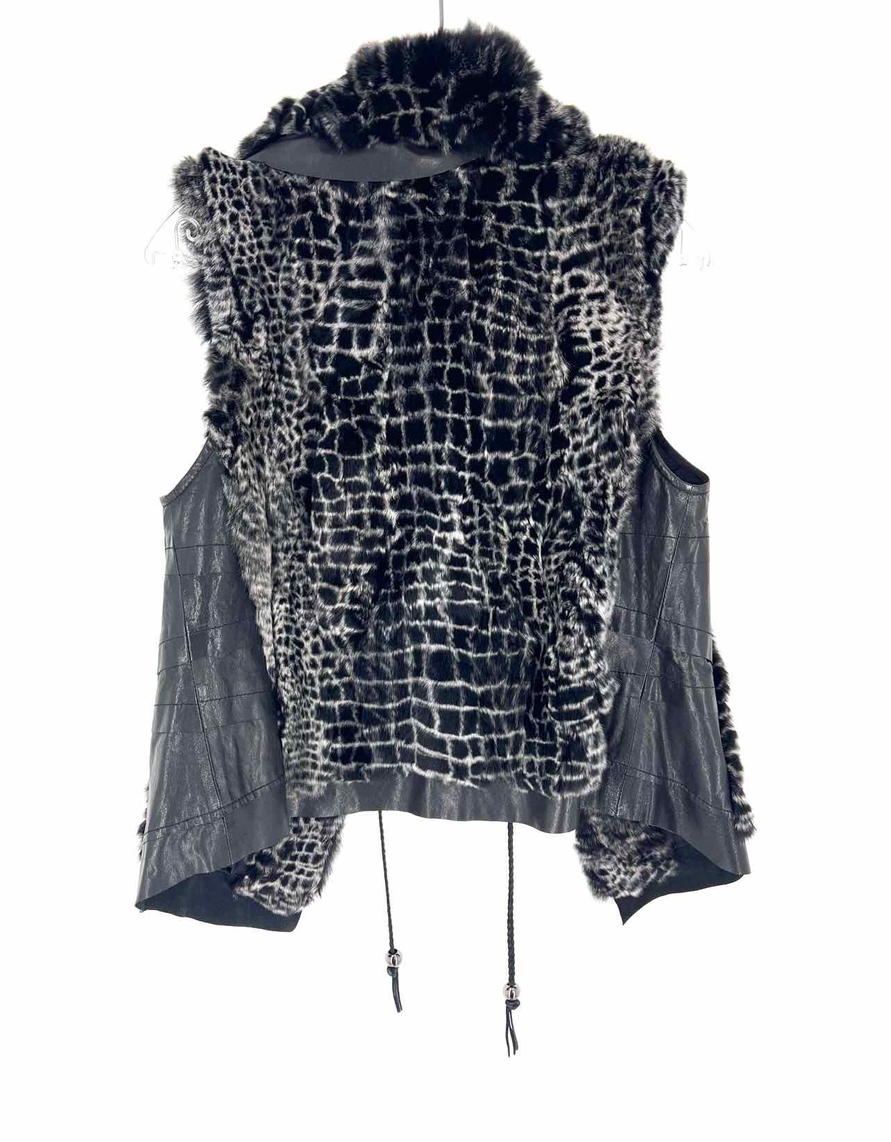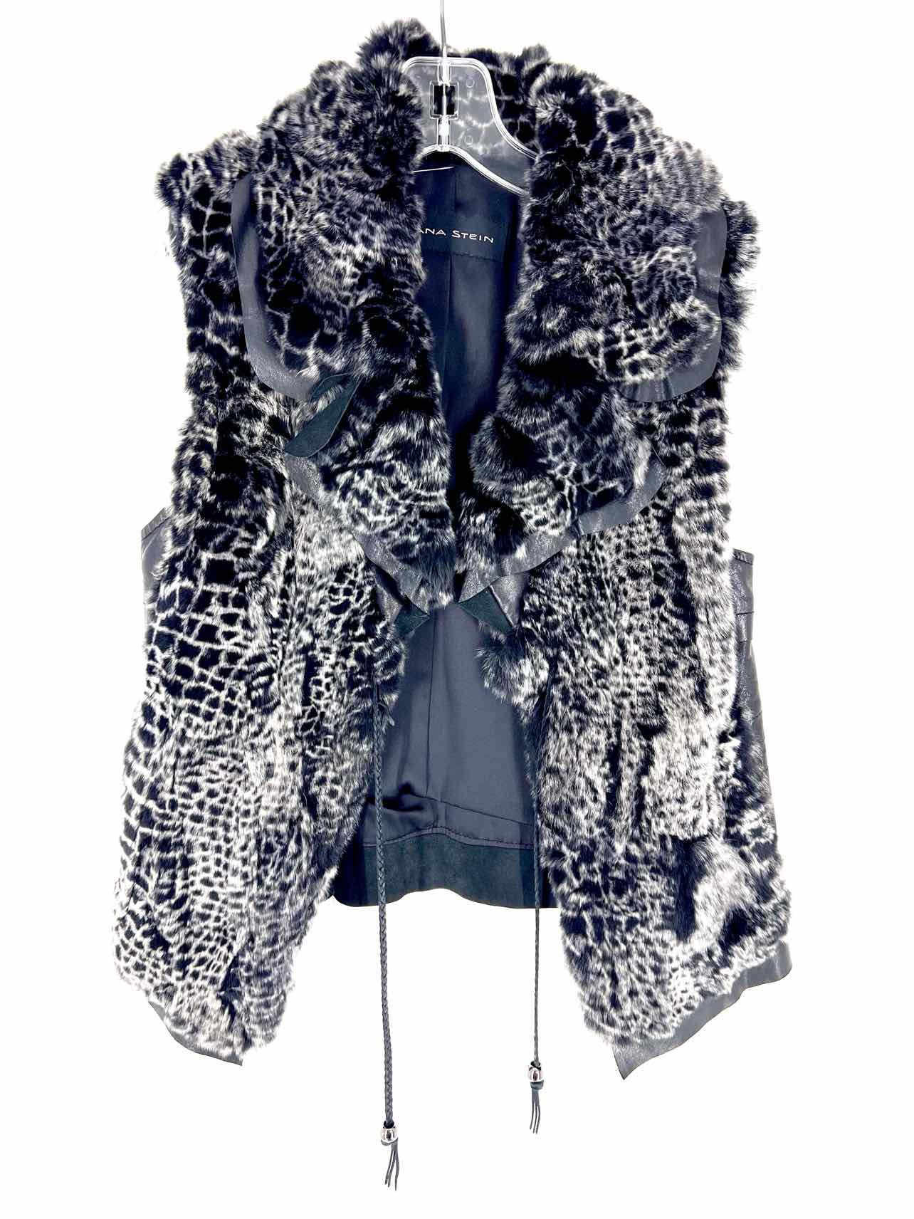 Dana Stein Size 4/6 Gray/Black Animal Print Fur/Leather Designer Vest