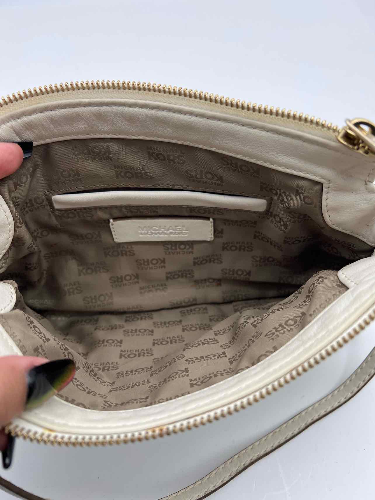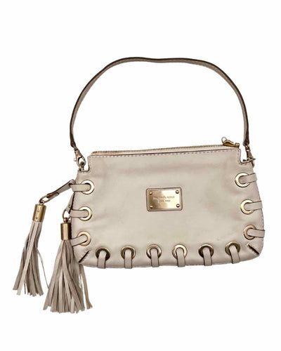 Michael Michael Kors Cream/Gold Pouchette Whipstitch Leather Clutch Purse
