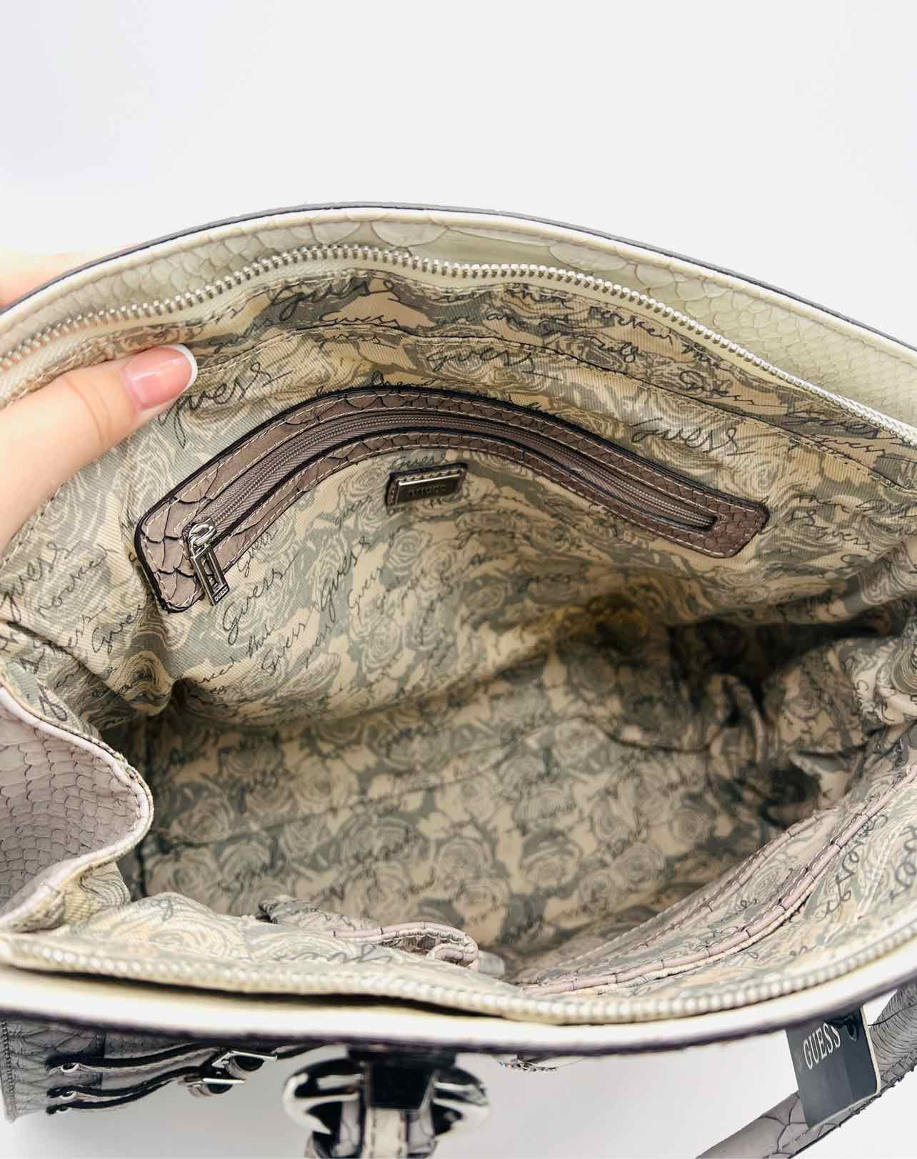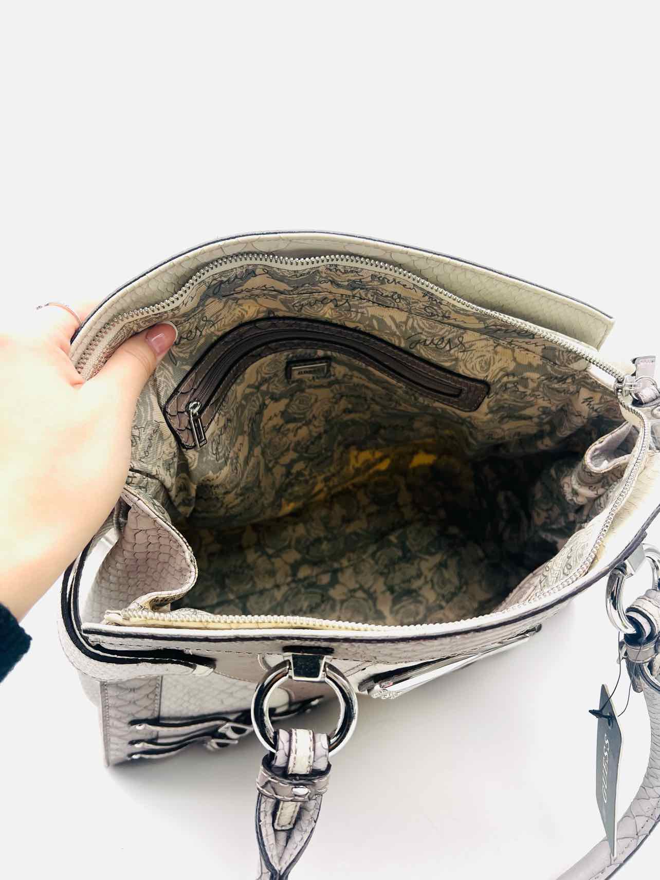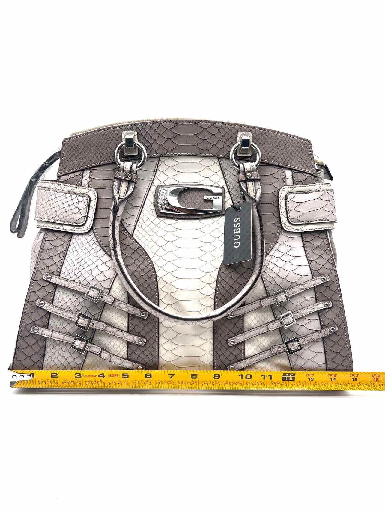 Guess Size Gray/White Reptile Buckles NEW Purses Tote