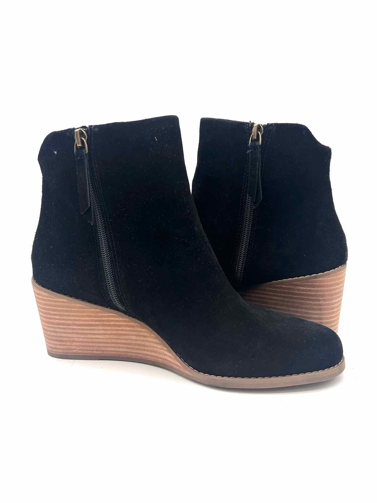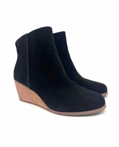Toms Size 10 Black Suede Stitched Wedge Shoes Ankle Boots
