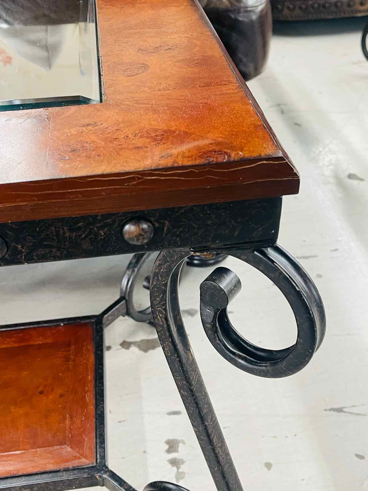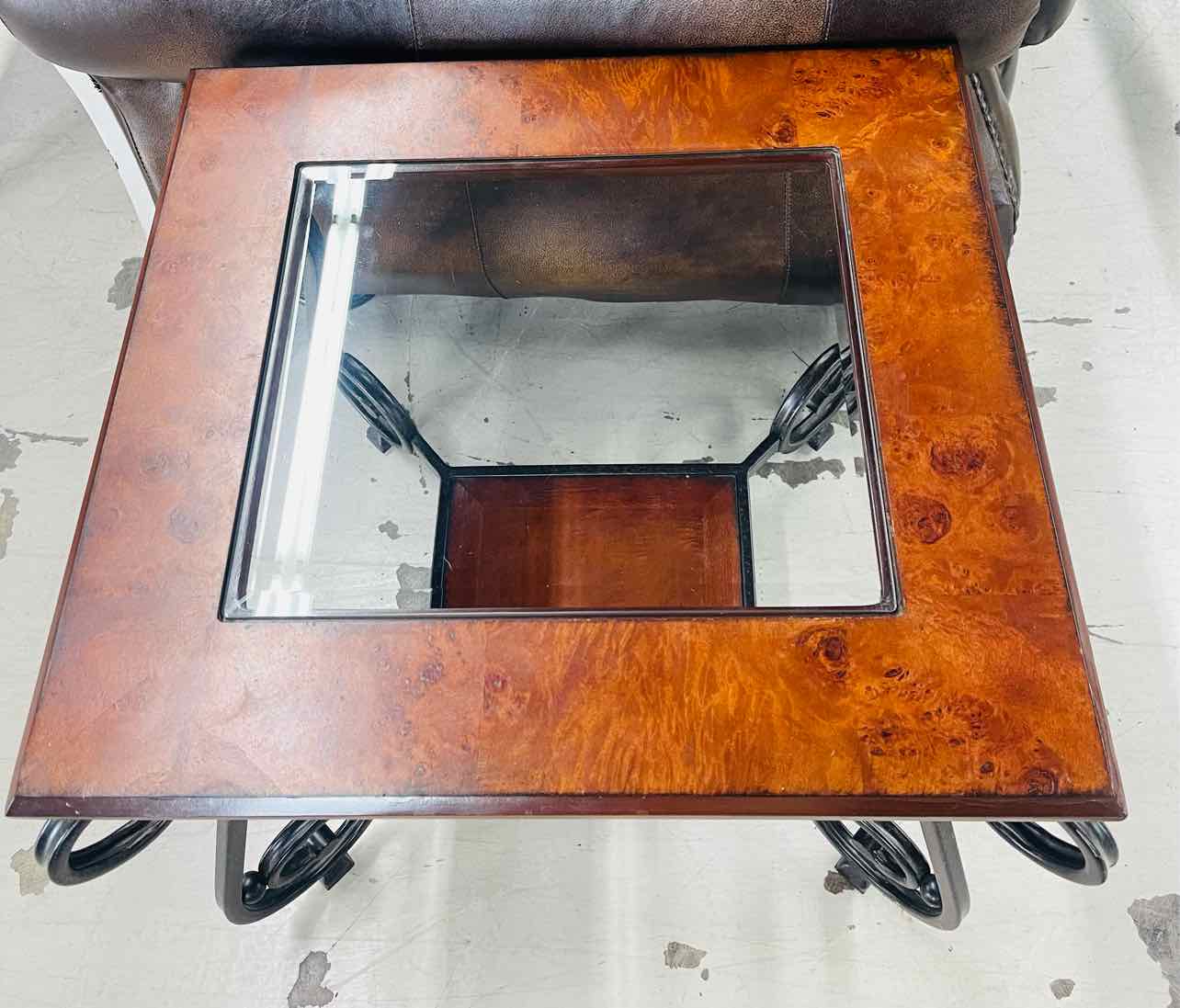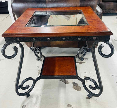 Brown/Black Wood/Glass/Metal Furniture End Table