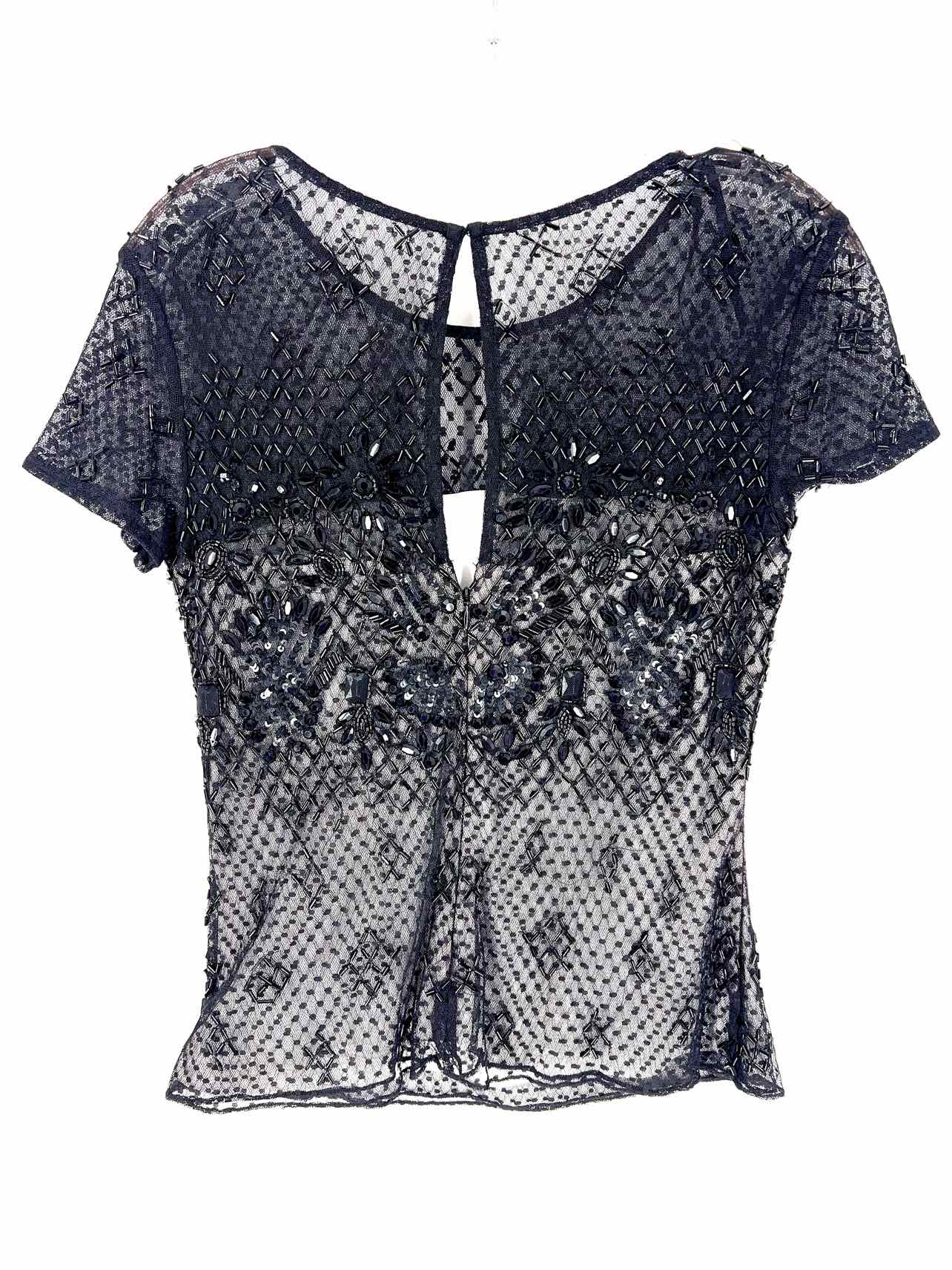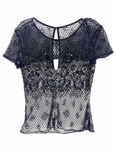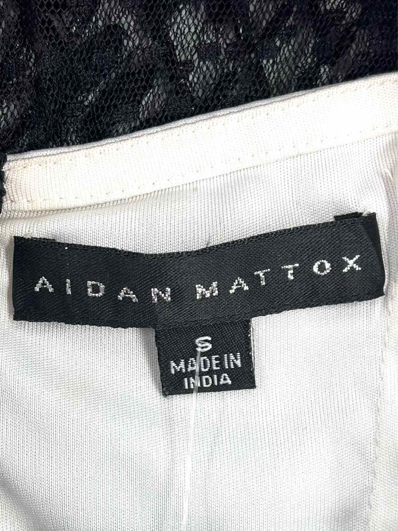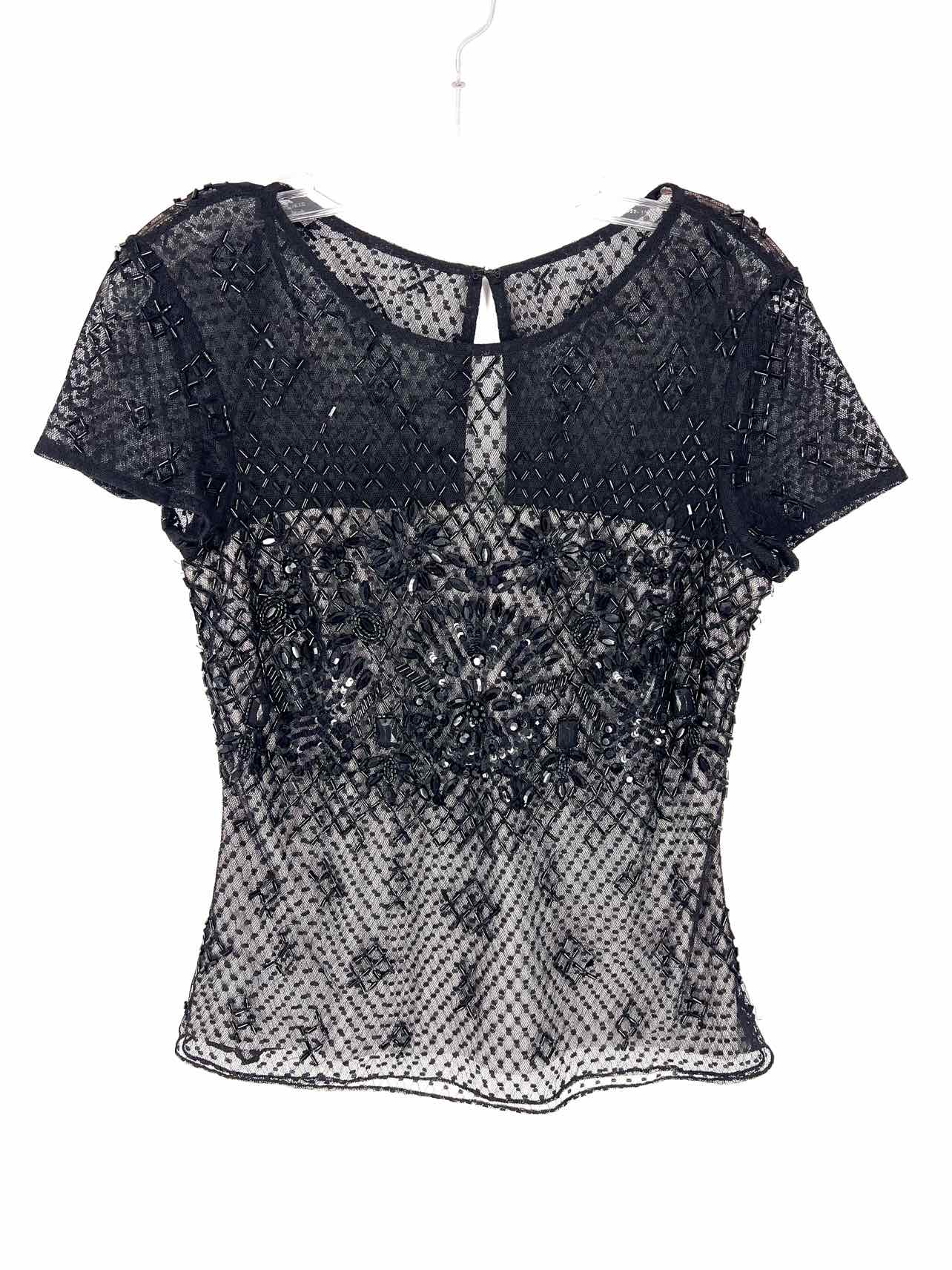 Aidan Mattox Size S Black/White Beaded Designer Top-Short Sleeve