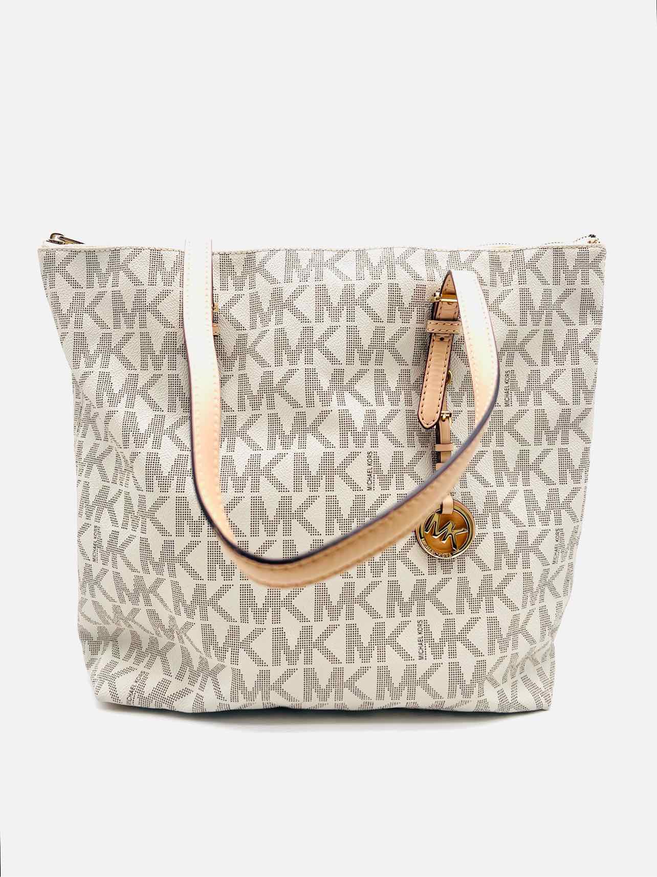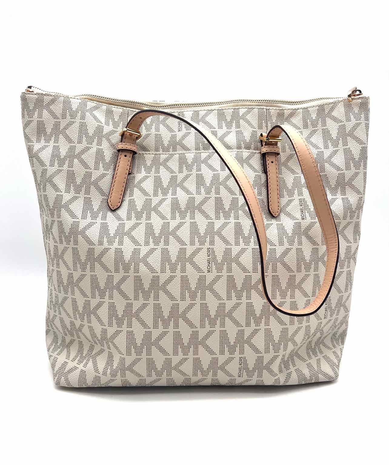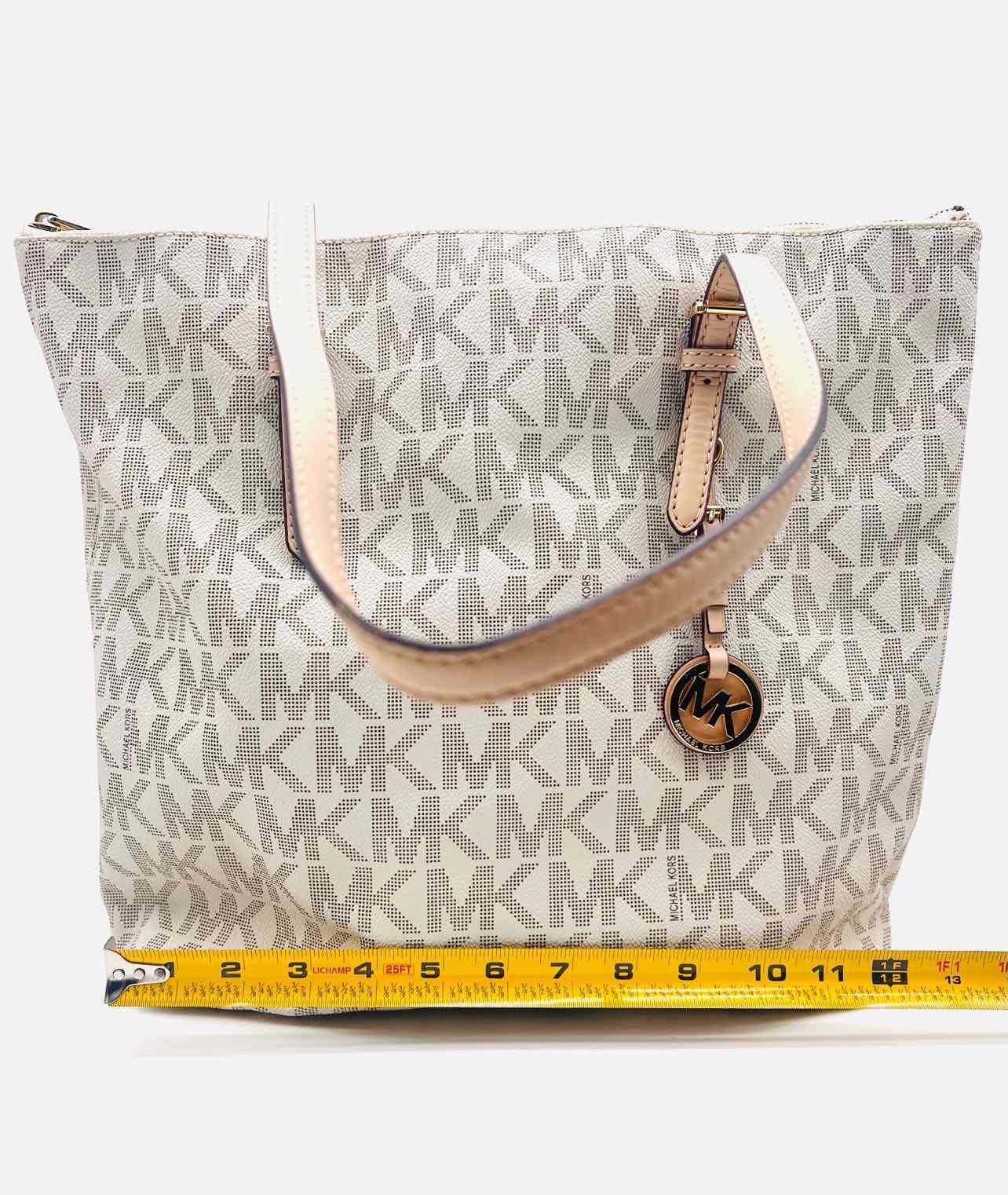 Michael Michael Kors White/Beige Monogrammed Saffiano AS IS Designer Tote