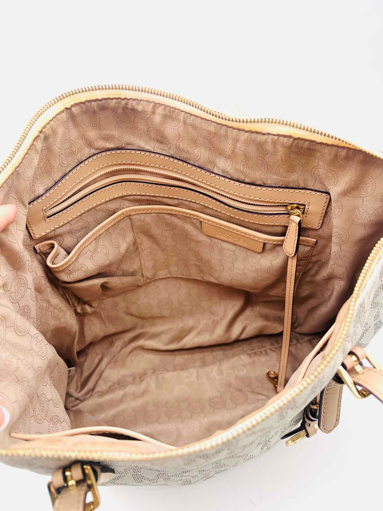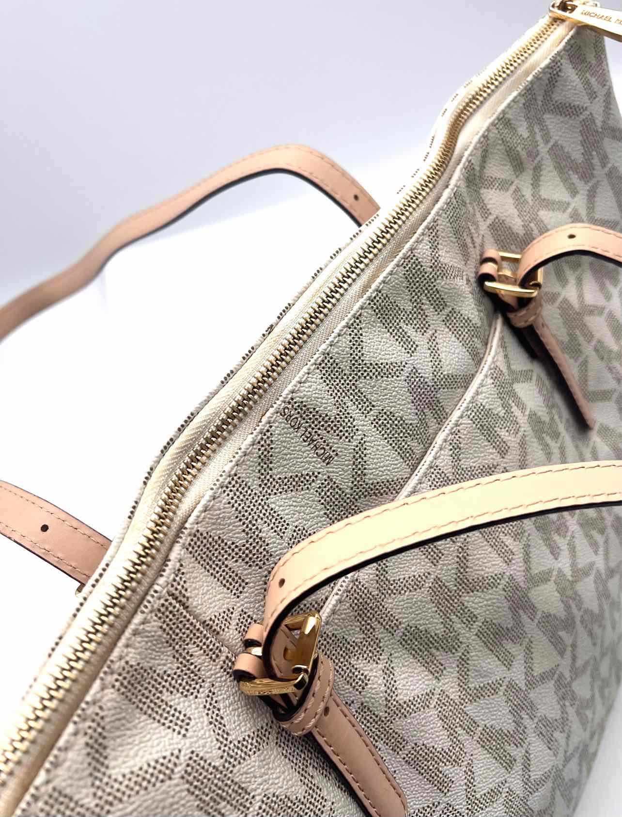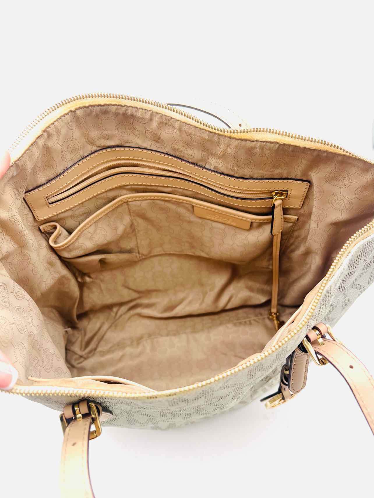 Michael Michael Kors White/Beige Monogrammed Saffiano AS IS Designer Tote