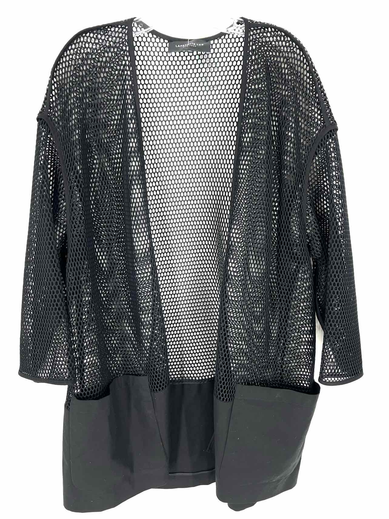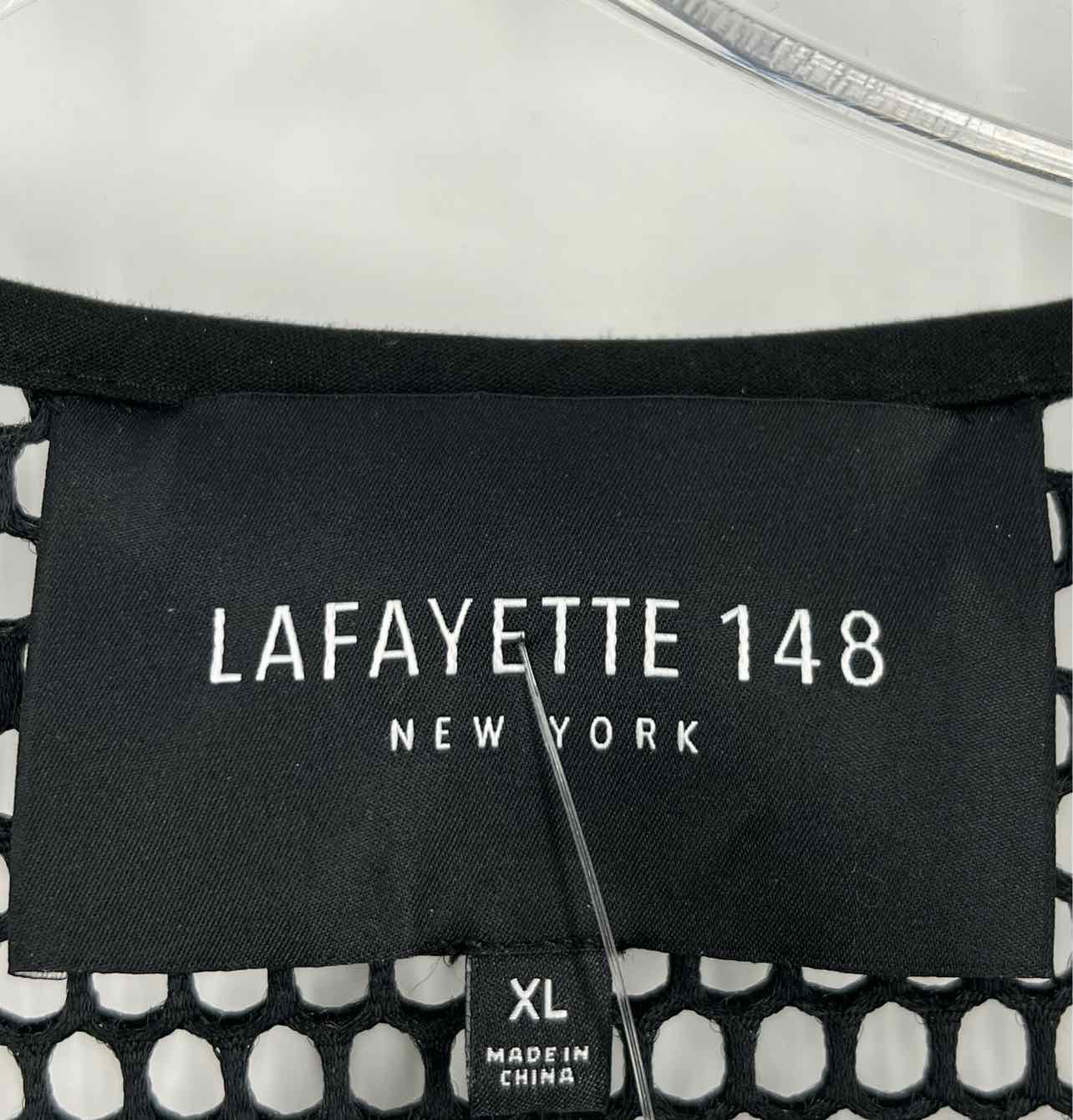 Lafayette 148 Size XL Black Blocked Mesh Designer Cardigan