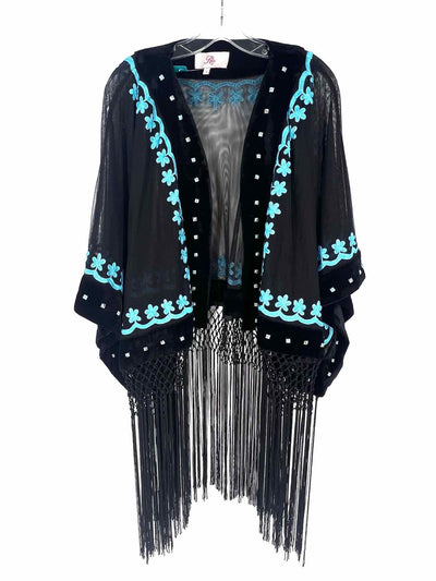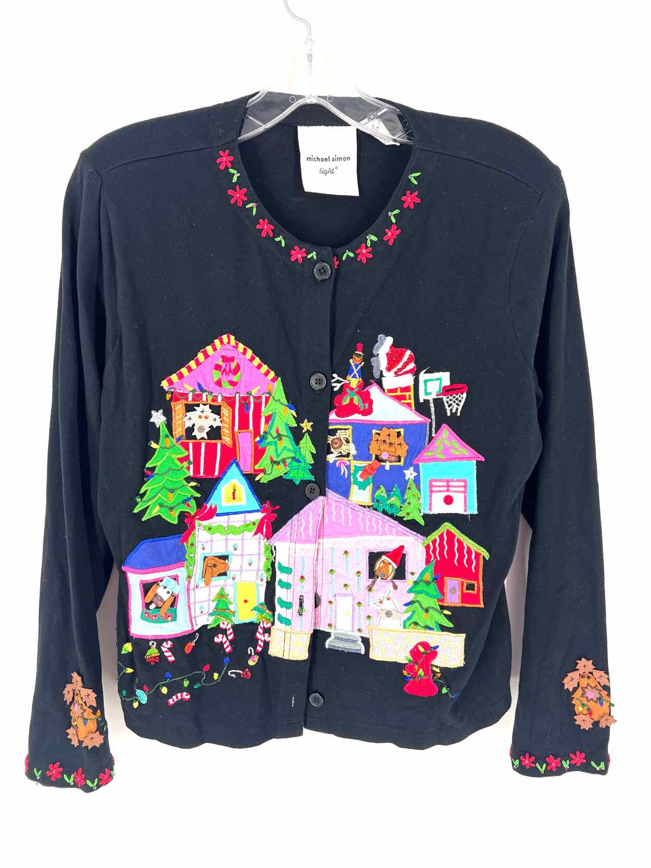 Michael Simon Size M Black/Multi Embroidered Beaded Vintage Cardigan