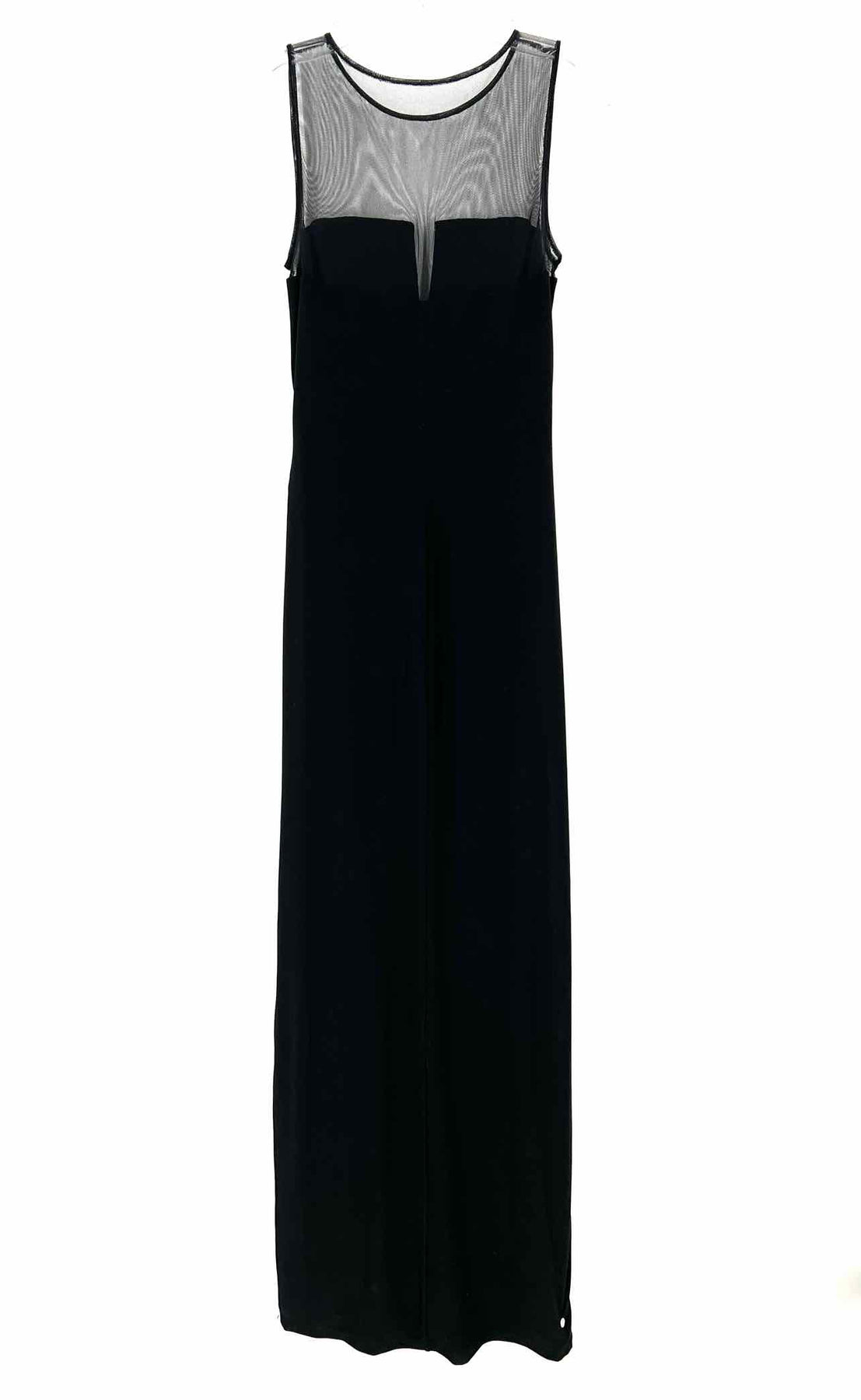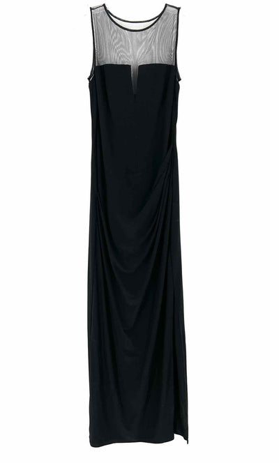 Lauren Ralph Lauren Size 6 Black Solid Mesh Panel Designer Dress Maxi